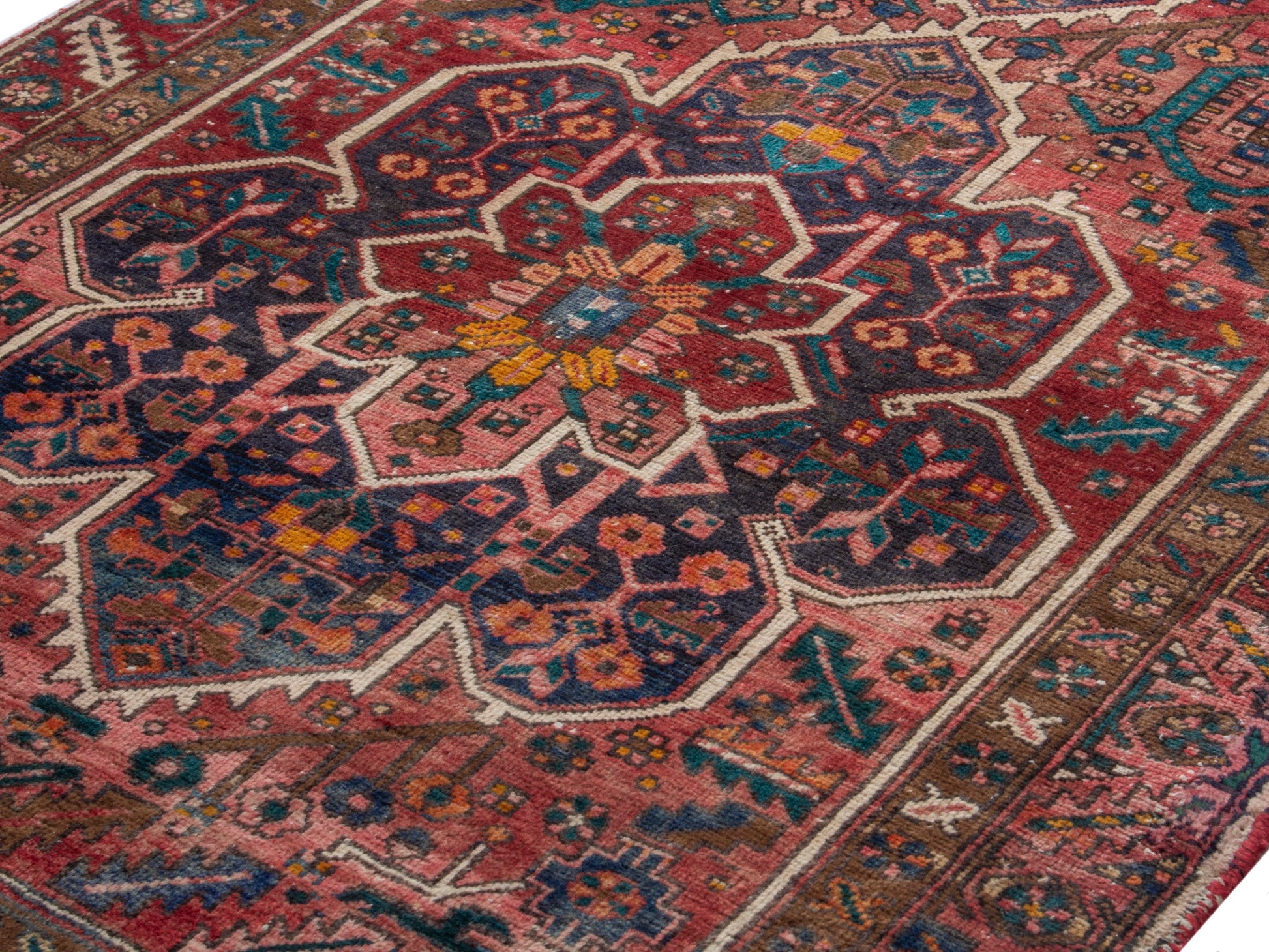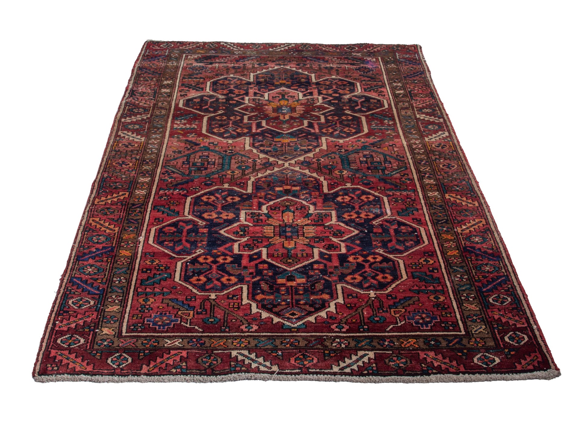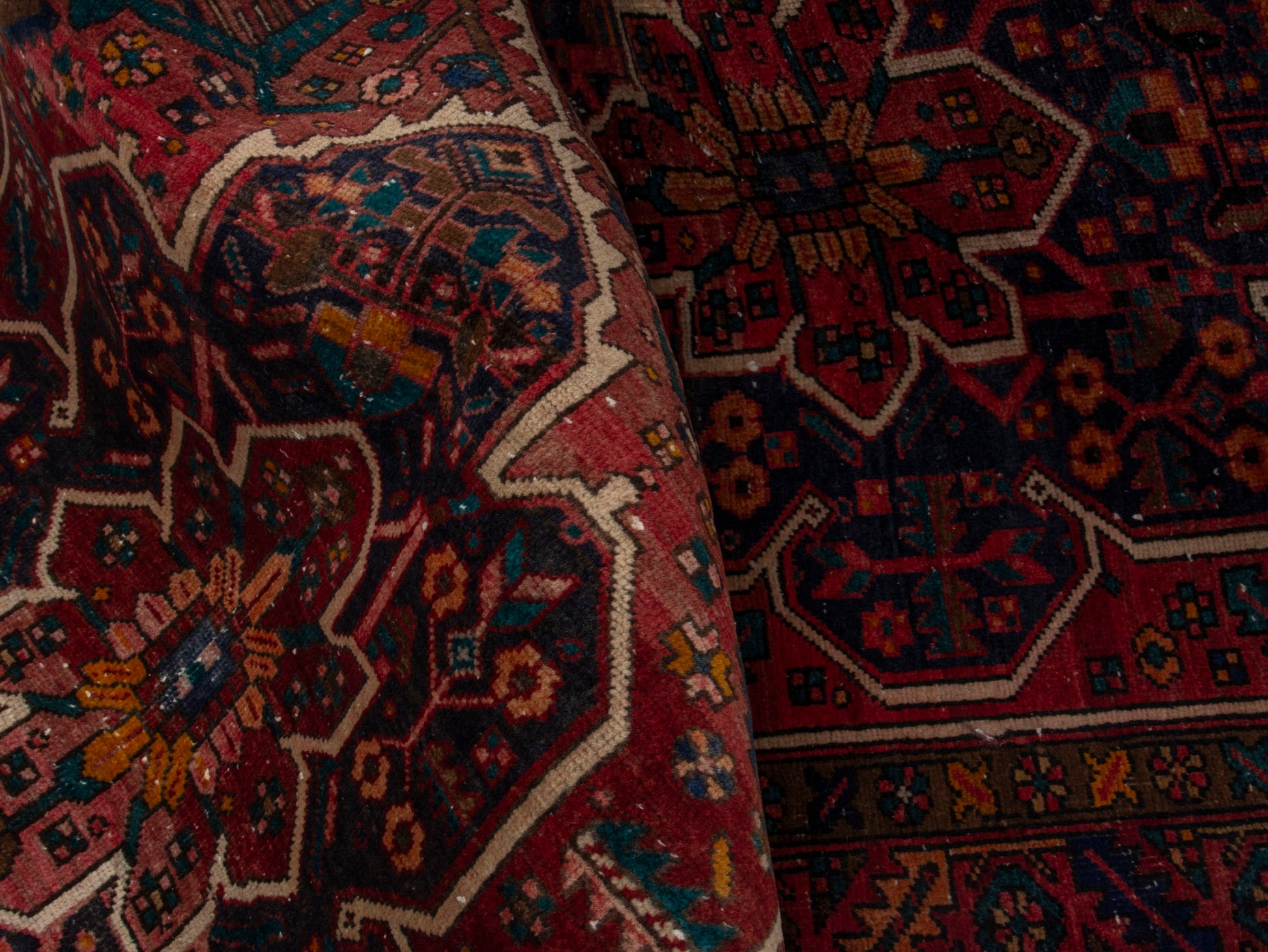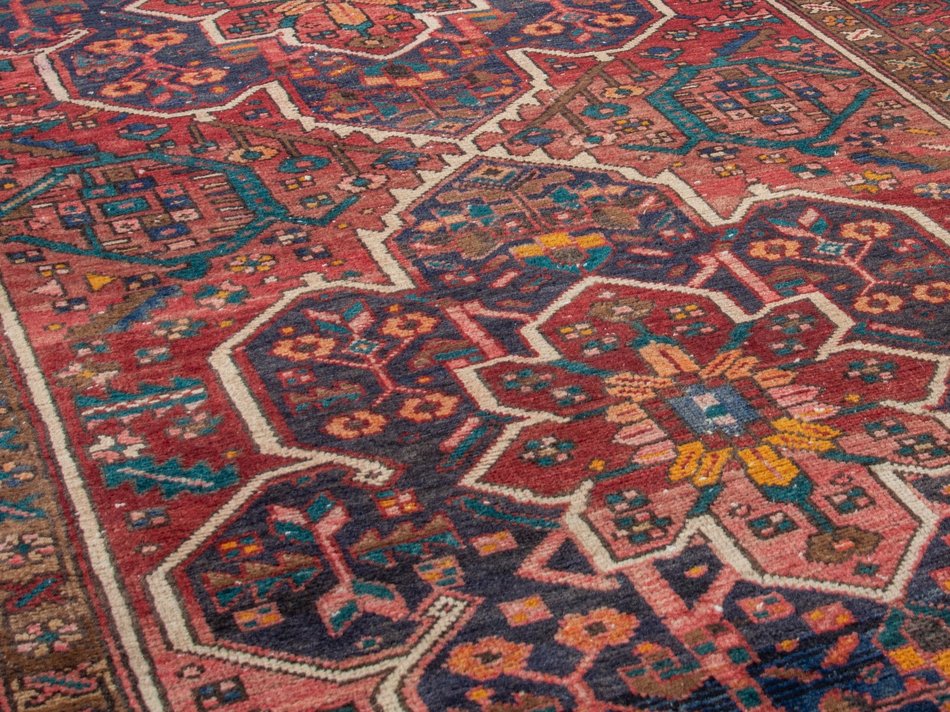 All the rugs we sell are professionally washed and cleaned; age-related wear and natural inconsistencies are inherent in these unique, handcrafted vintage rugs.