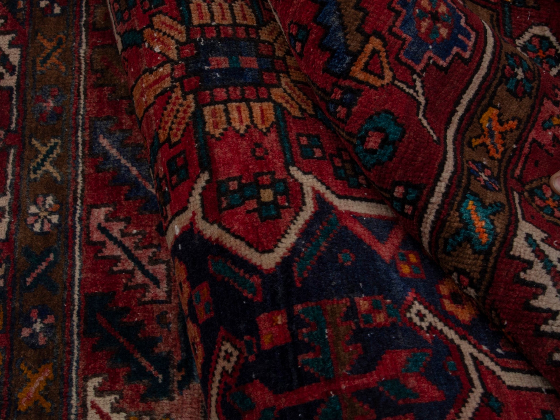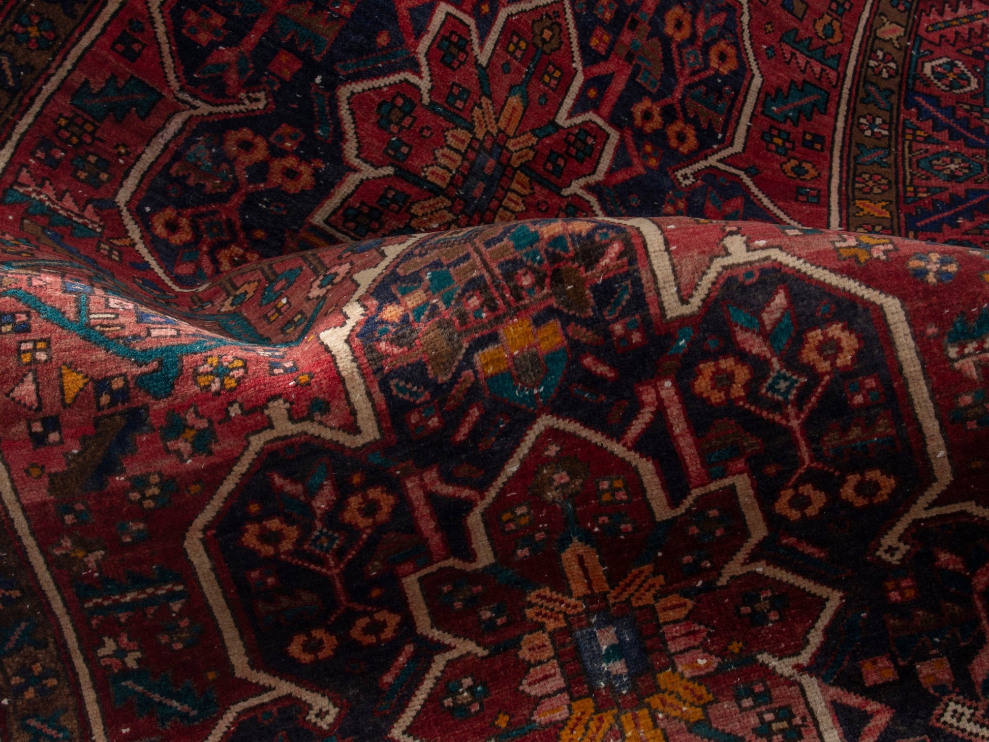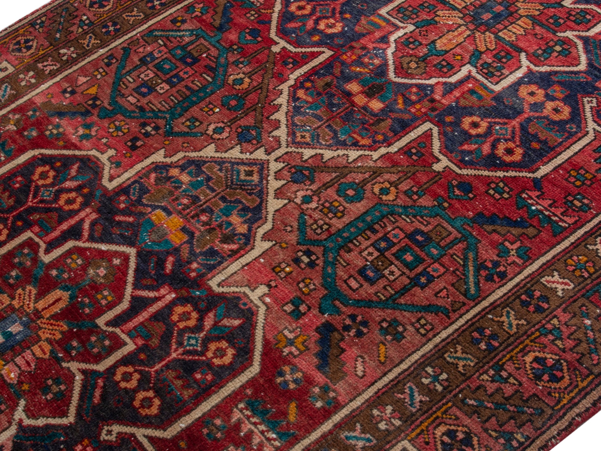 All the rugs we sell are professionally washed and cleaned; age-related wear and natural inconsistencies are inherent in these unique, handcrafted vintage rugs.