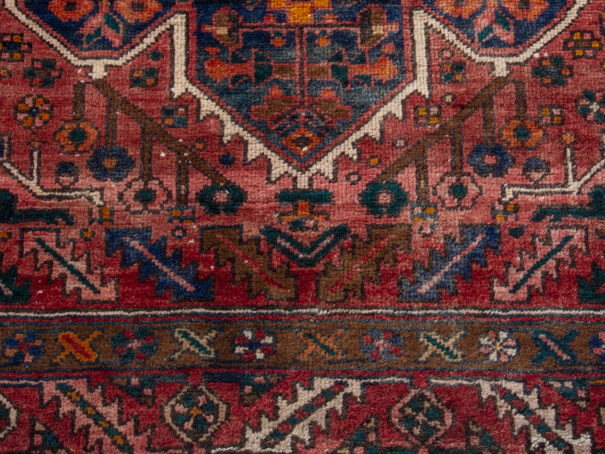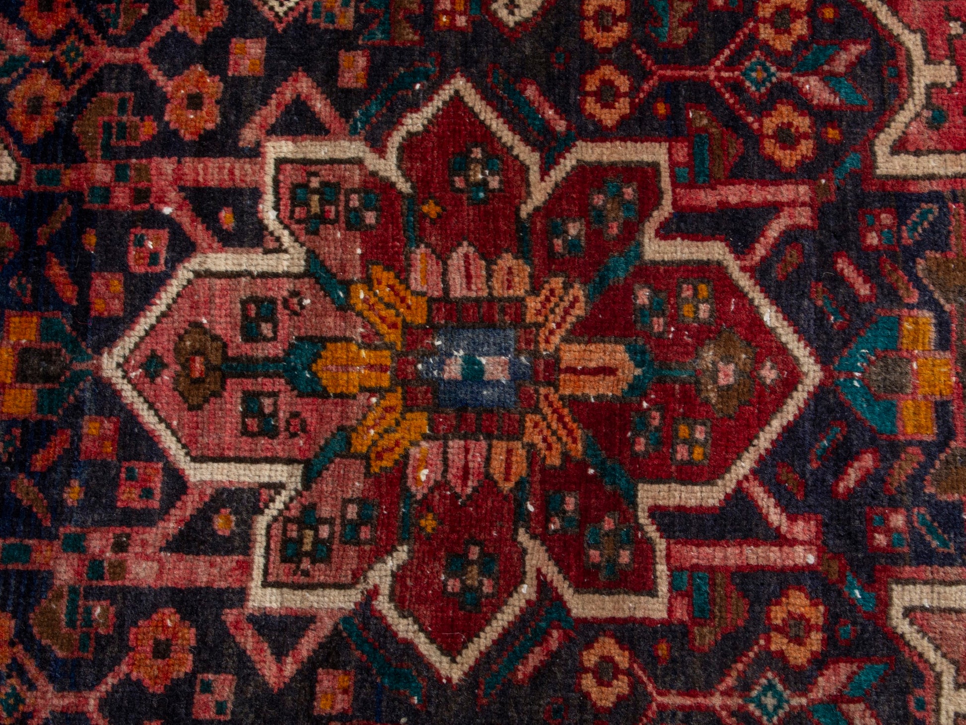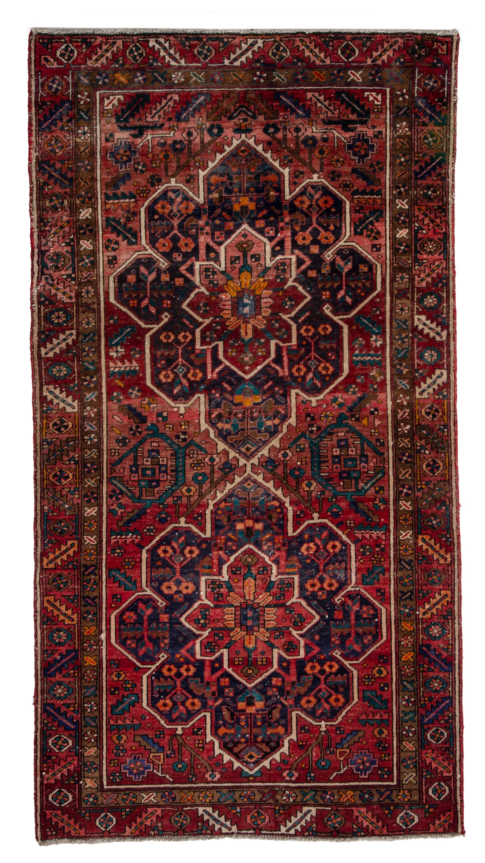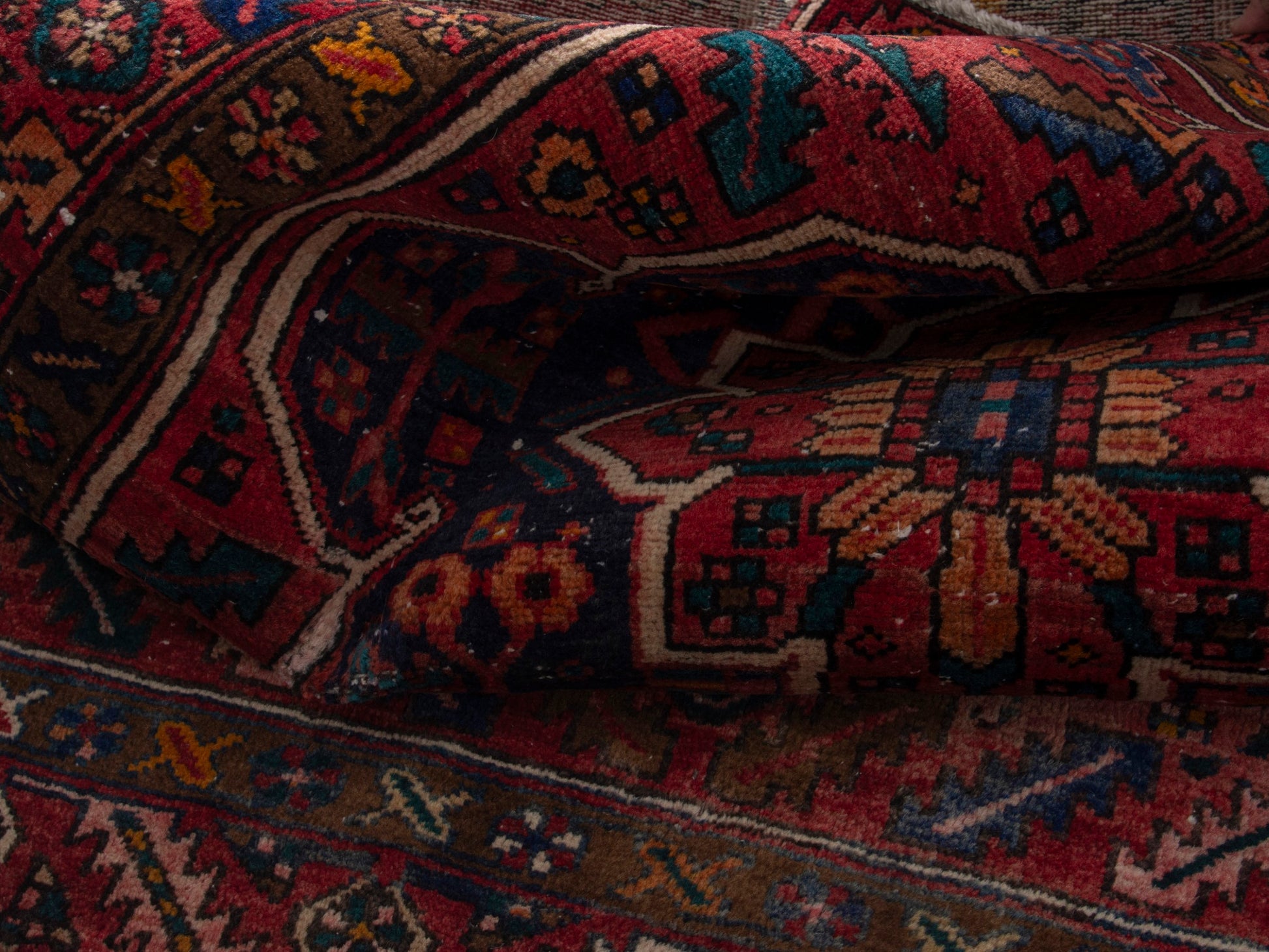 All the rugs we sell are professionally washed and cleaned; age-related wear and natural inconsistencies are inherent in these unique, handcrafted vintage rugs.