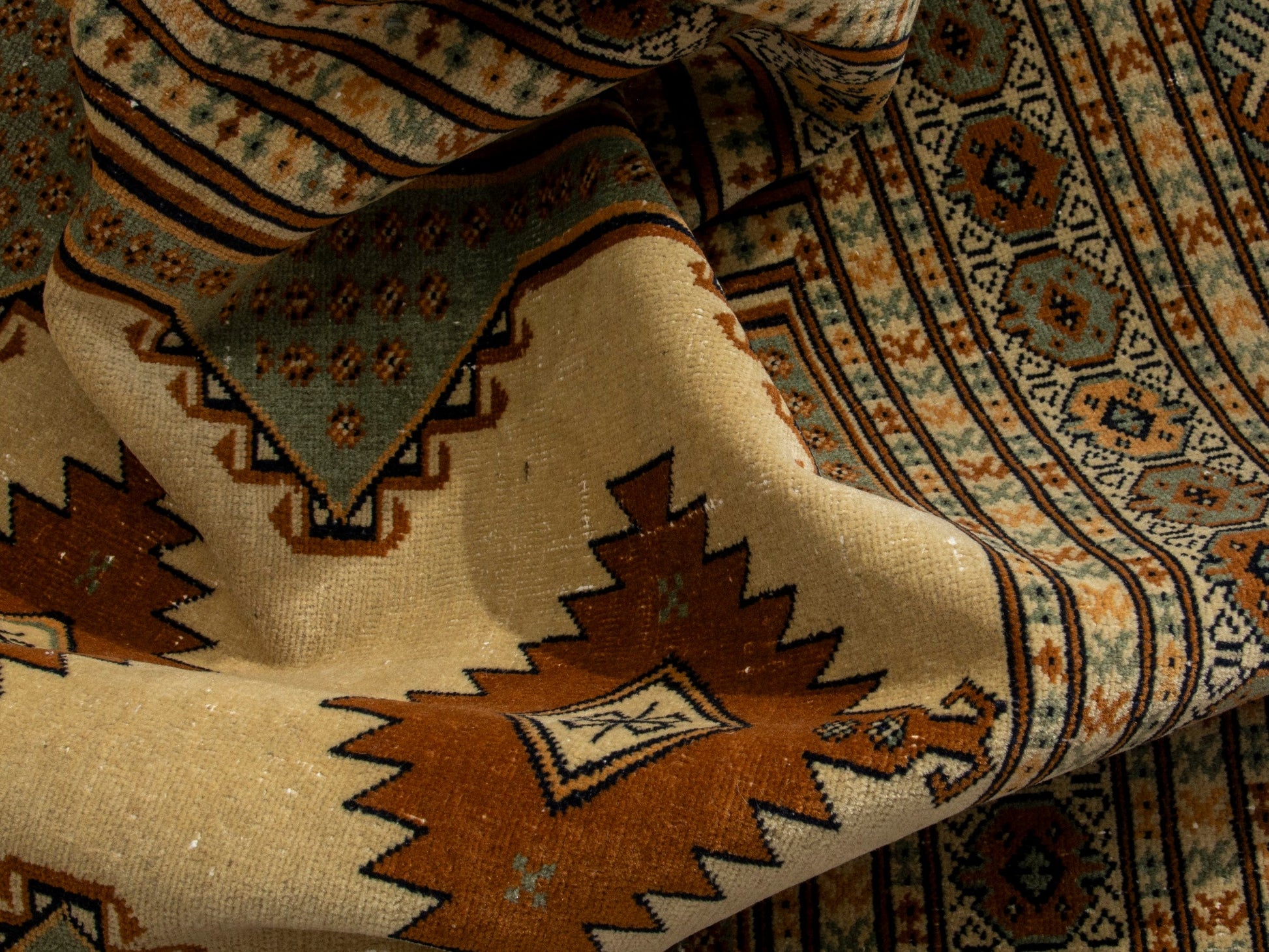 All the rugs we sell are professionally washed and cleaned; age-related wear and natural inconsistencies are inherent in these unique, handcrafted vintage rugs.