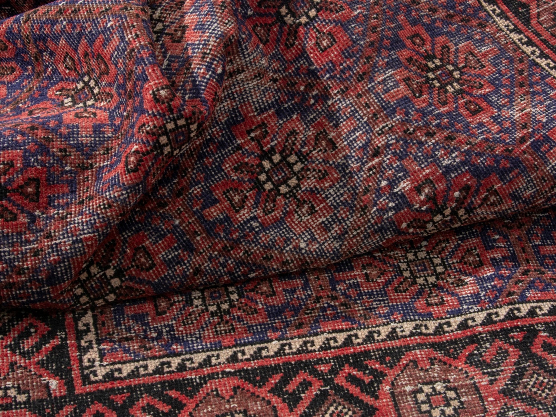 All the rugs we sell are professionally washed and cleaned; age-related wear and natural inconsistencies are inherent in these unique, handcrafted vintage rugs.