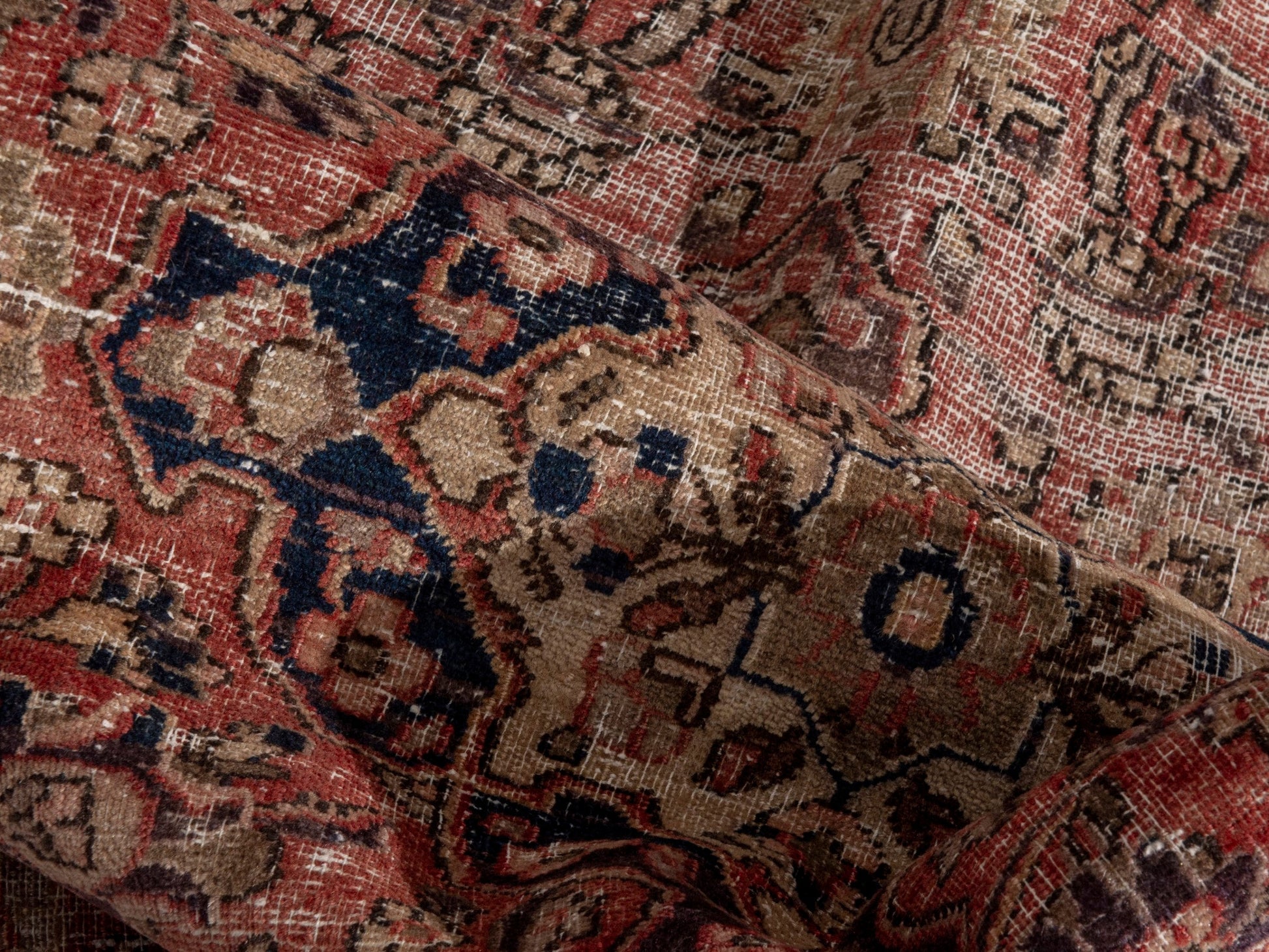 All the rugs we sell are professionally washed and cleaned; age-related wear and natural inconsistencies are inherent in these unique, handcrafted vintage rugs.