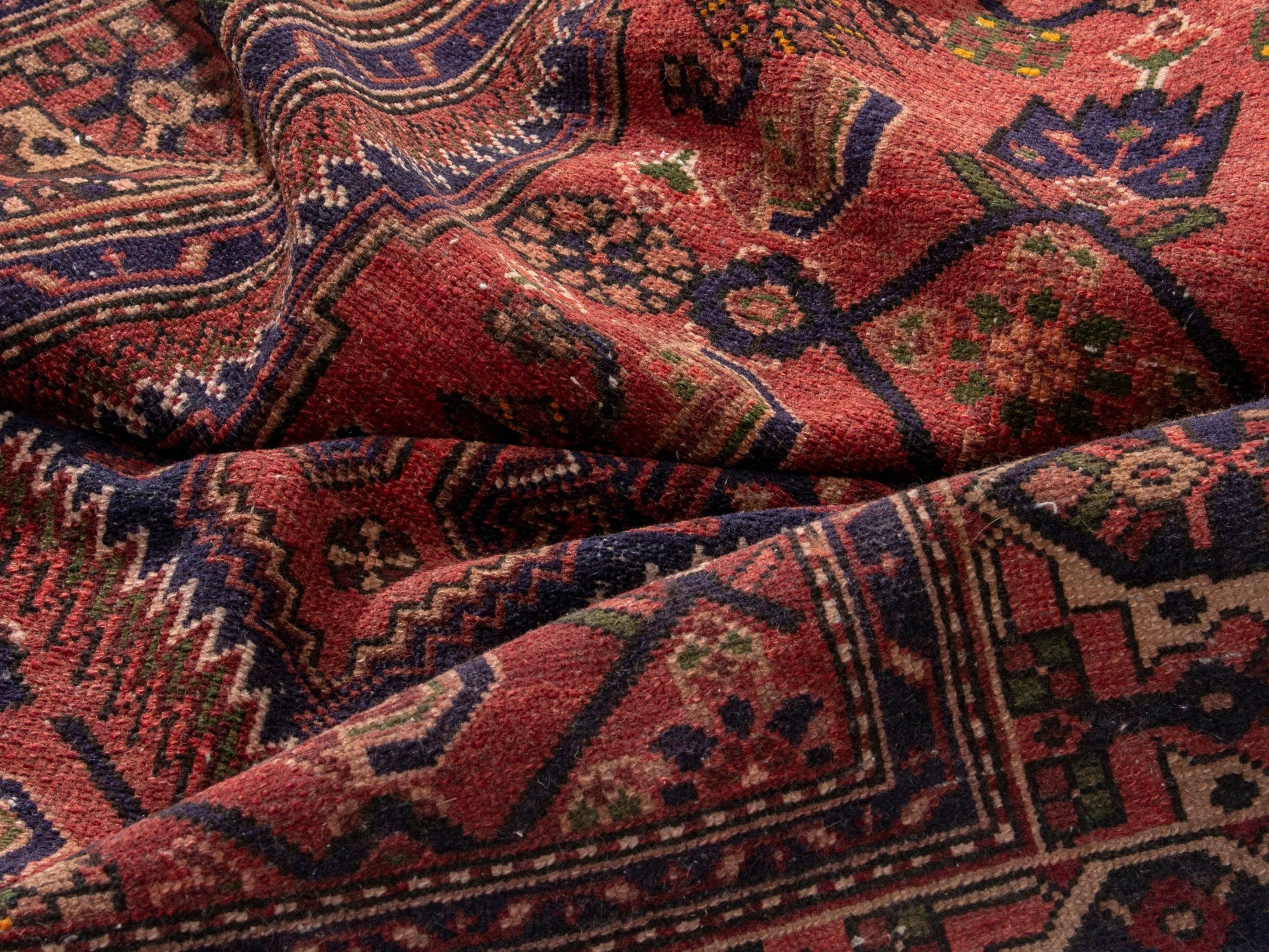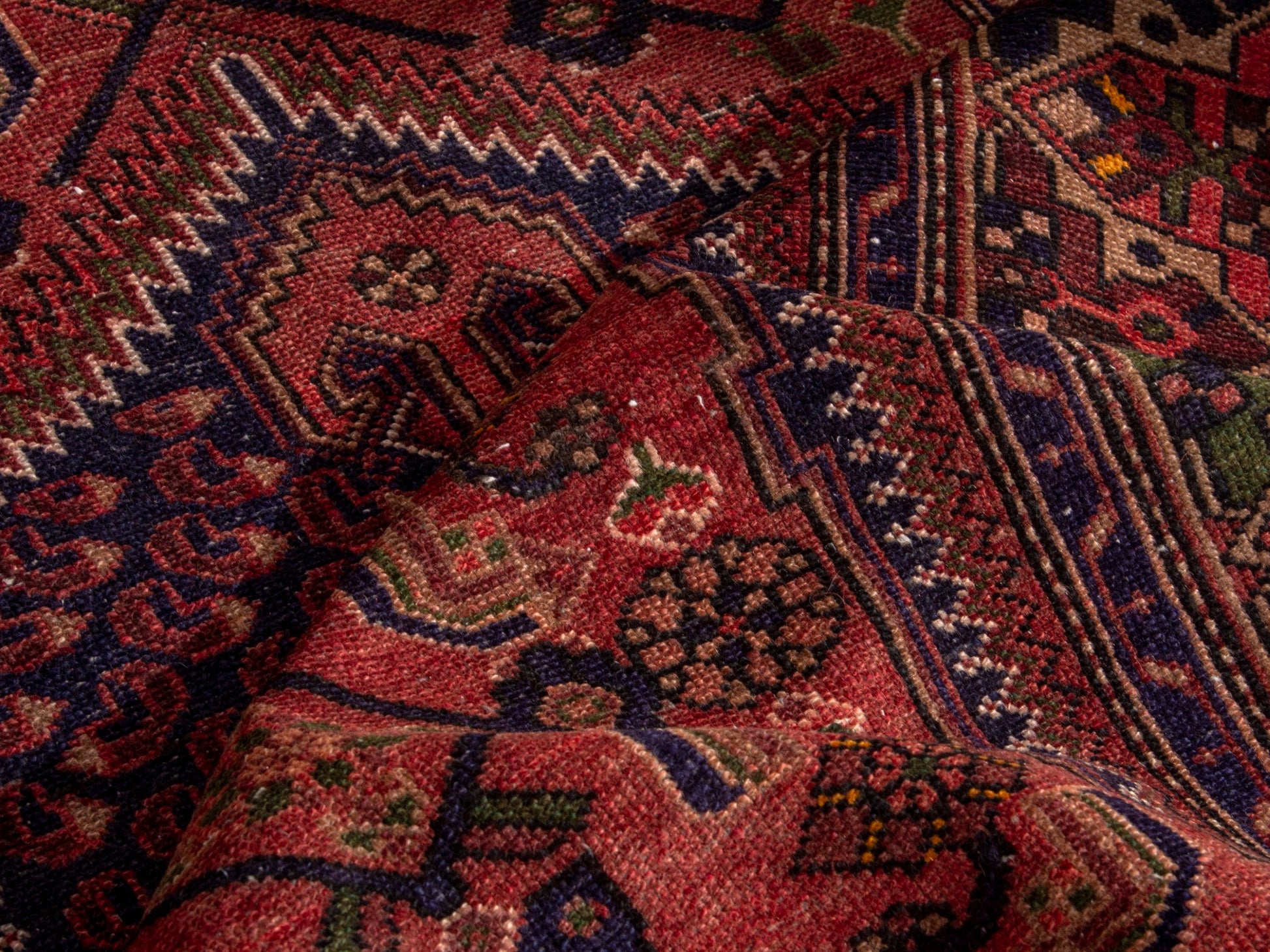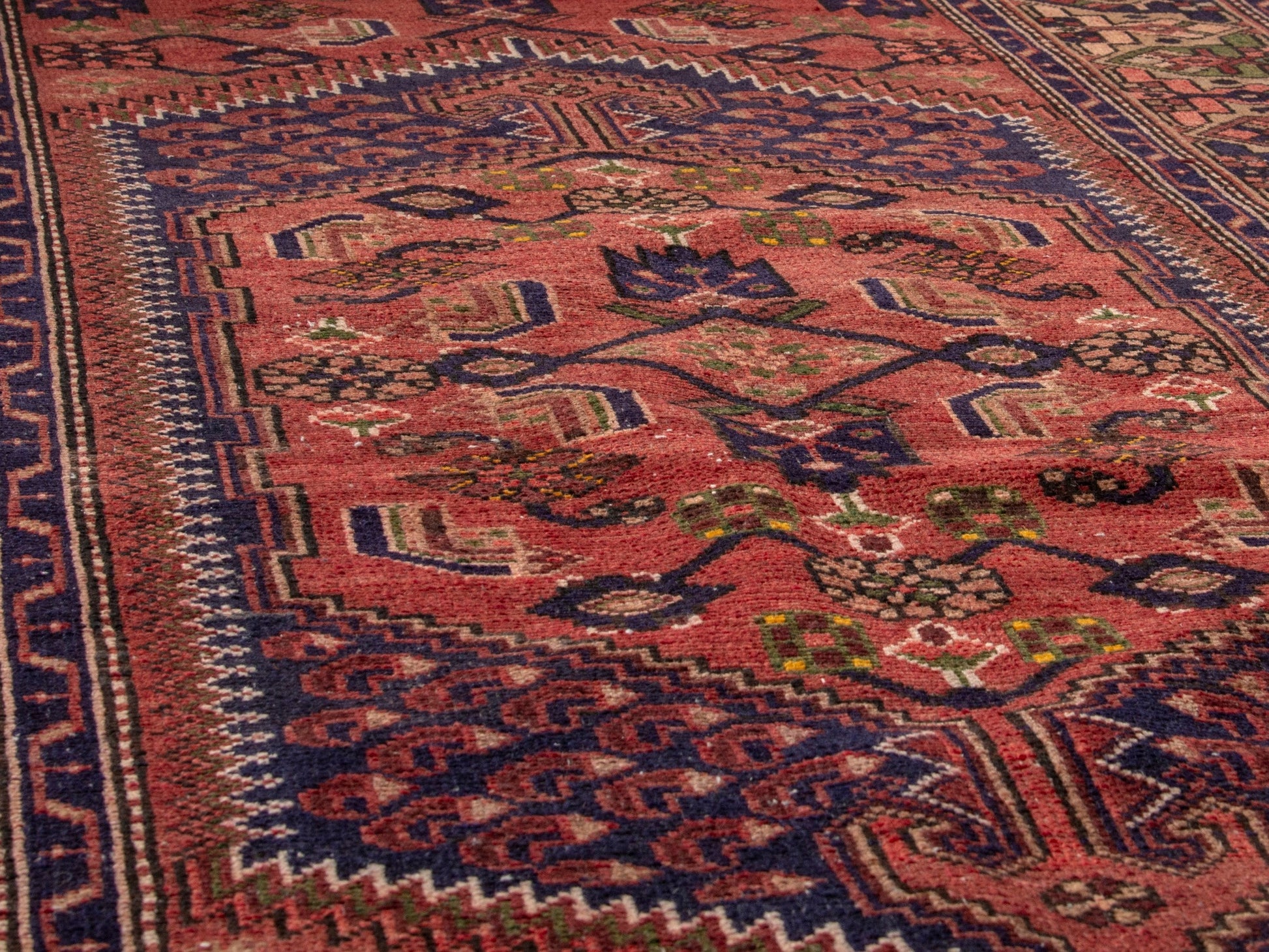 All the rugs we sell are professionally washed and cleaned; age-related wear and natural inconsistencies are inherent in these unique, handcrafted vintage rugs.