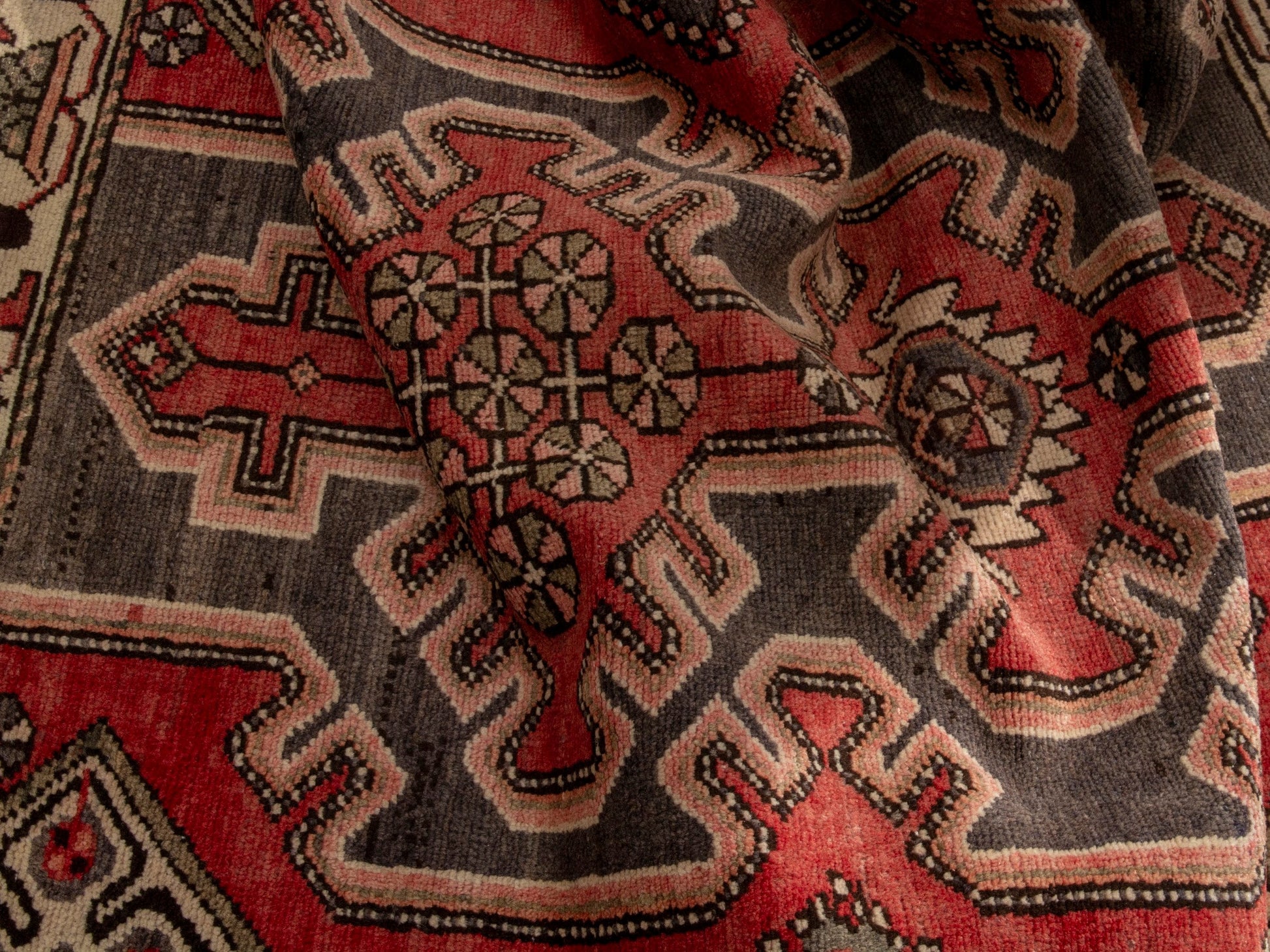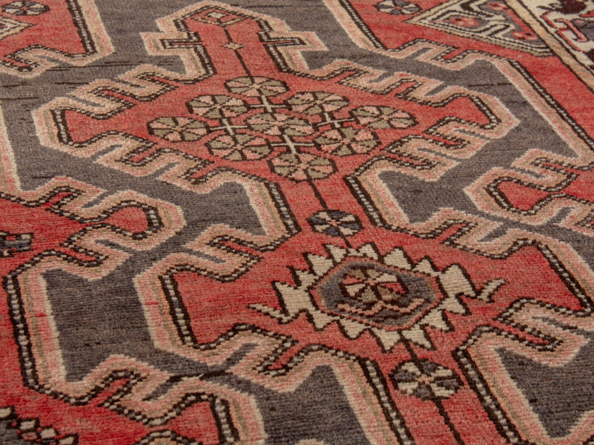All the rugs we sell are professionally washed and cleaned; age-related wear and natural inconsistencies are inherent in these unique, handcrafted vintage rugs.