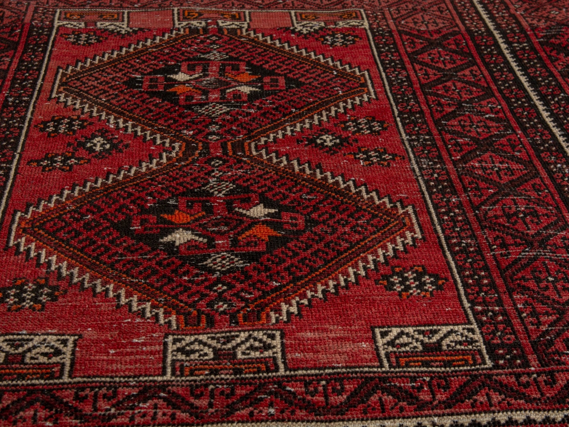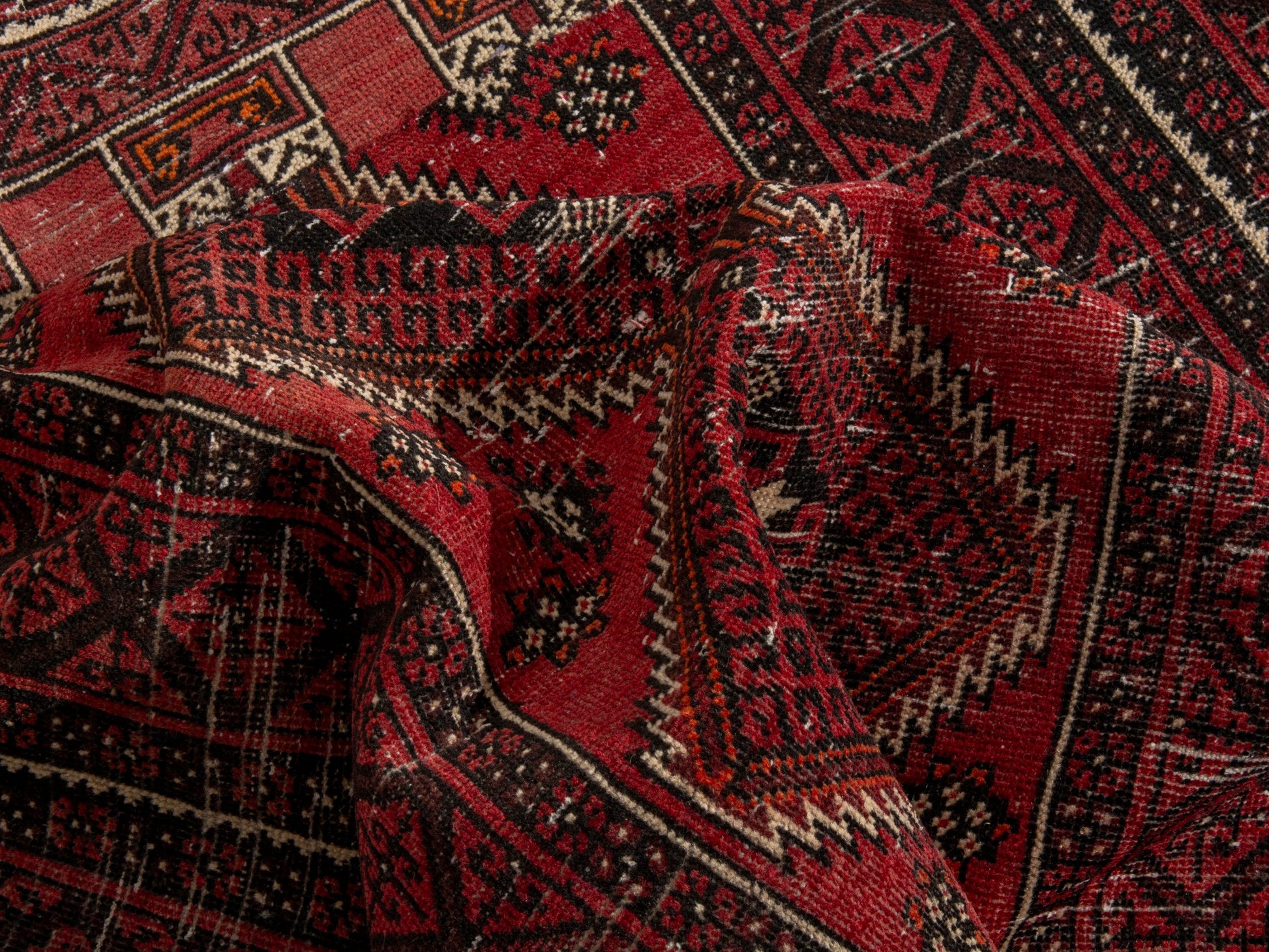All the rugs we sell are professionally washed and cleaned; age-related wear and natural inconsistencies are inherent in these unique, handcrafted vintage rugs.