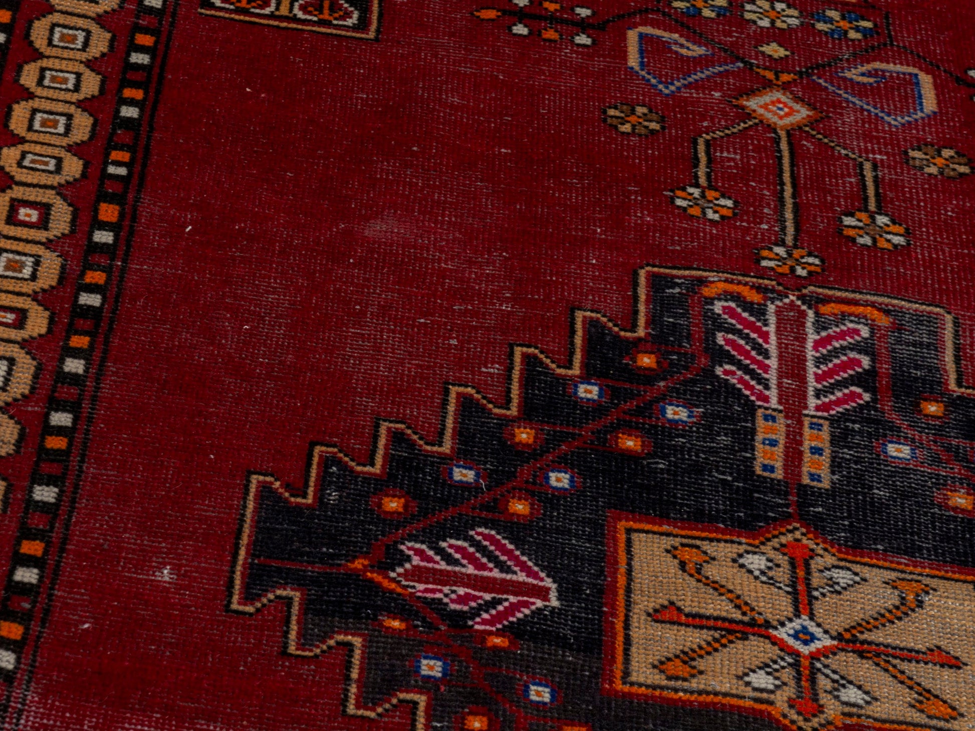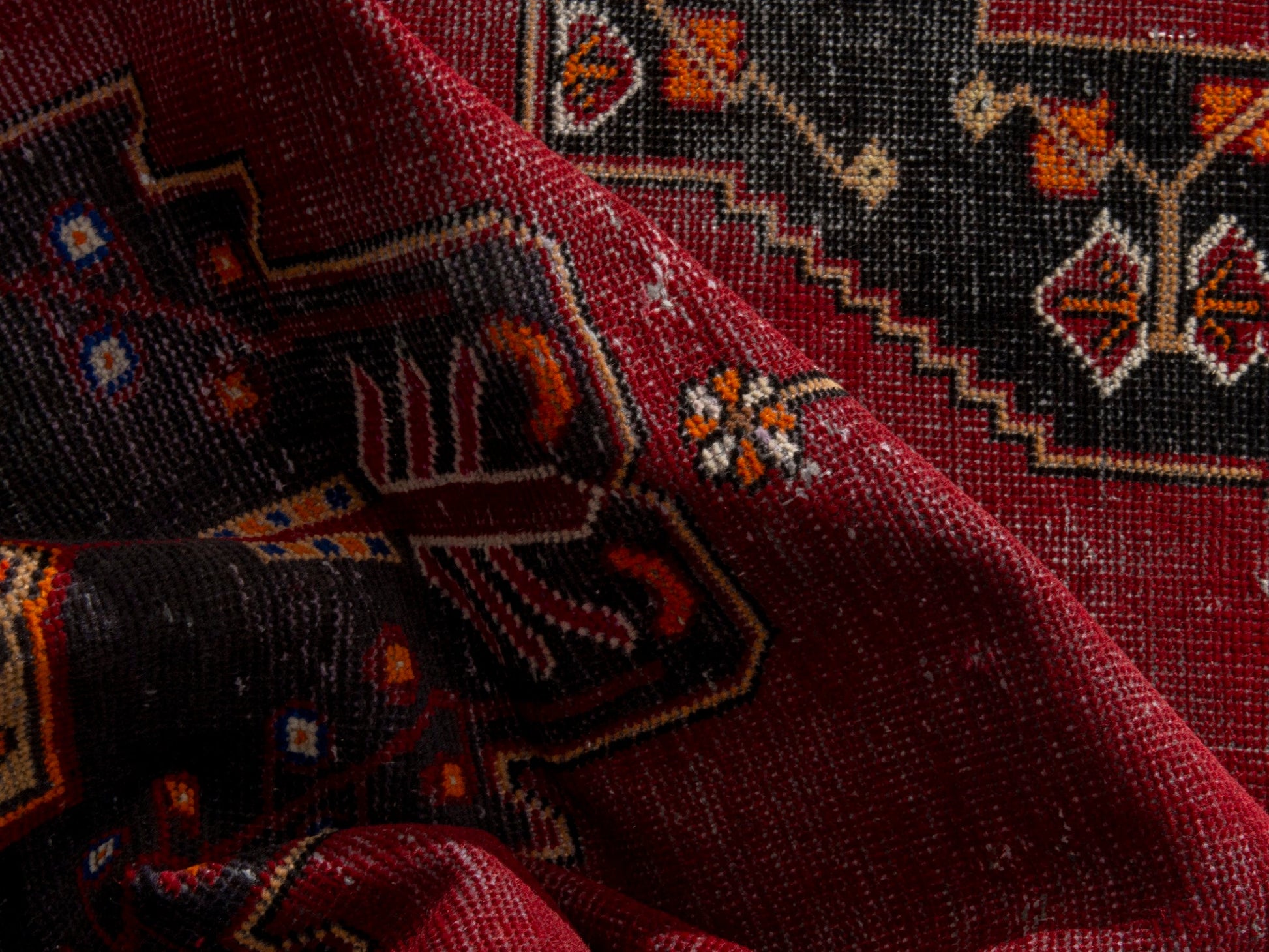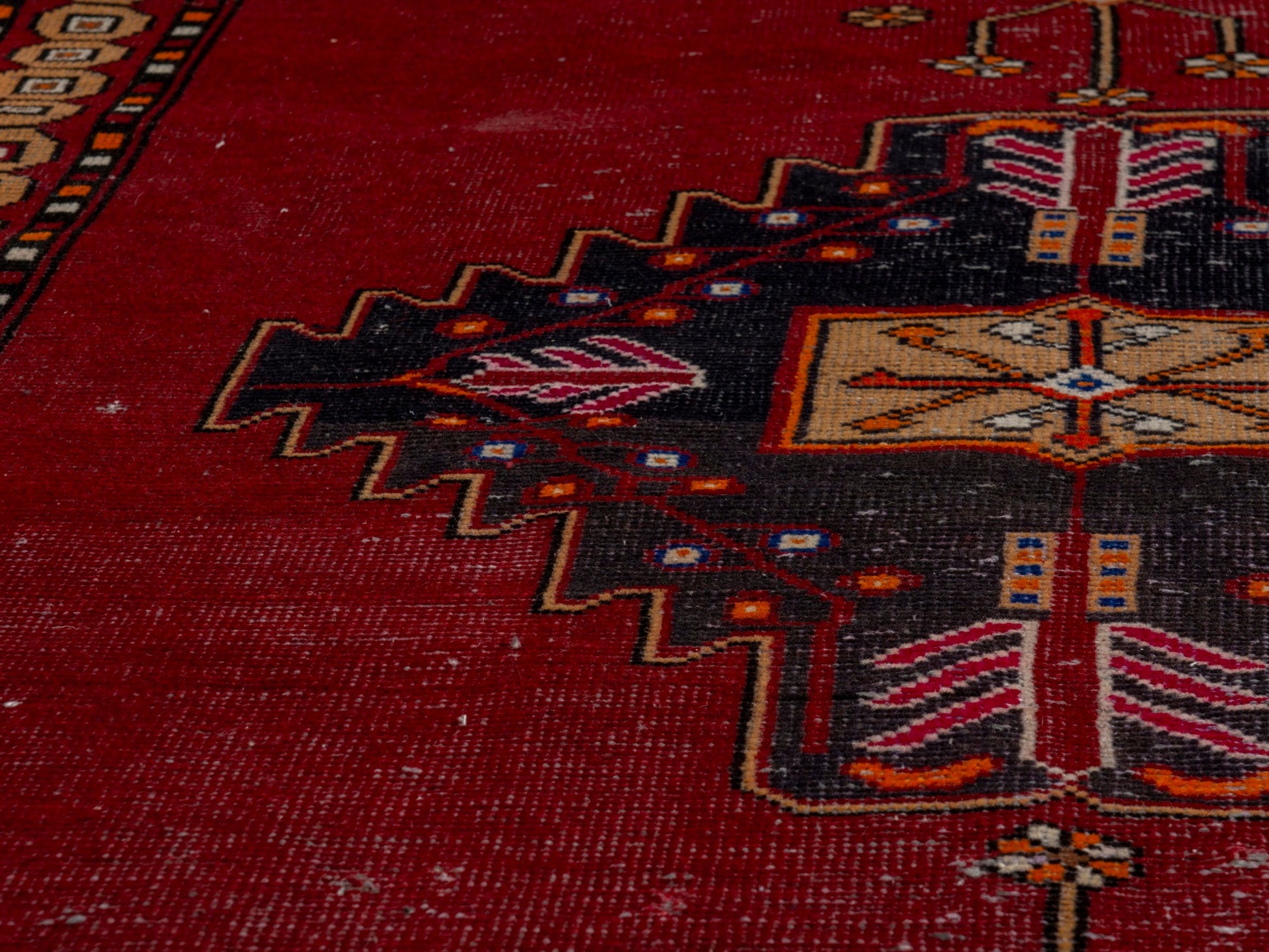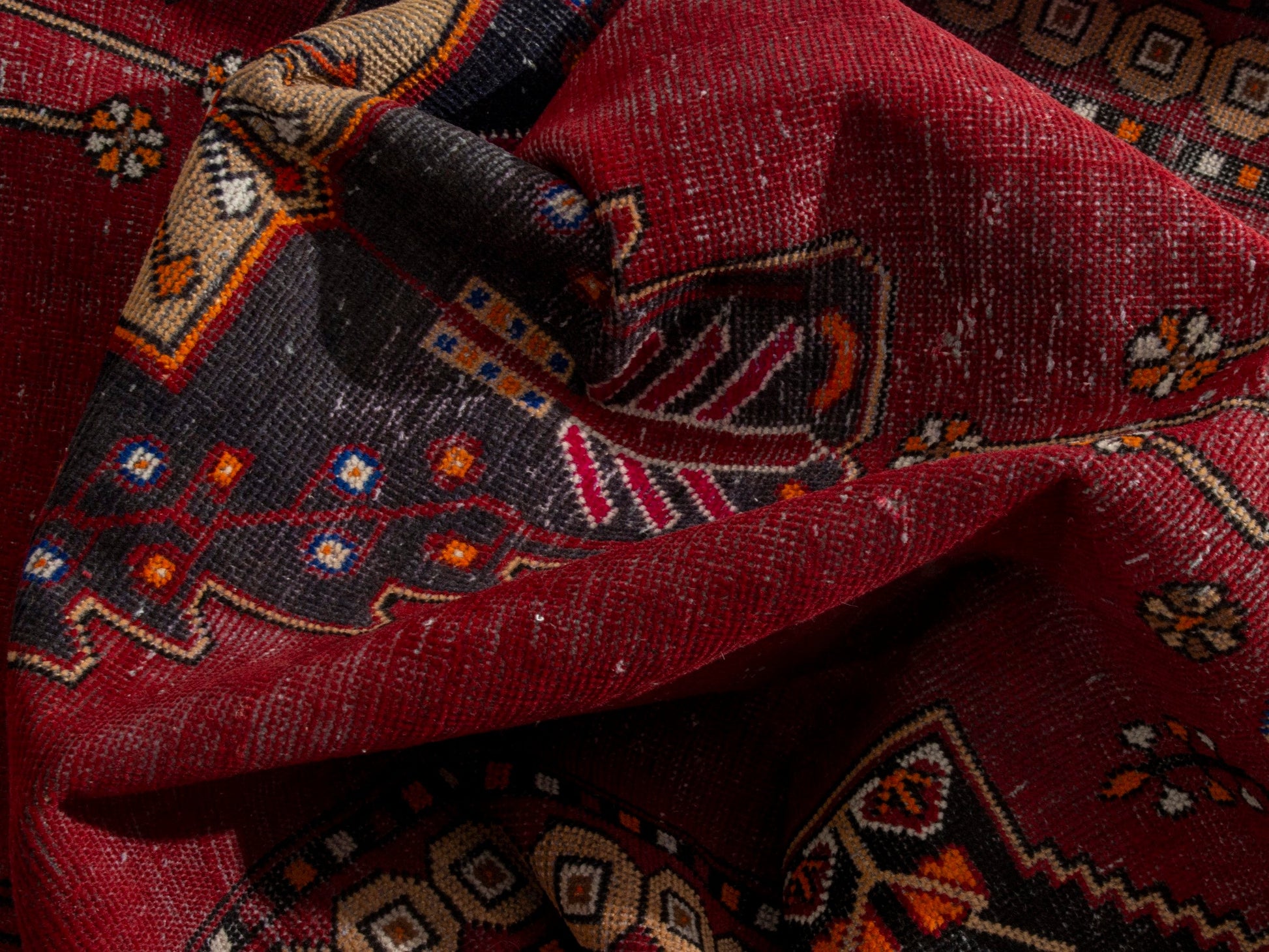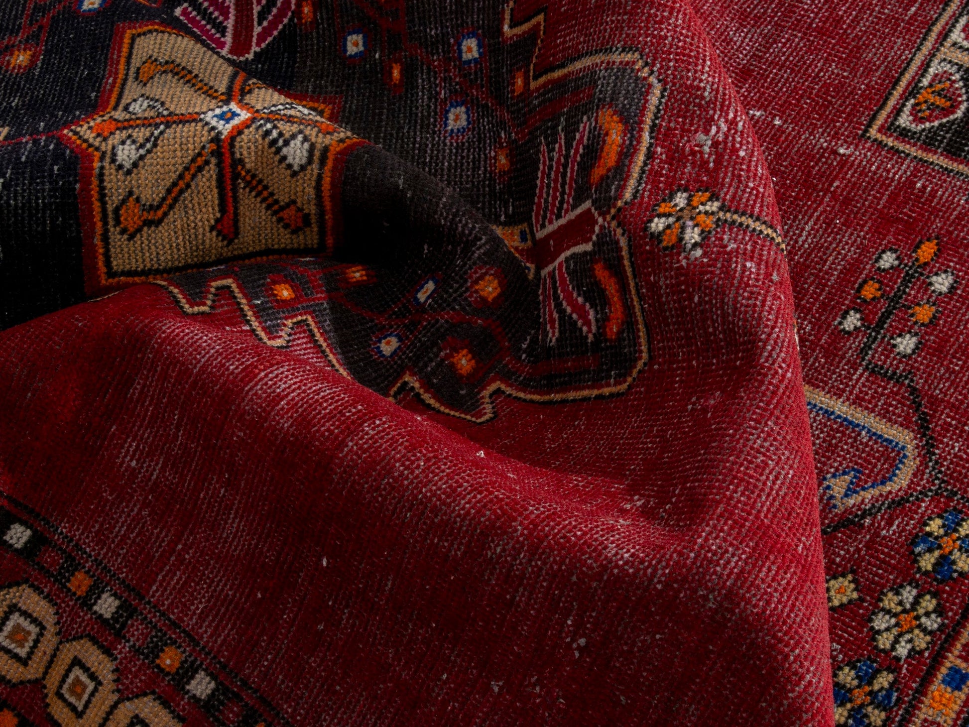 All the rugs we sell are professionally washed and cleaned; age-related wear and natural inconsistencies are inherent in these unique, handcrafted vintage rugs.