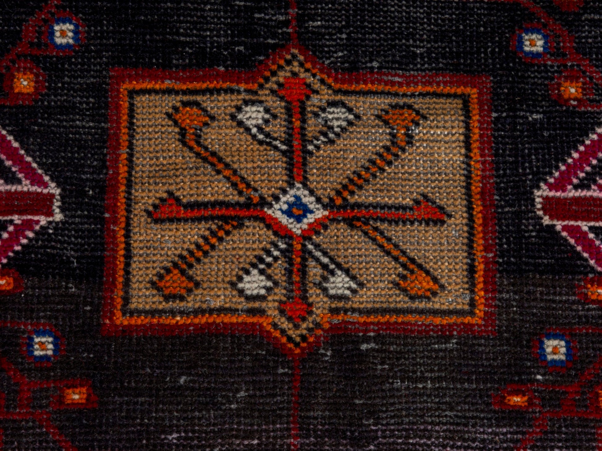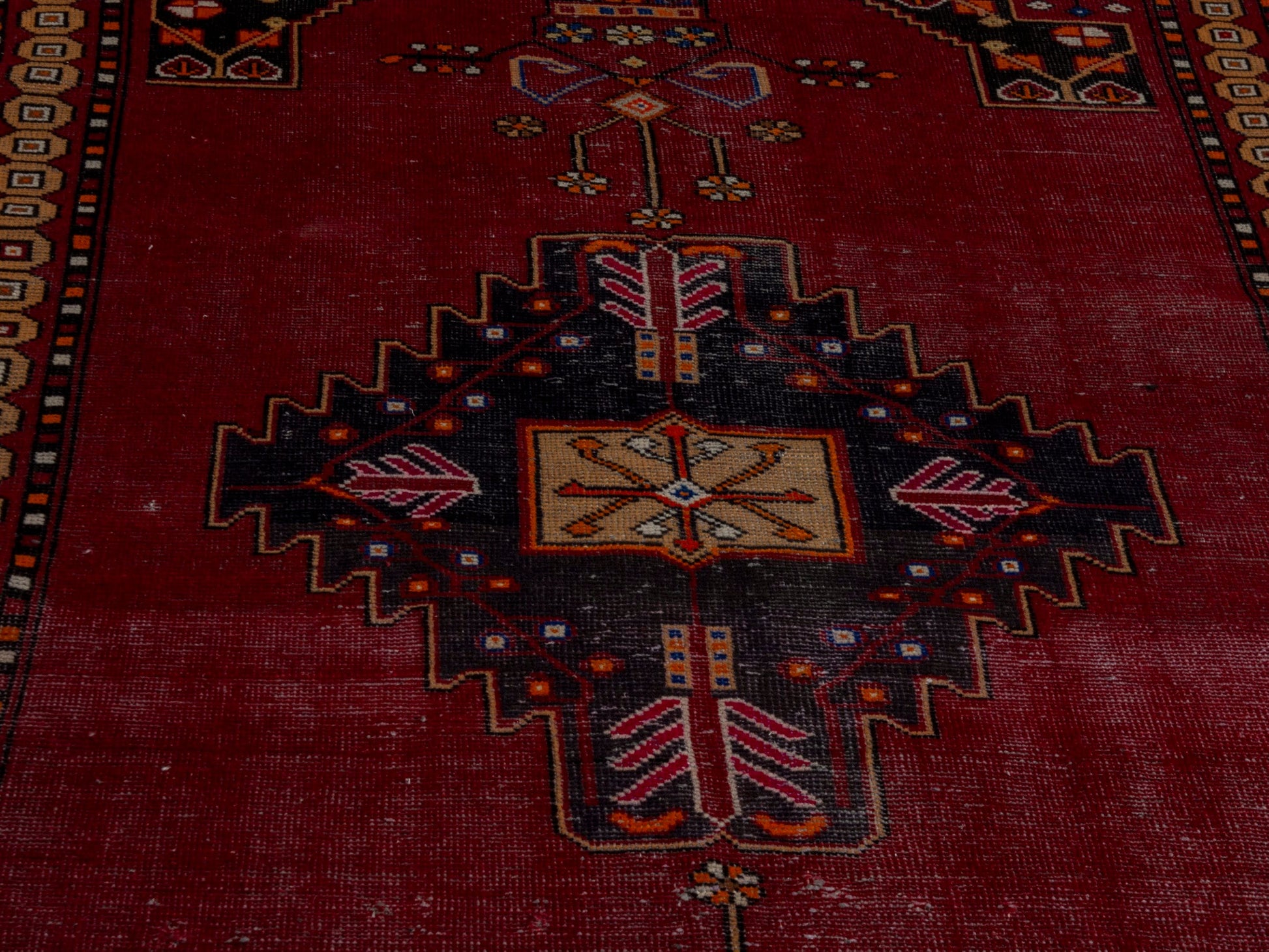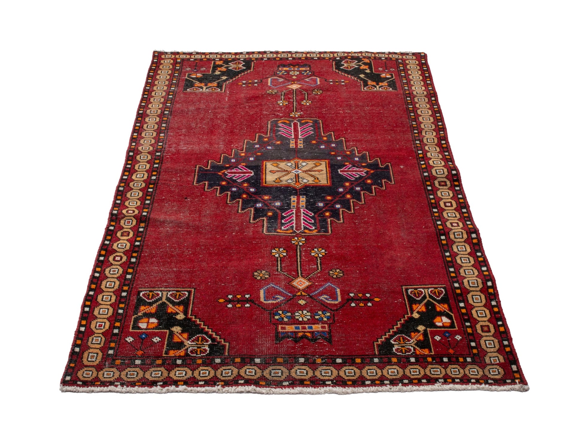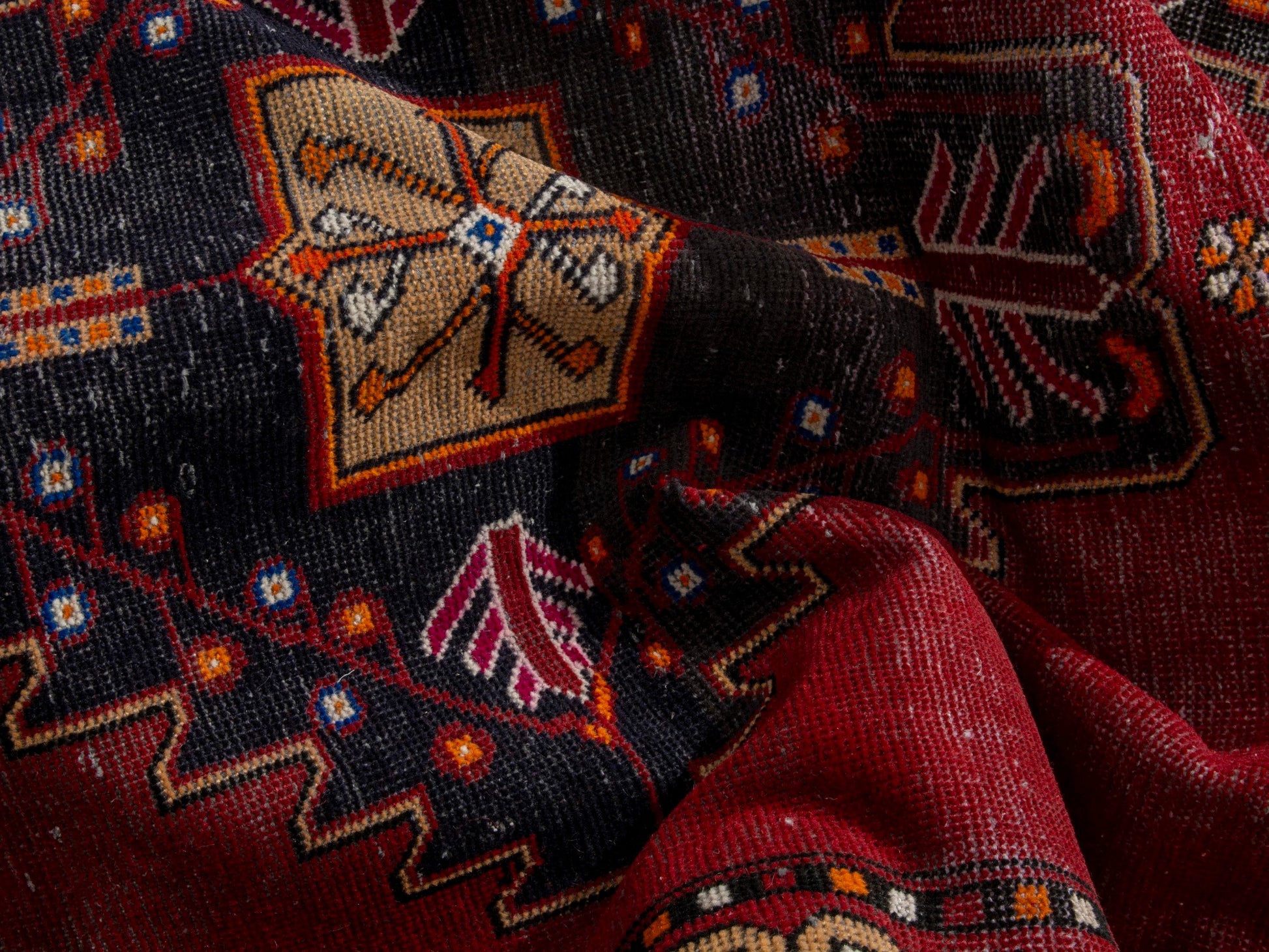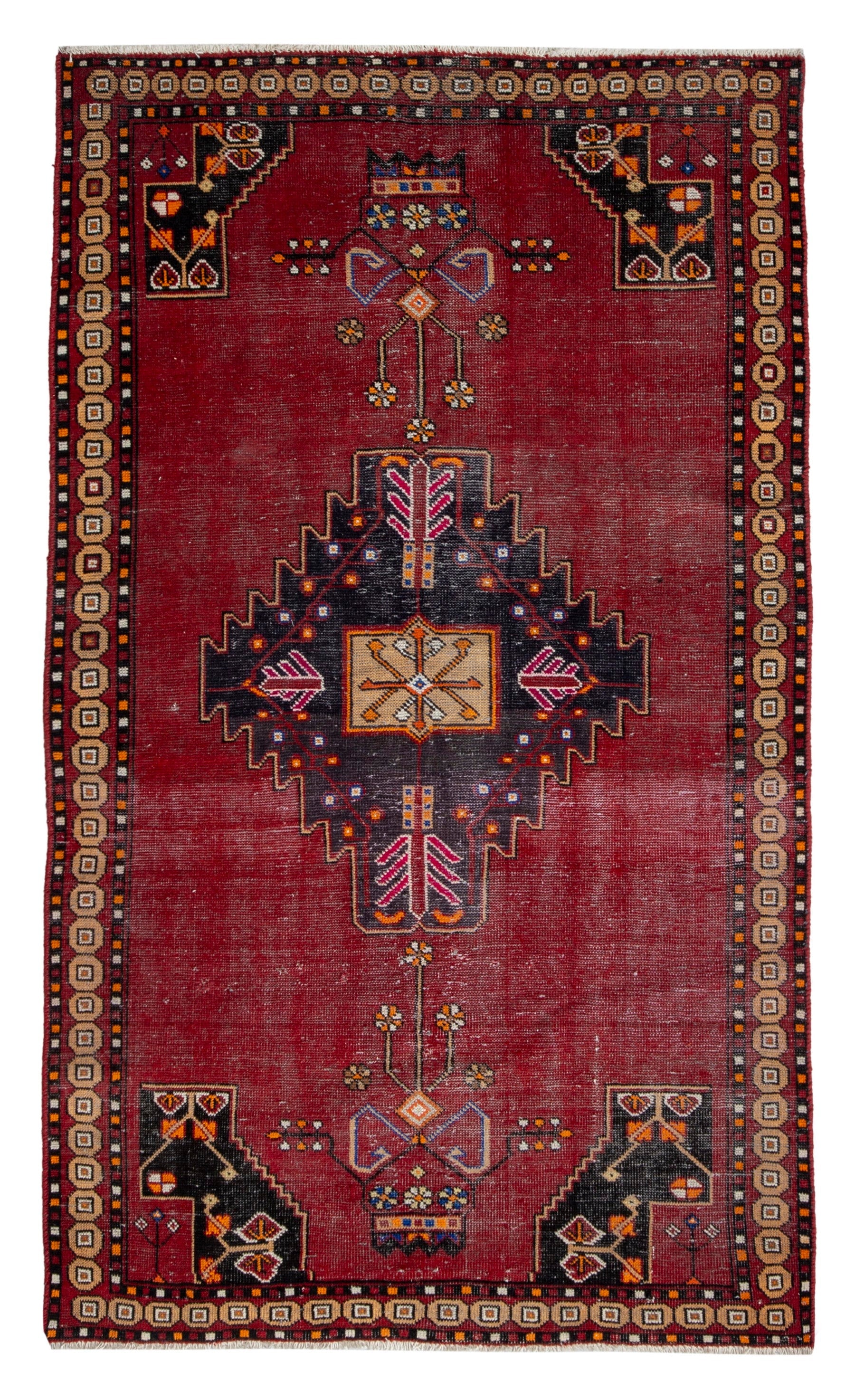All the rugs we sell are professionally washed and cleaned; age-related wear and natural inconsistencies are inherent in these unique, handcrafted vintage rugs.