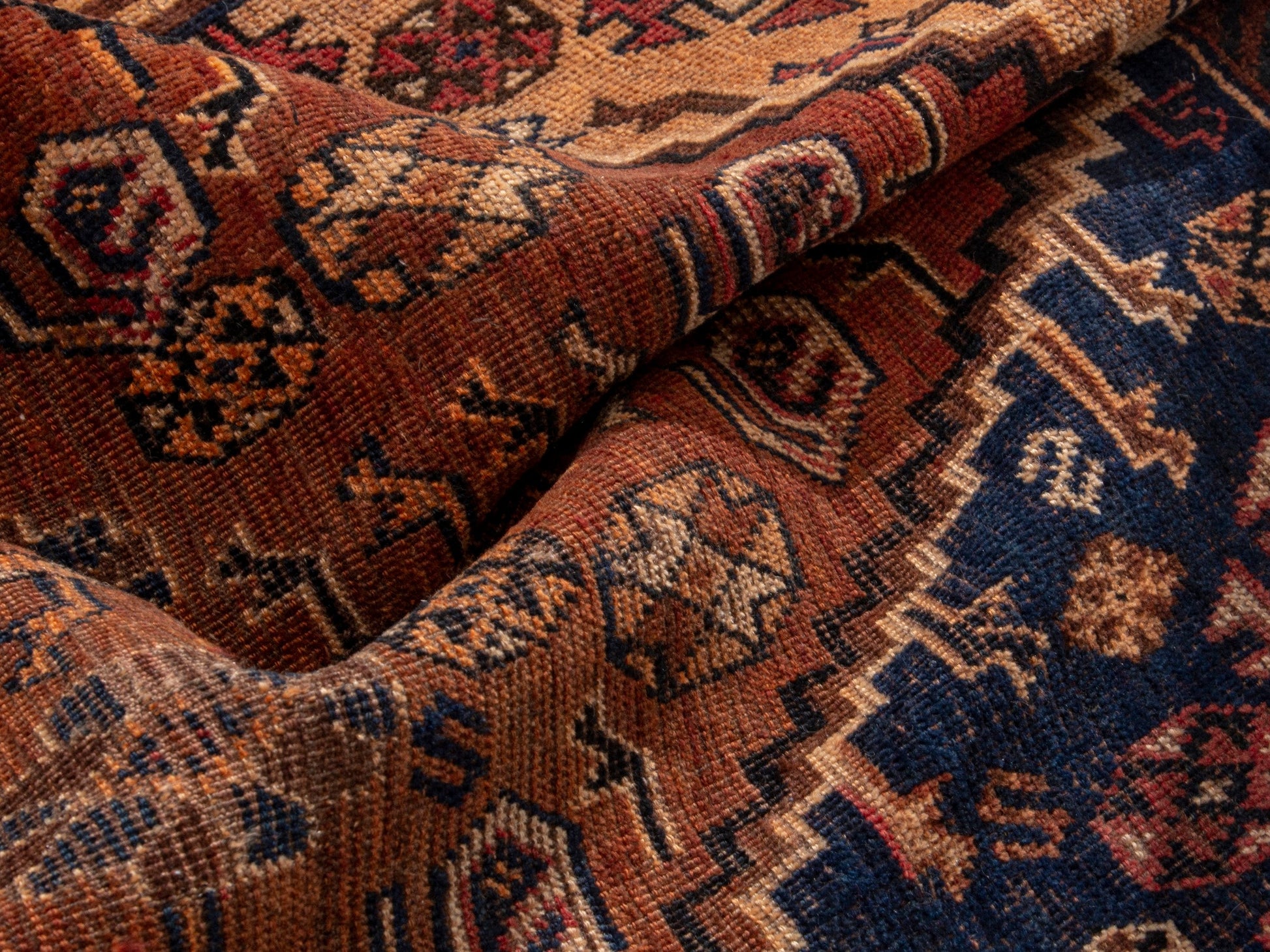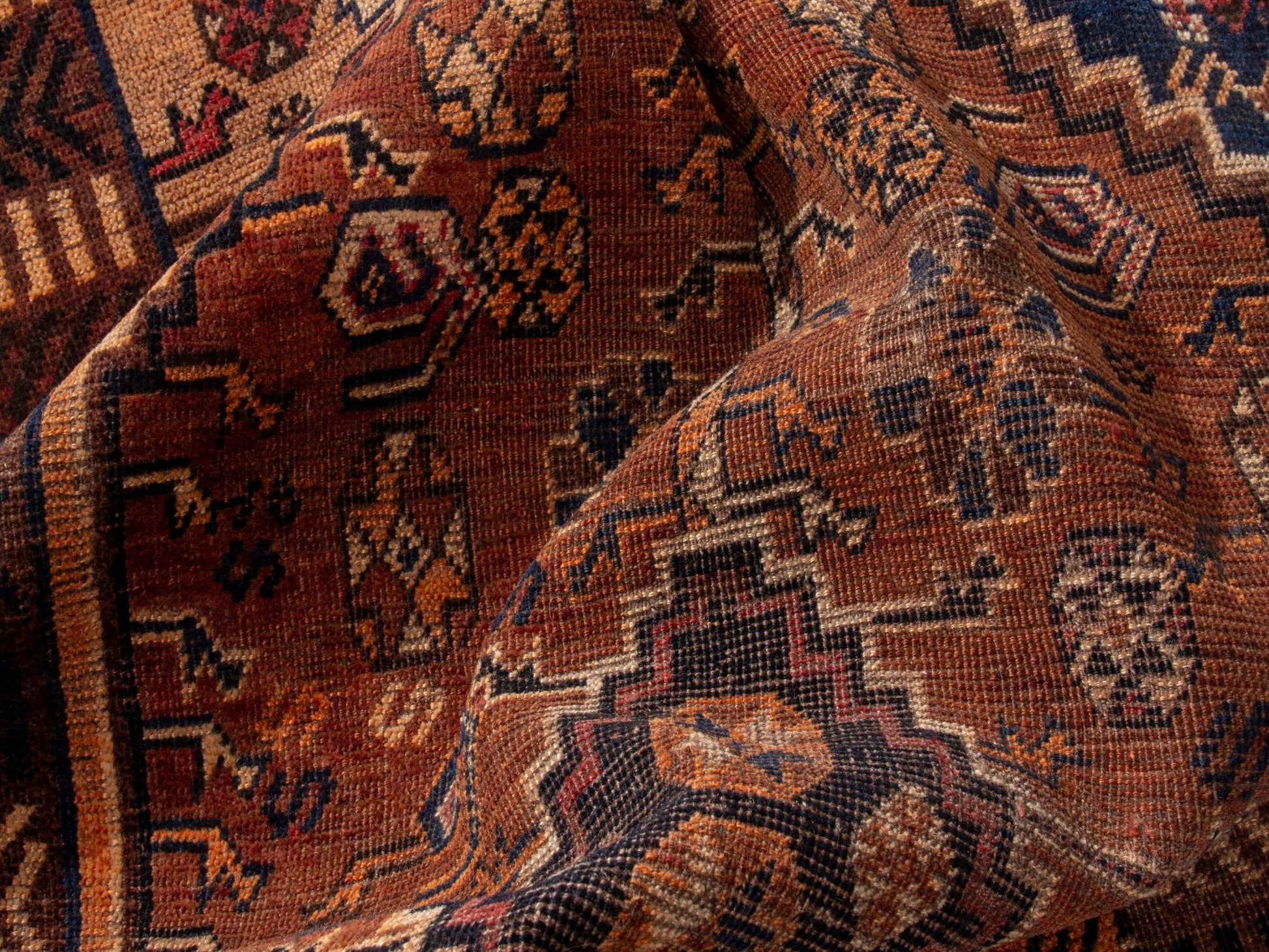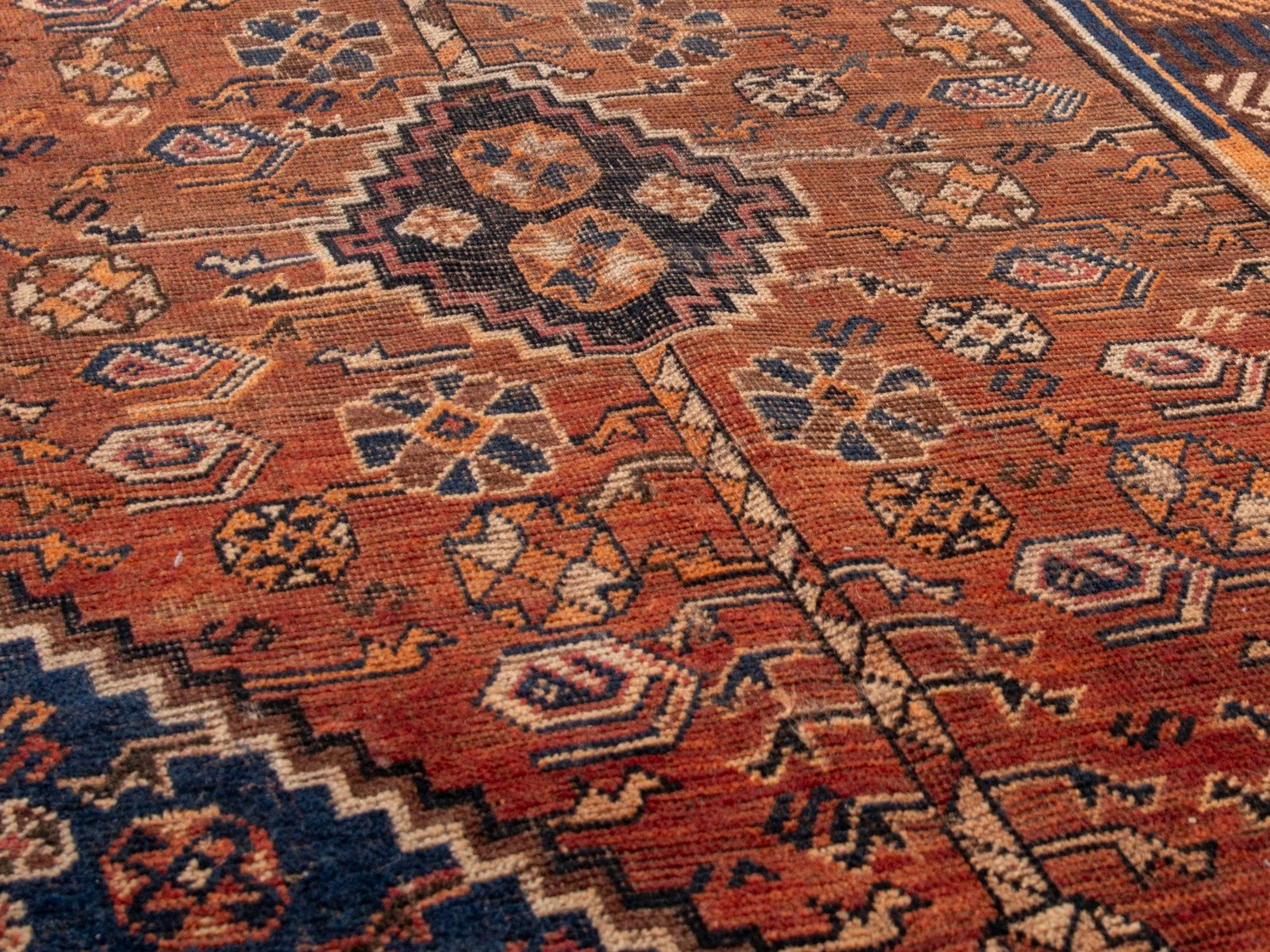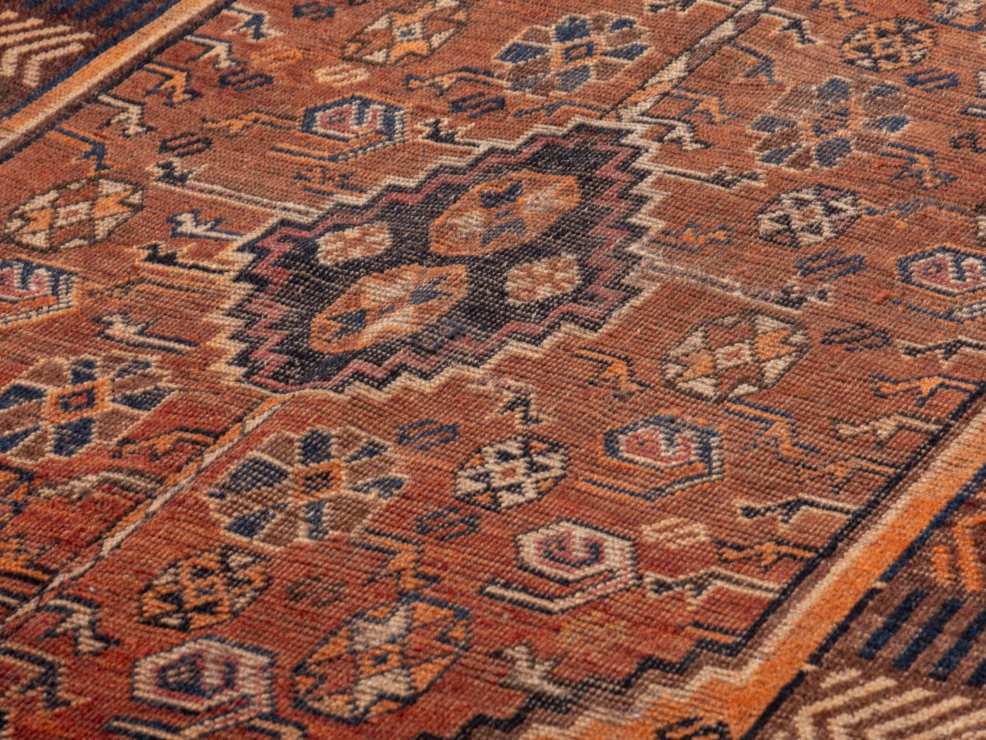 All the rugs we sell are professionally washed and cleaned; age-related wear and natural inconsistencies are inherent in these unique, handcrafted vintage rugs.