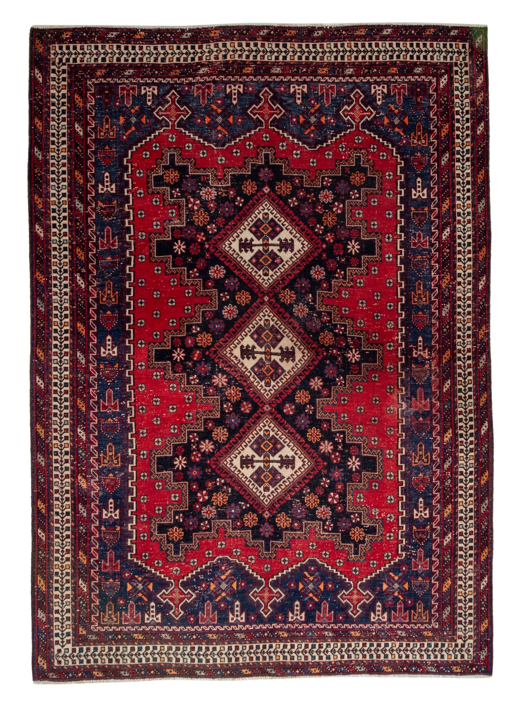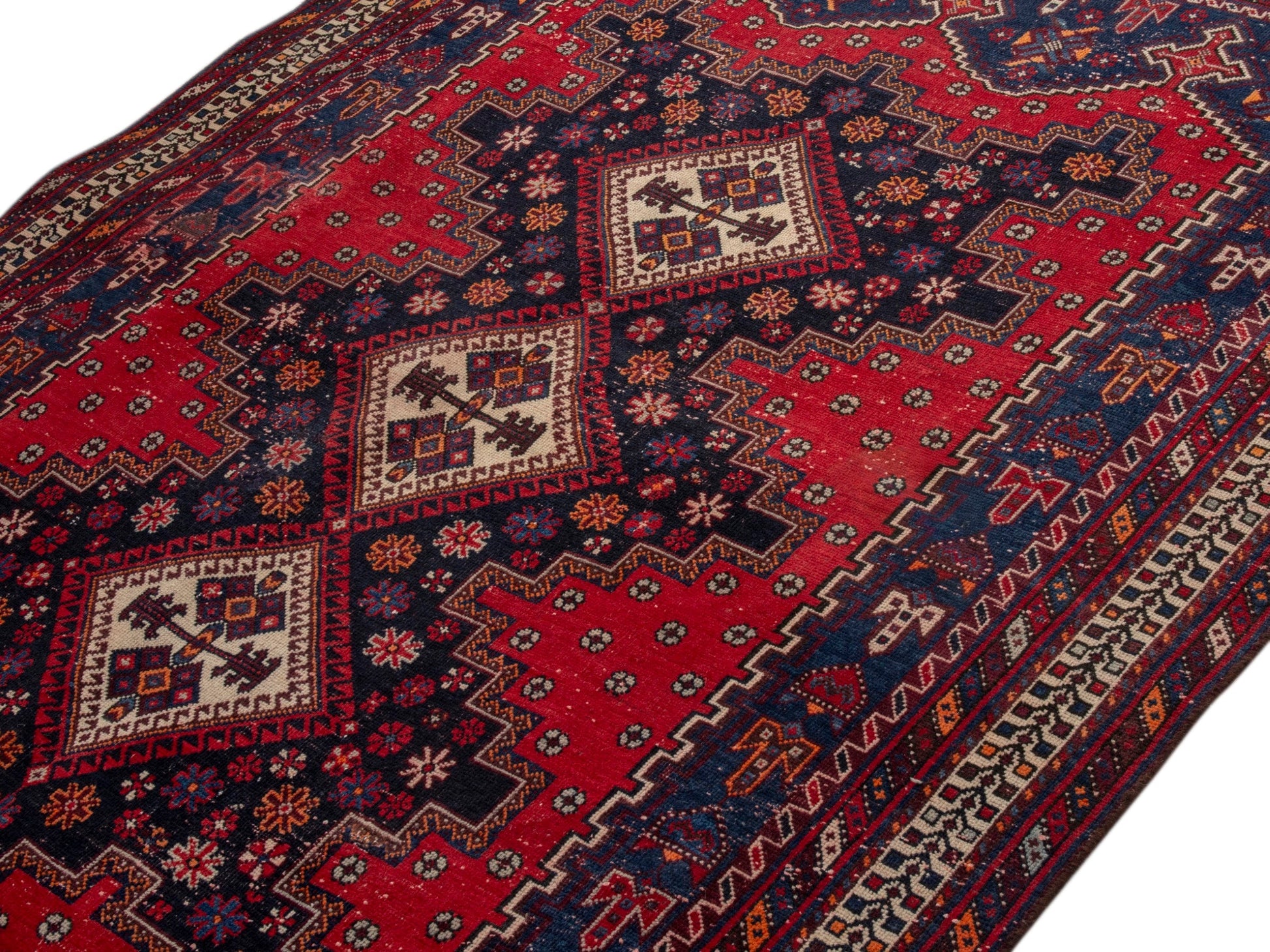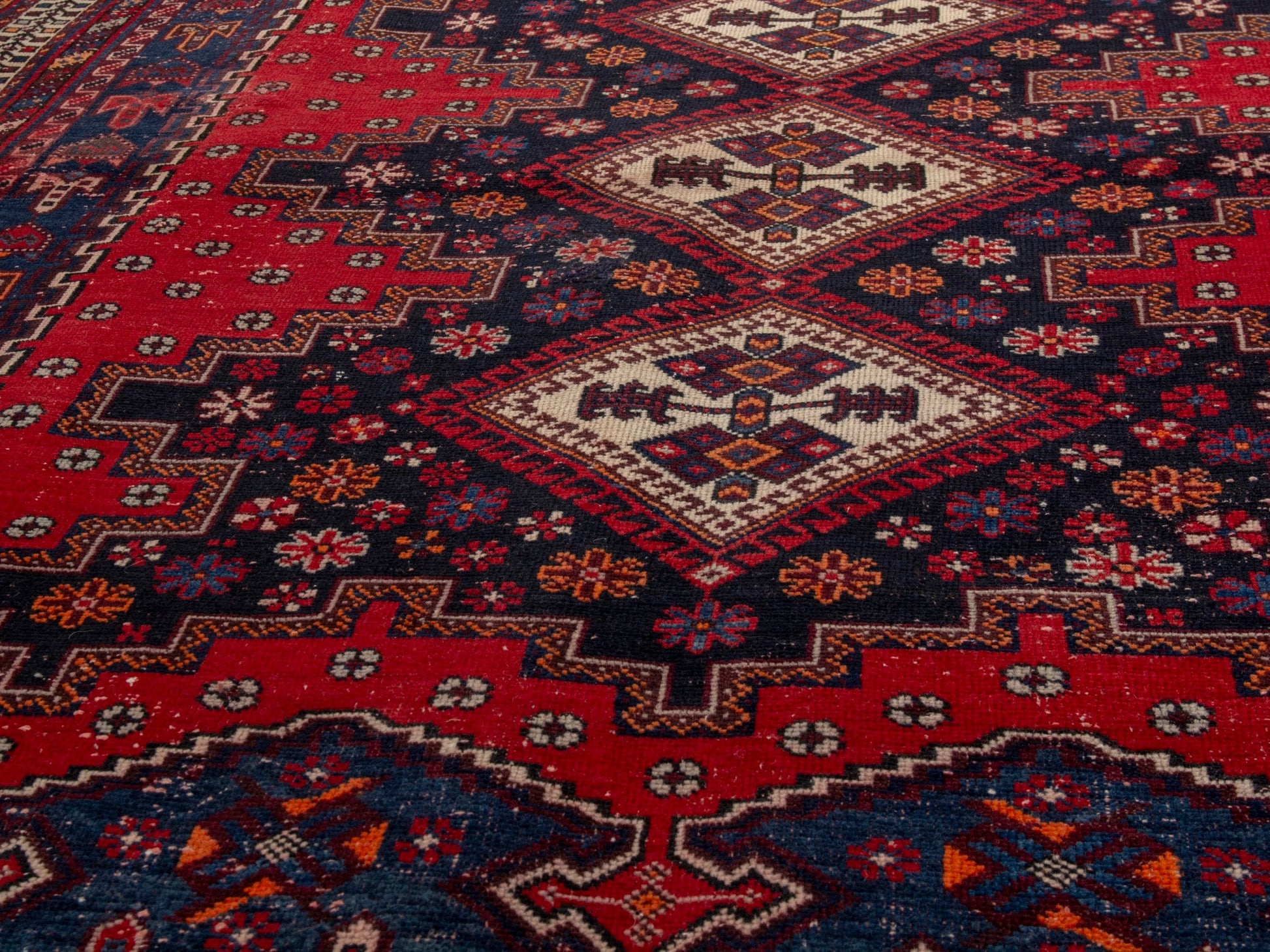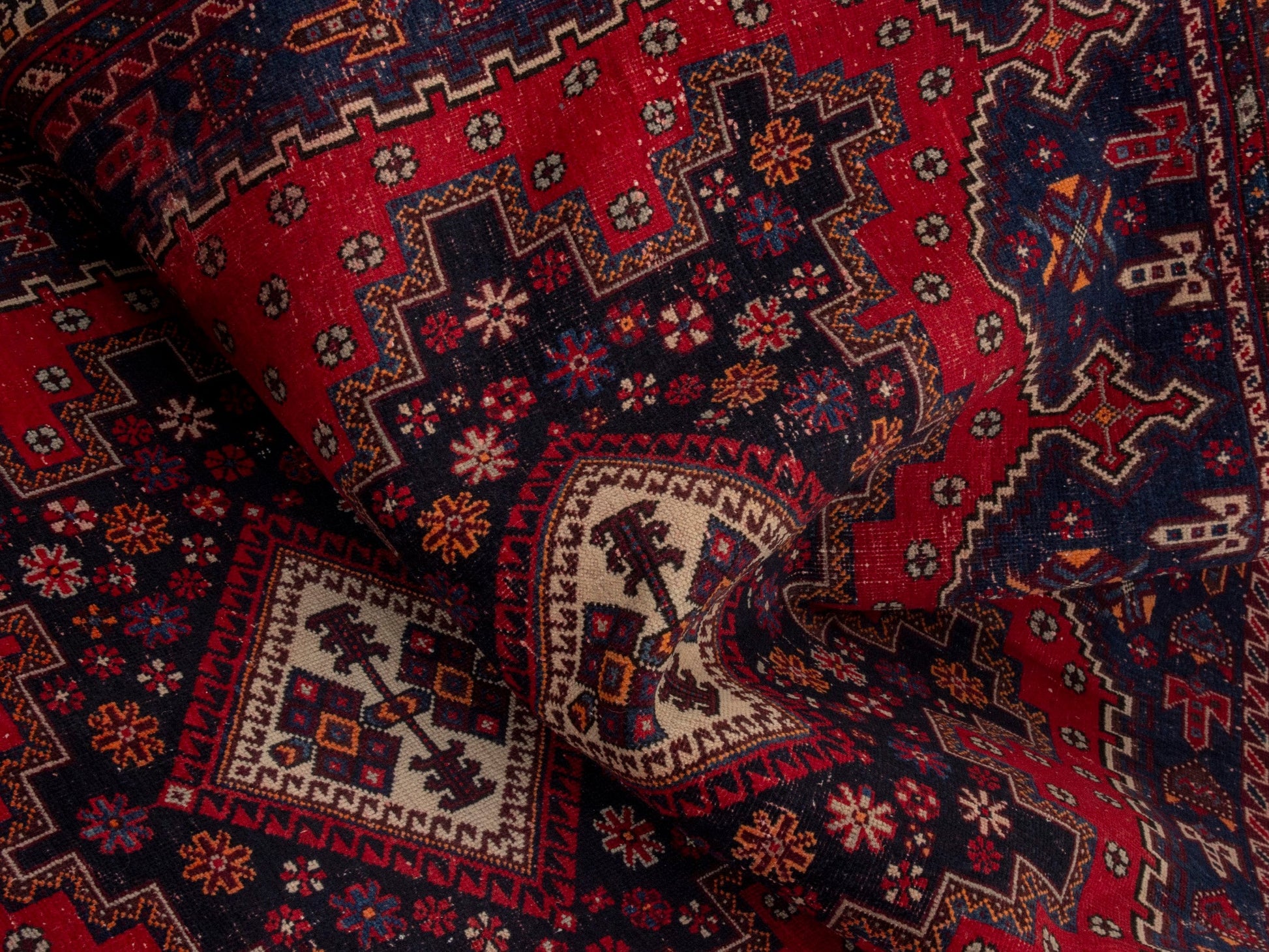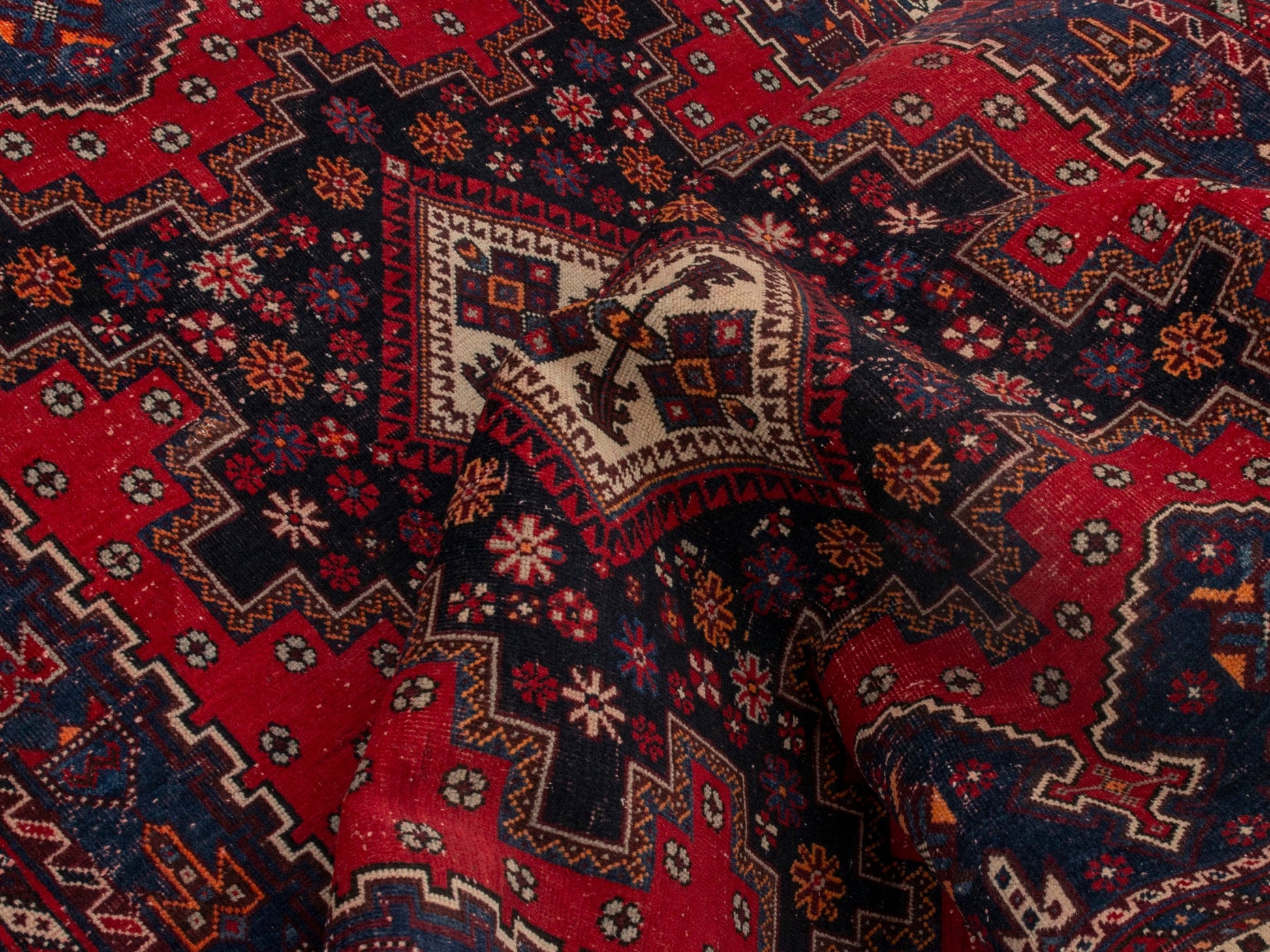 All the rugs we sell are professionally washed and cleaned; age-related wear and natural inconsistencies are inherent in these unique, handcrafted vintage rugs.