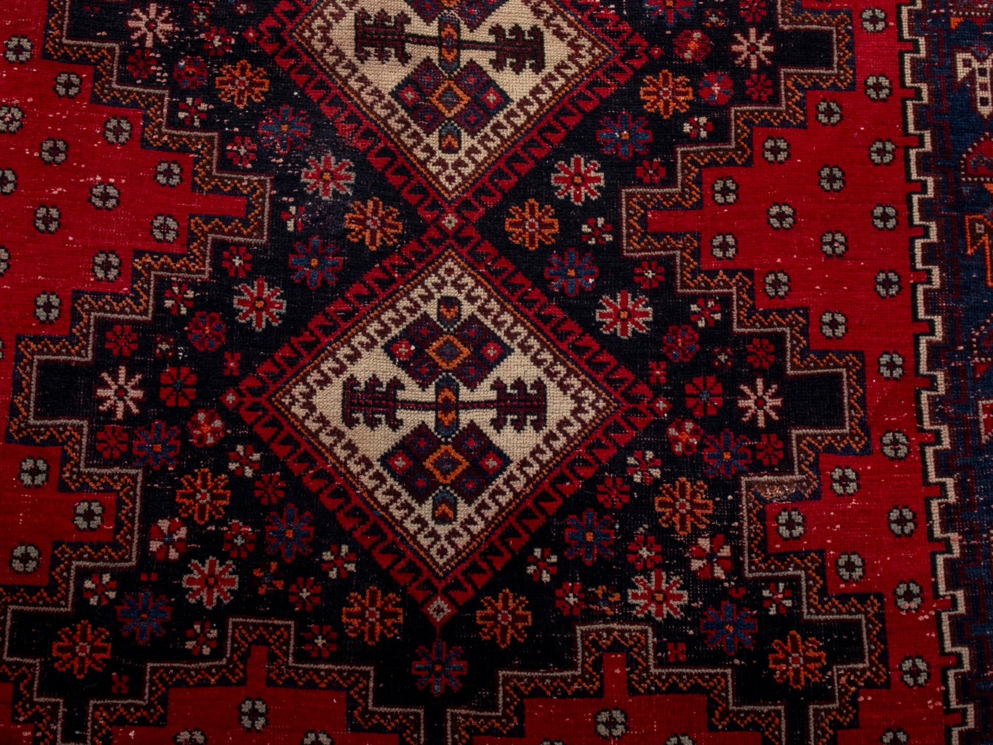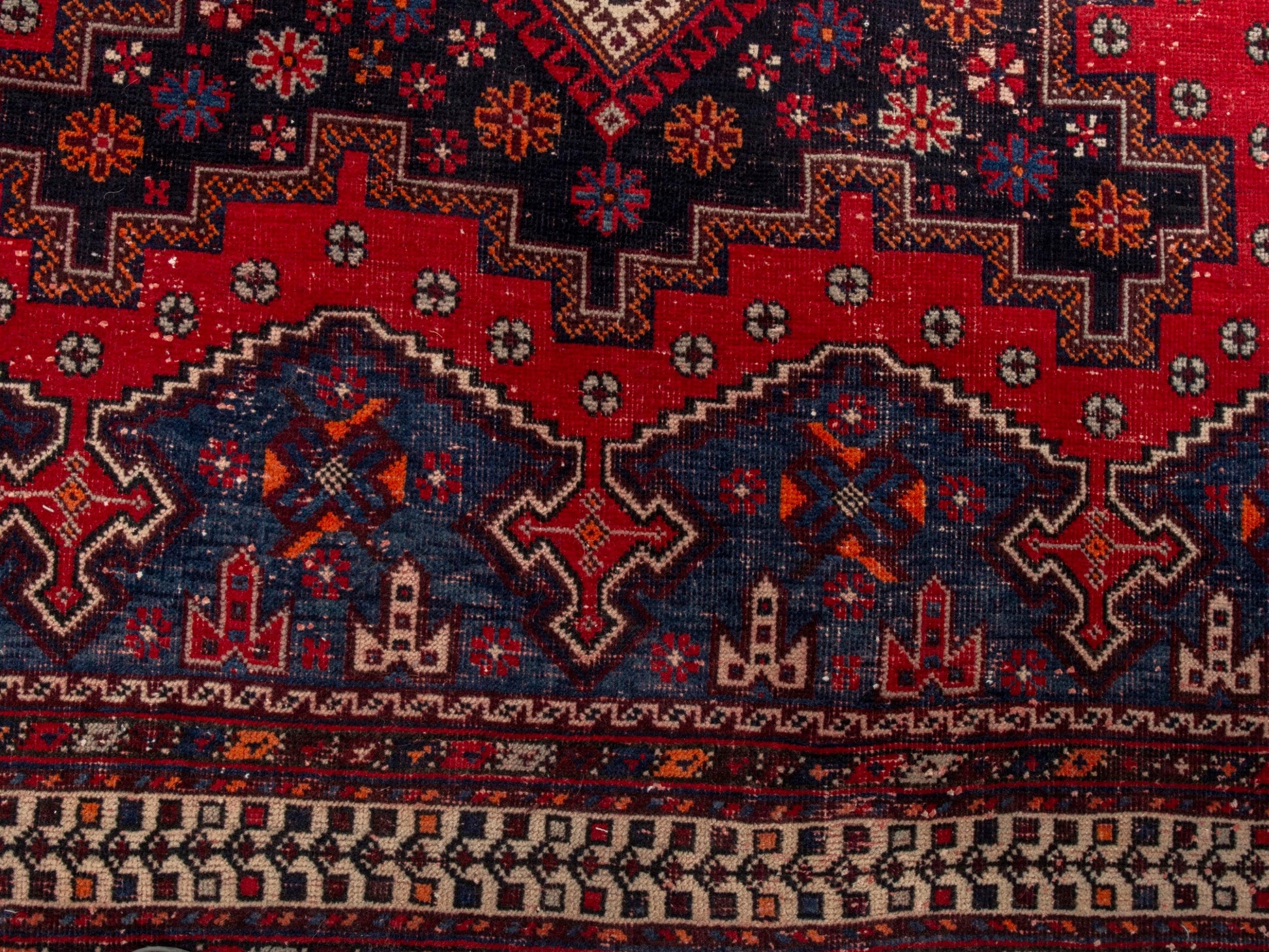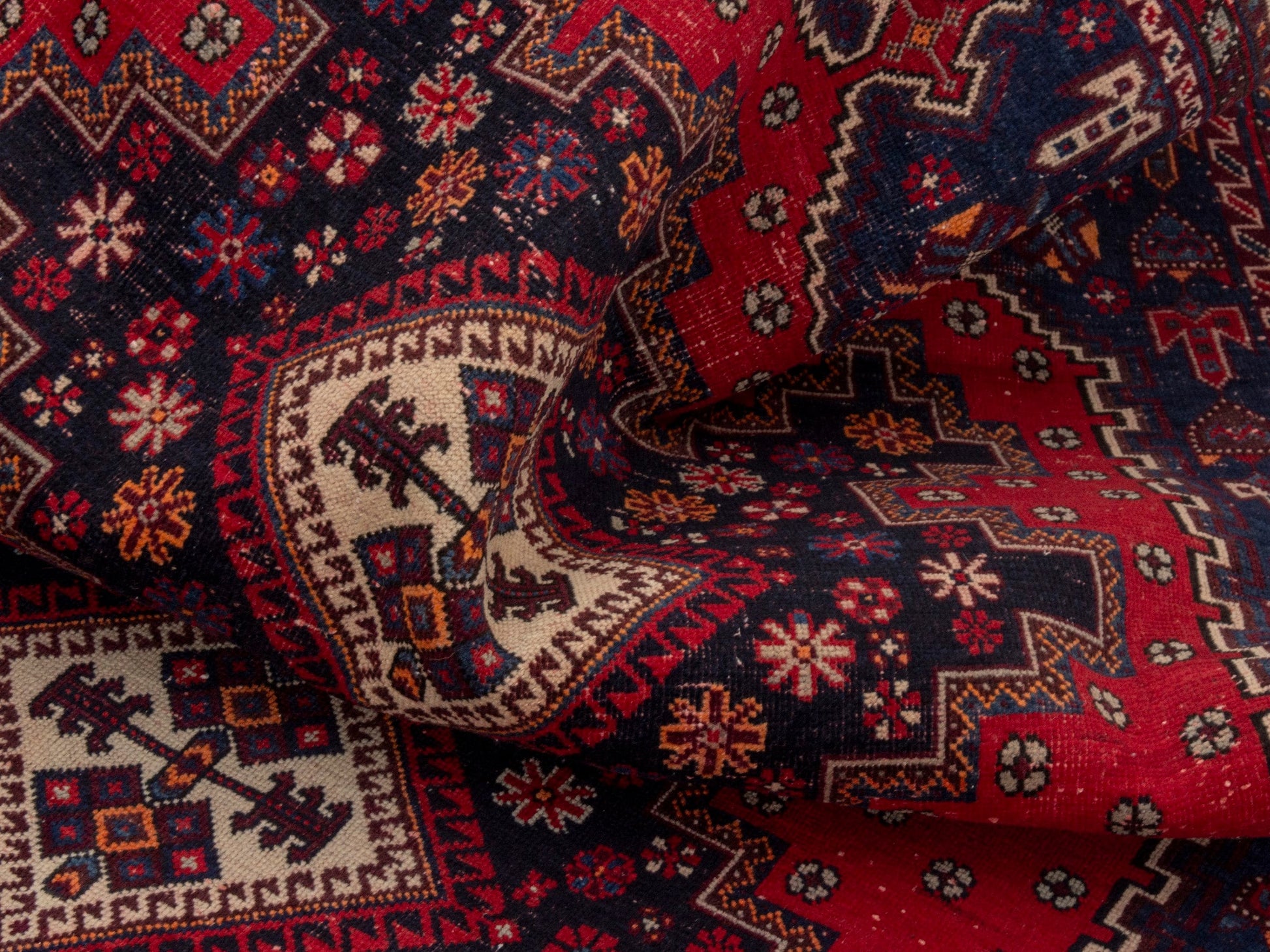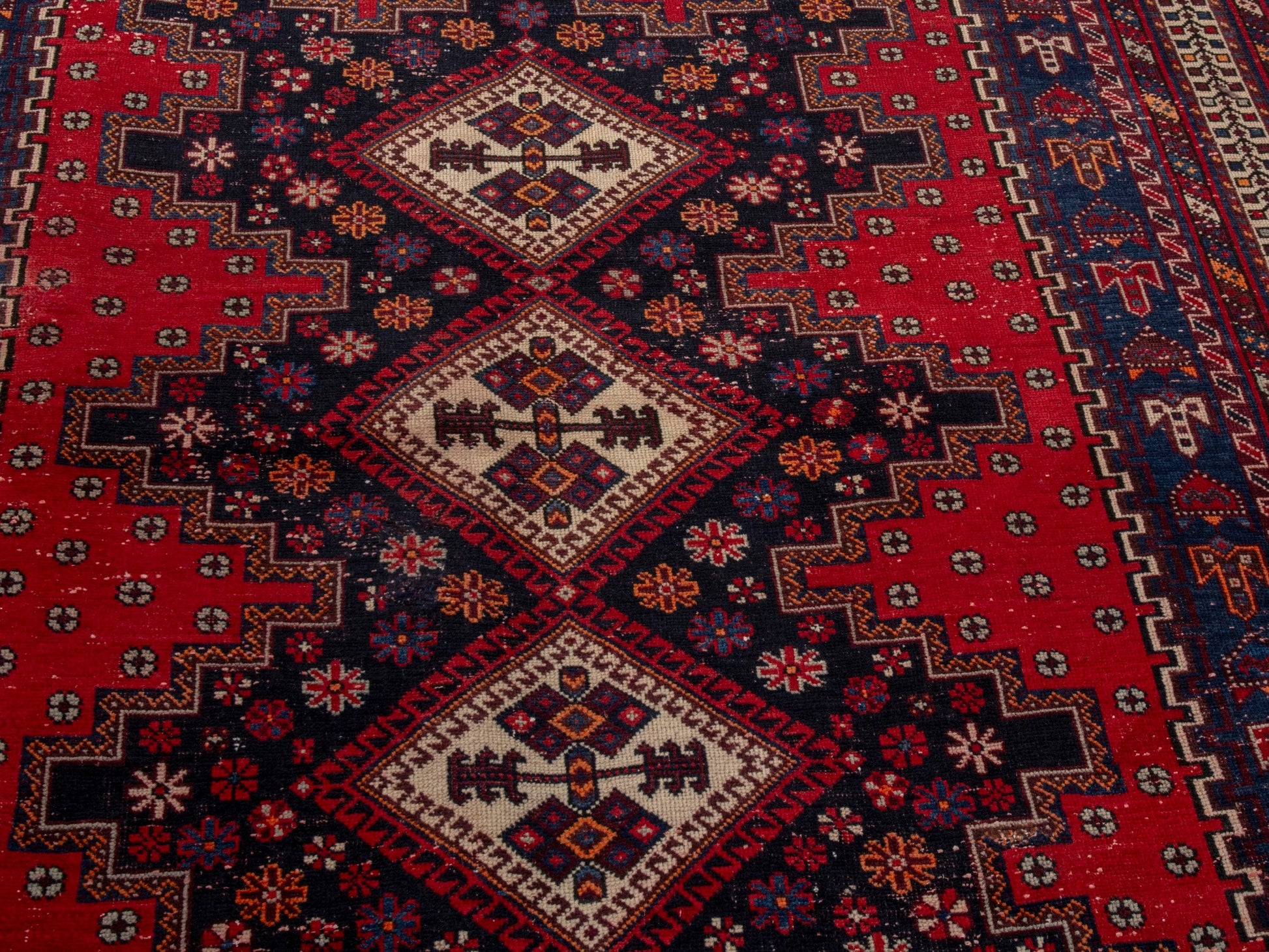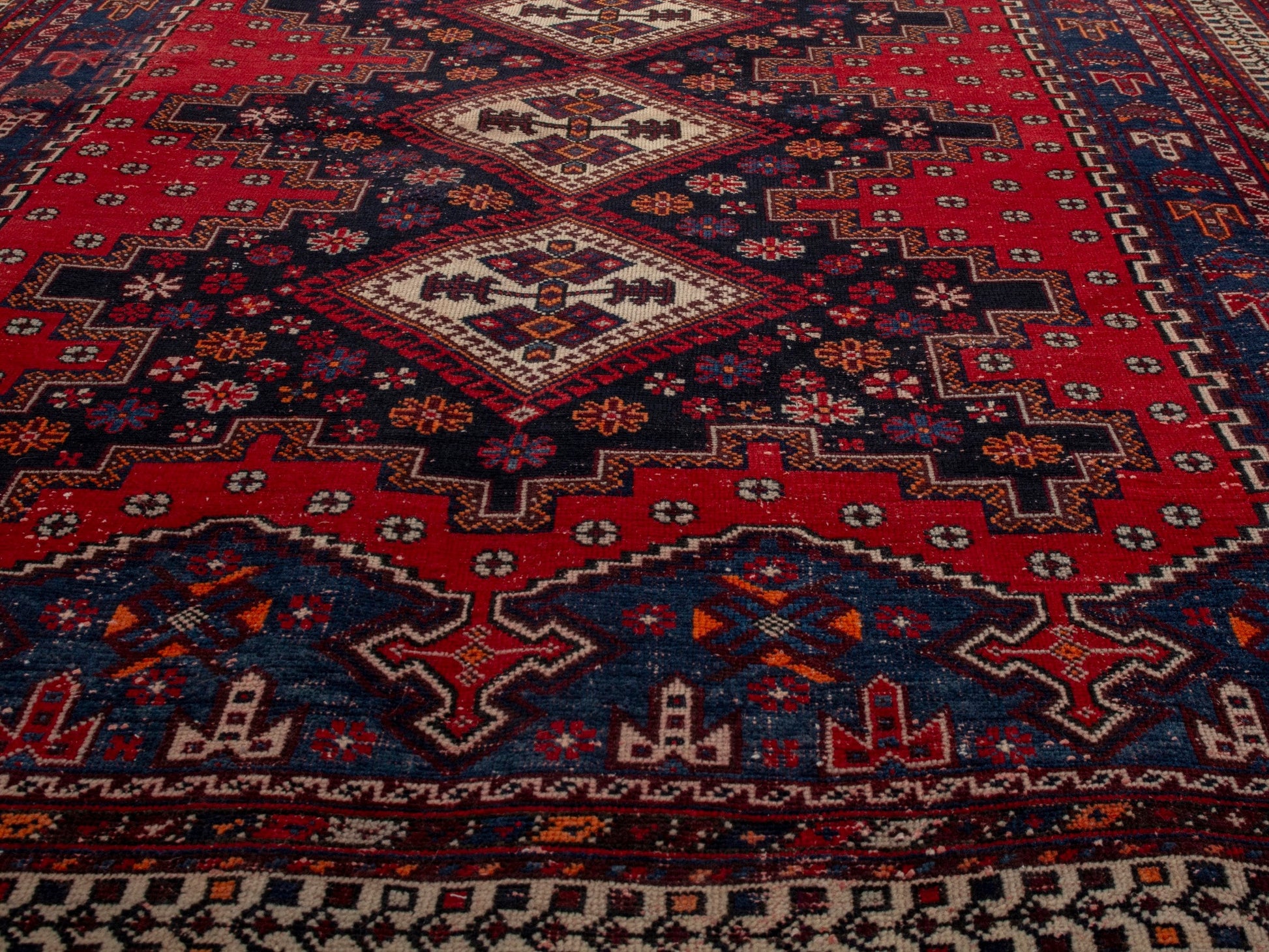 All the rugs we sell are professionally washed and cleaned; age-related wear and natural inconsistencies are inherent in these unique, handcrafted vintage rugs.