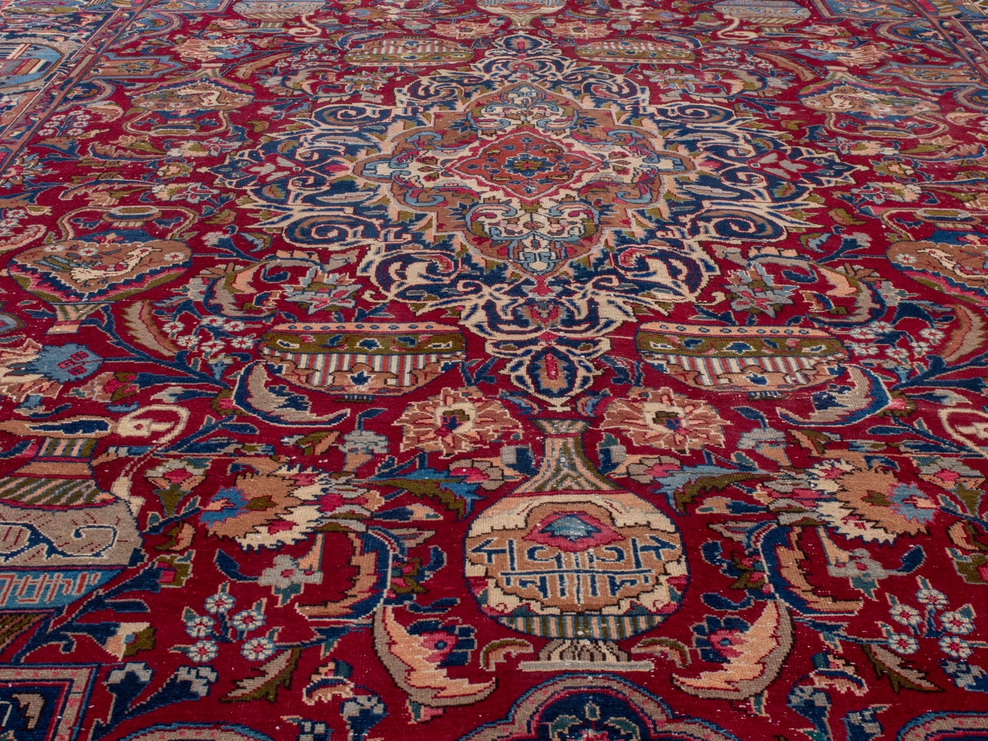 All the rugs we sell are professionally washed and cleaned; age-related wear and natural inconsistencies are inherent in these unique, handcrafted vintage rugs.