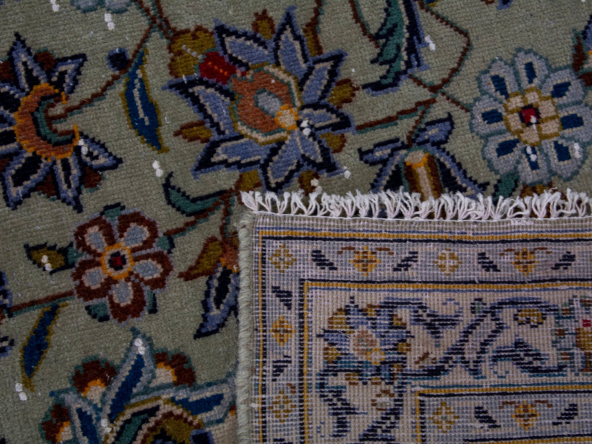 This rug is a hand-knotted rug, and edges are hand sewn.