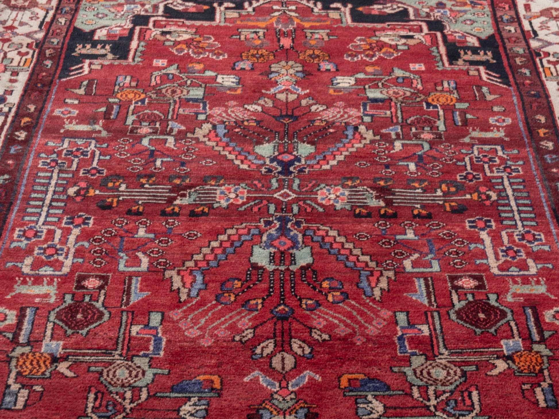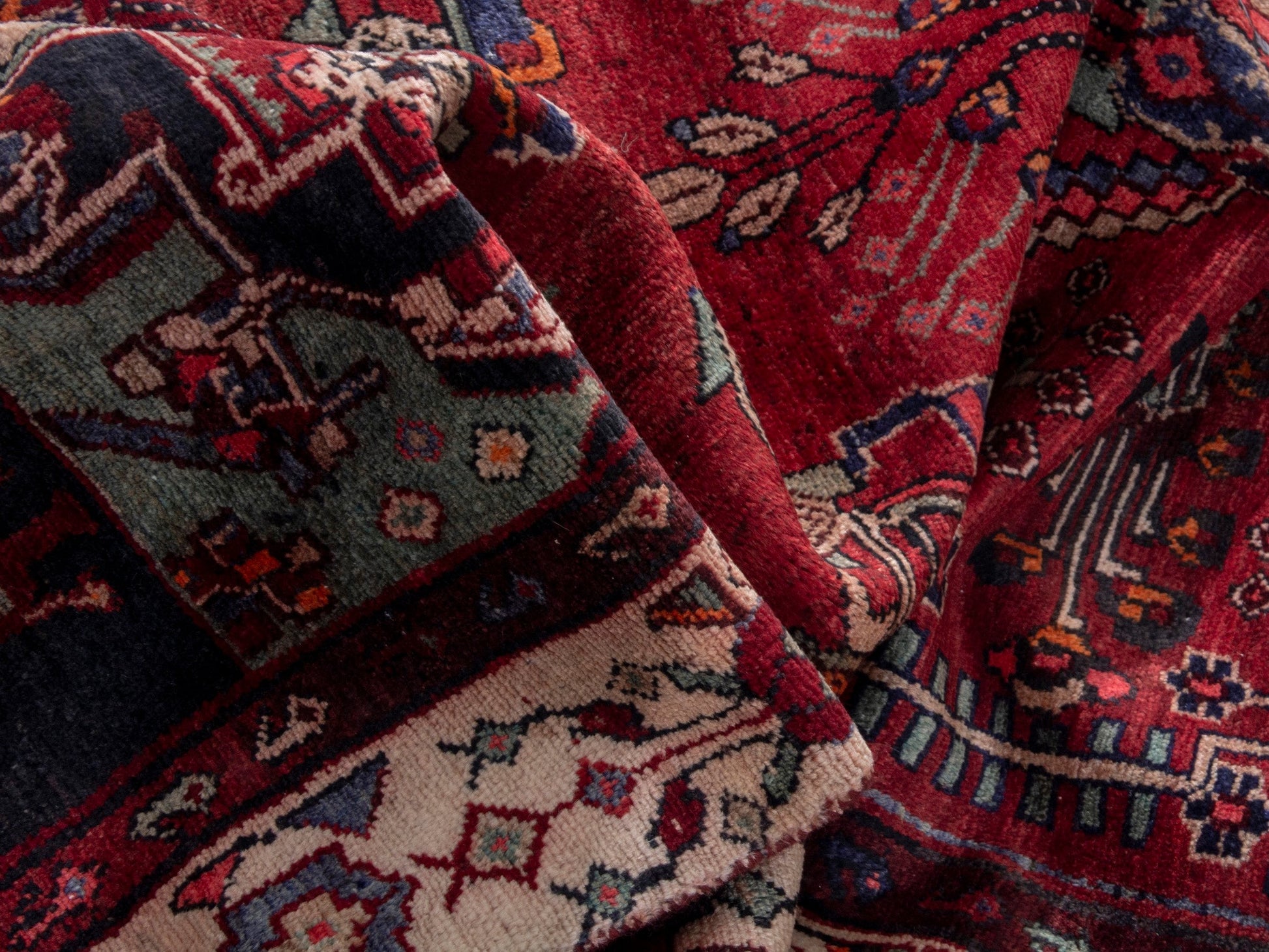 All the rugs we sell are professionally washed and cleaned; age-related wear and natural inconsistencies are inherent in these unique, handcrafted vintage rugs.