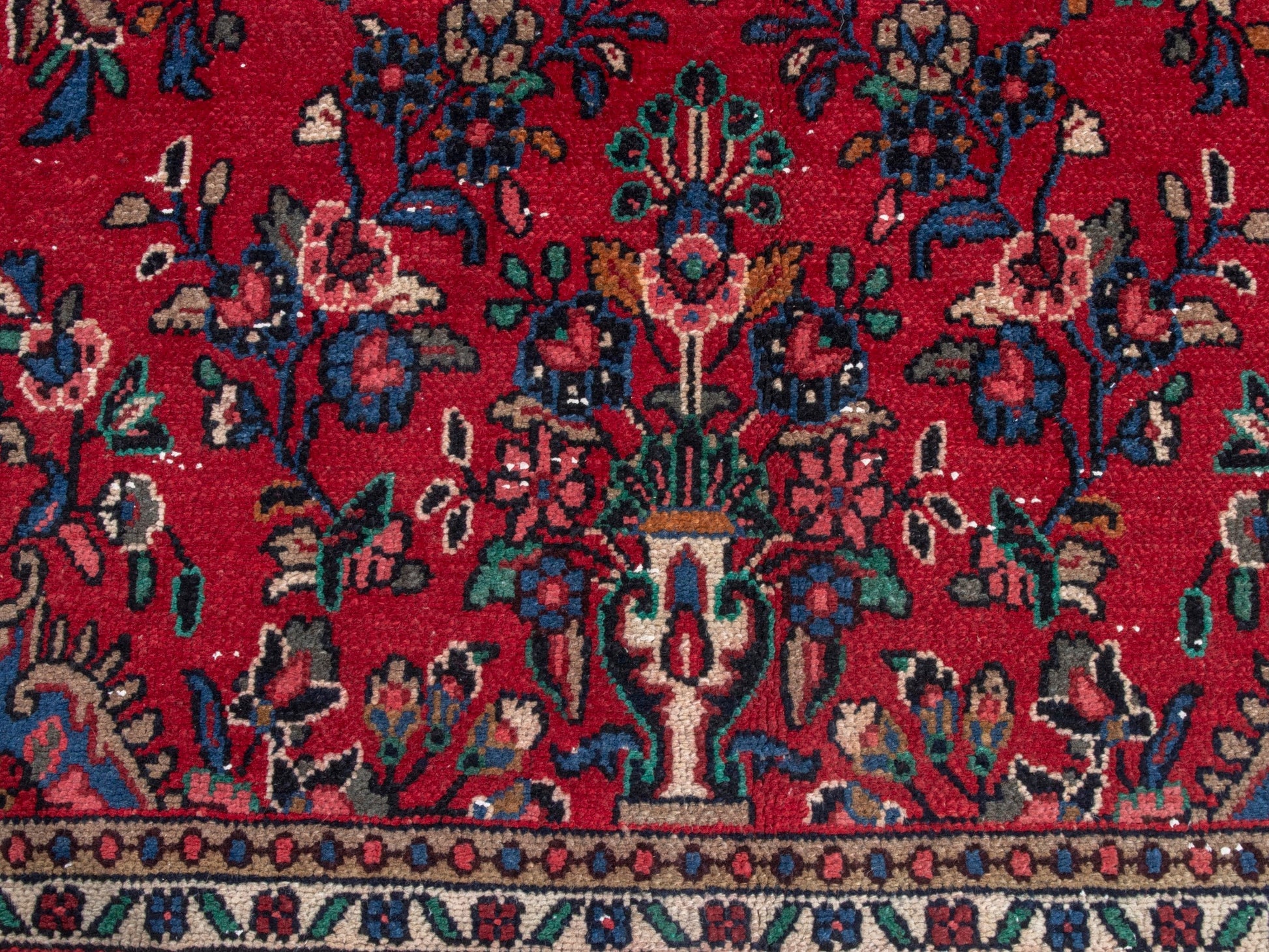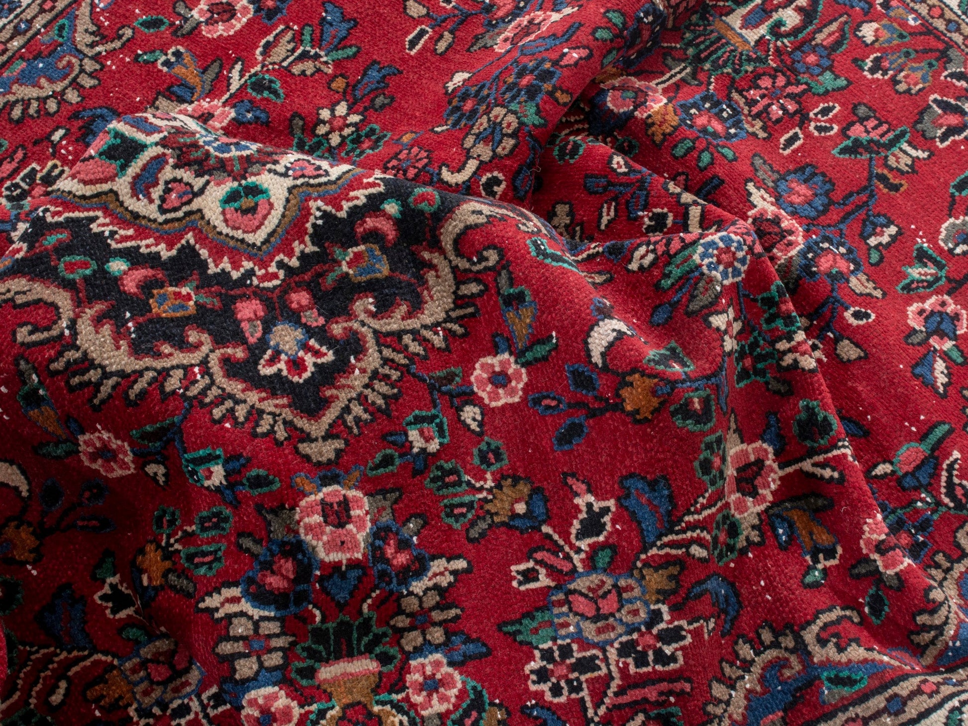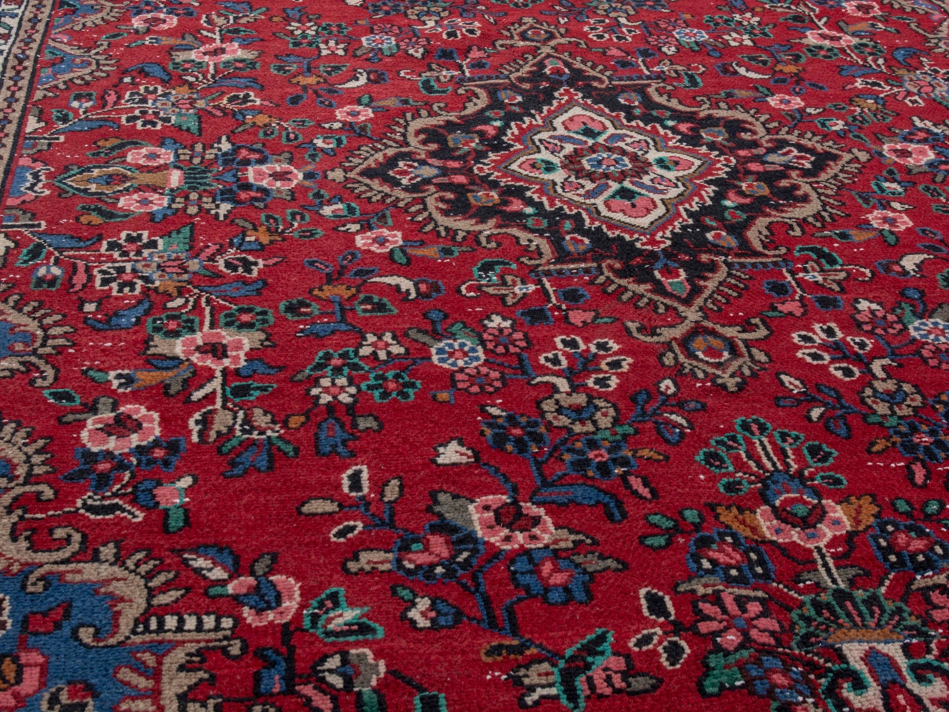 All the rugs we sell are professionally washed and cleaned; age-related wear and natural inconsistencies are inherent in these unique, handcrafted vintage rugs.