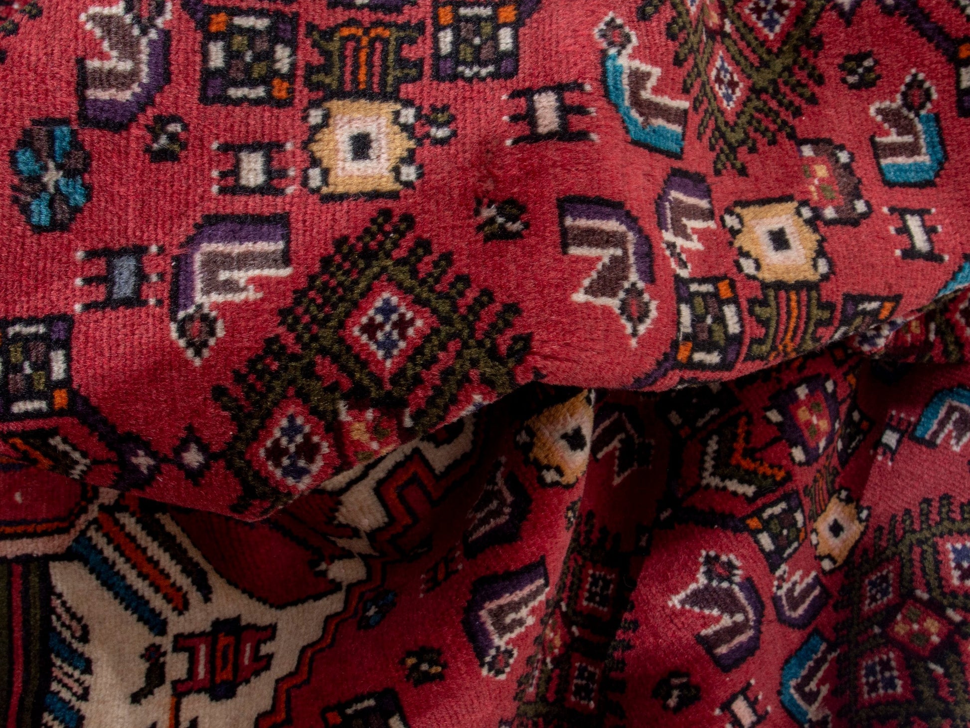 All the rugs we sell are professionally washed and cleaned; age-related wear and natural inconsistencies are inherent in these unique, handcrafted vintage rugs.