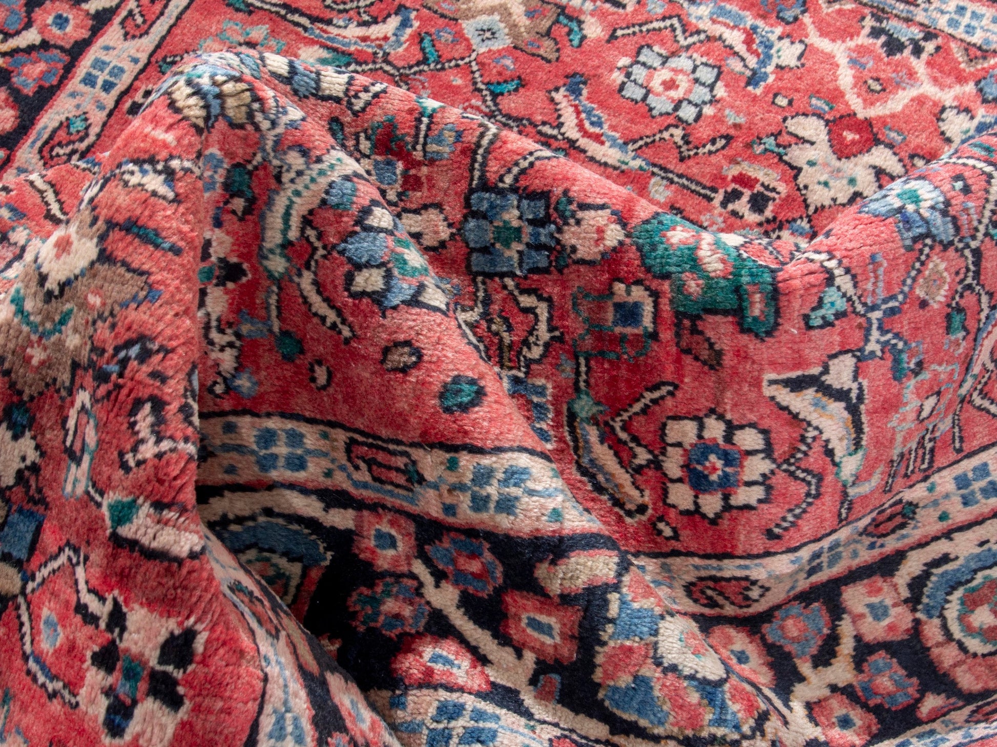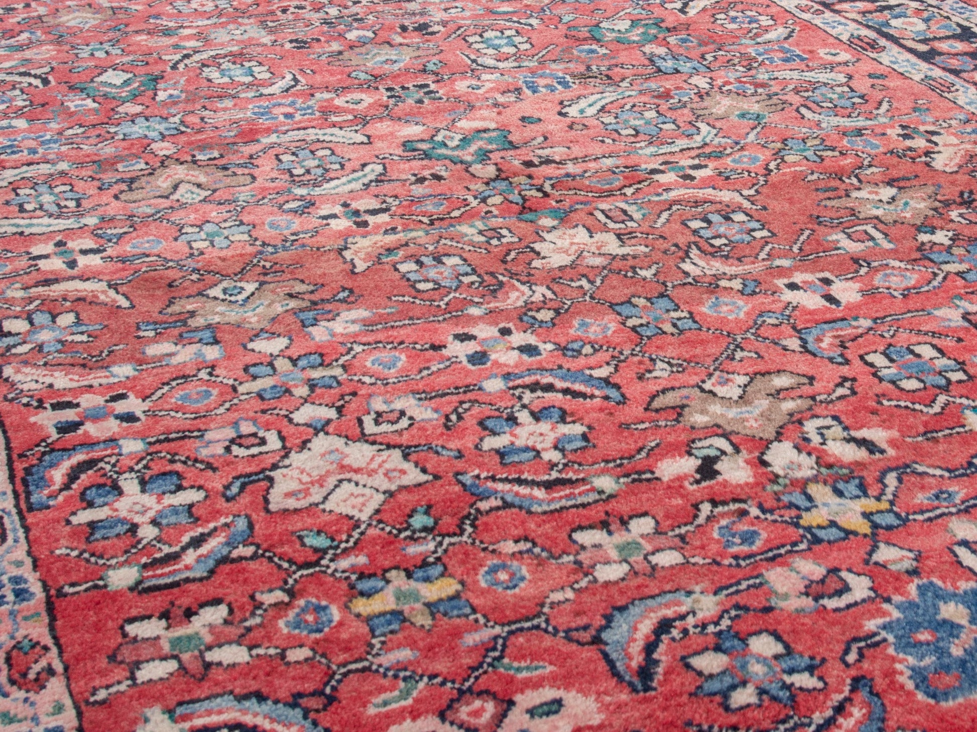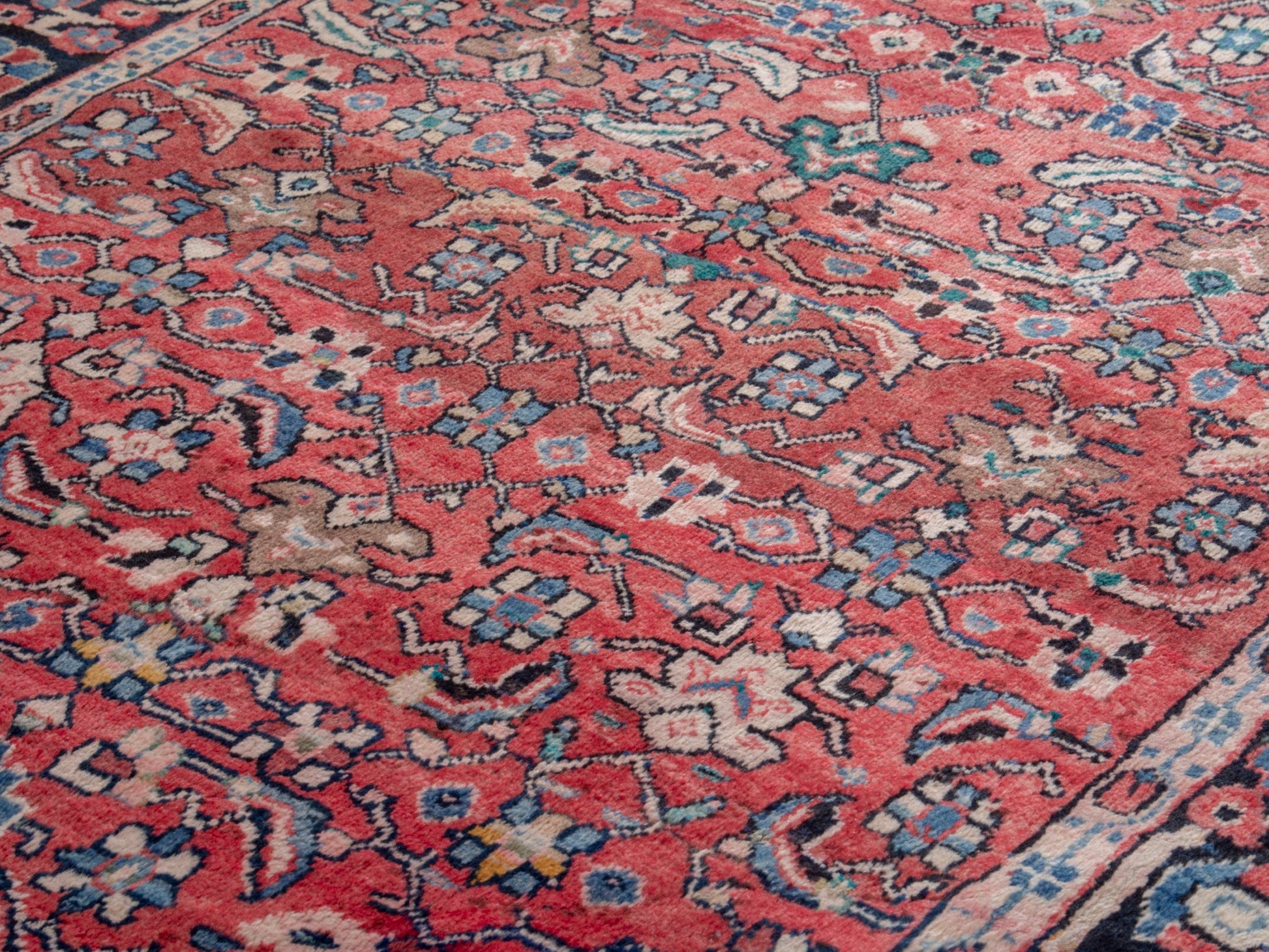 All the rugs we sell are professionally washed and cleaned; age-related wear and natural inconsistencies are inherent in these unique, handcrafted vintage rugs.
