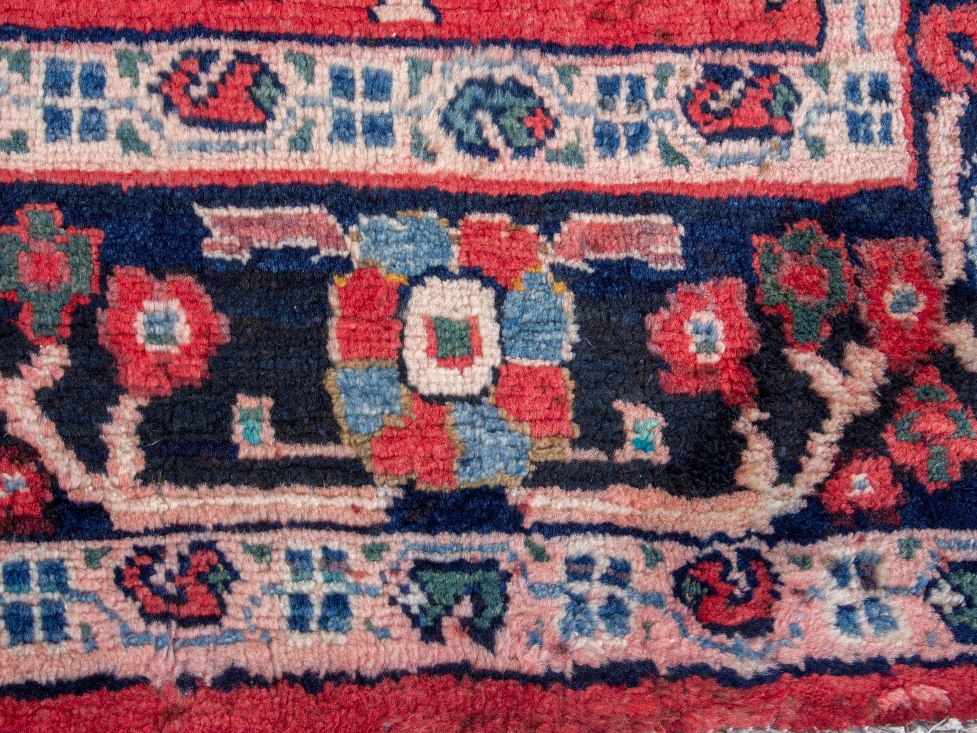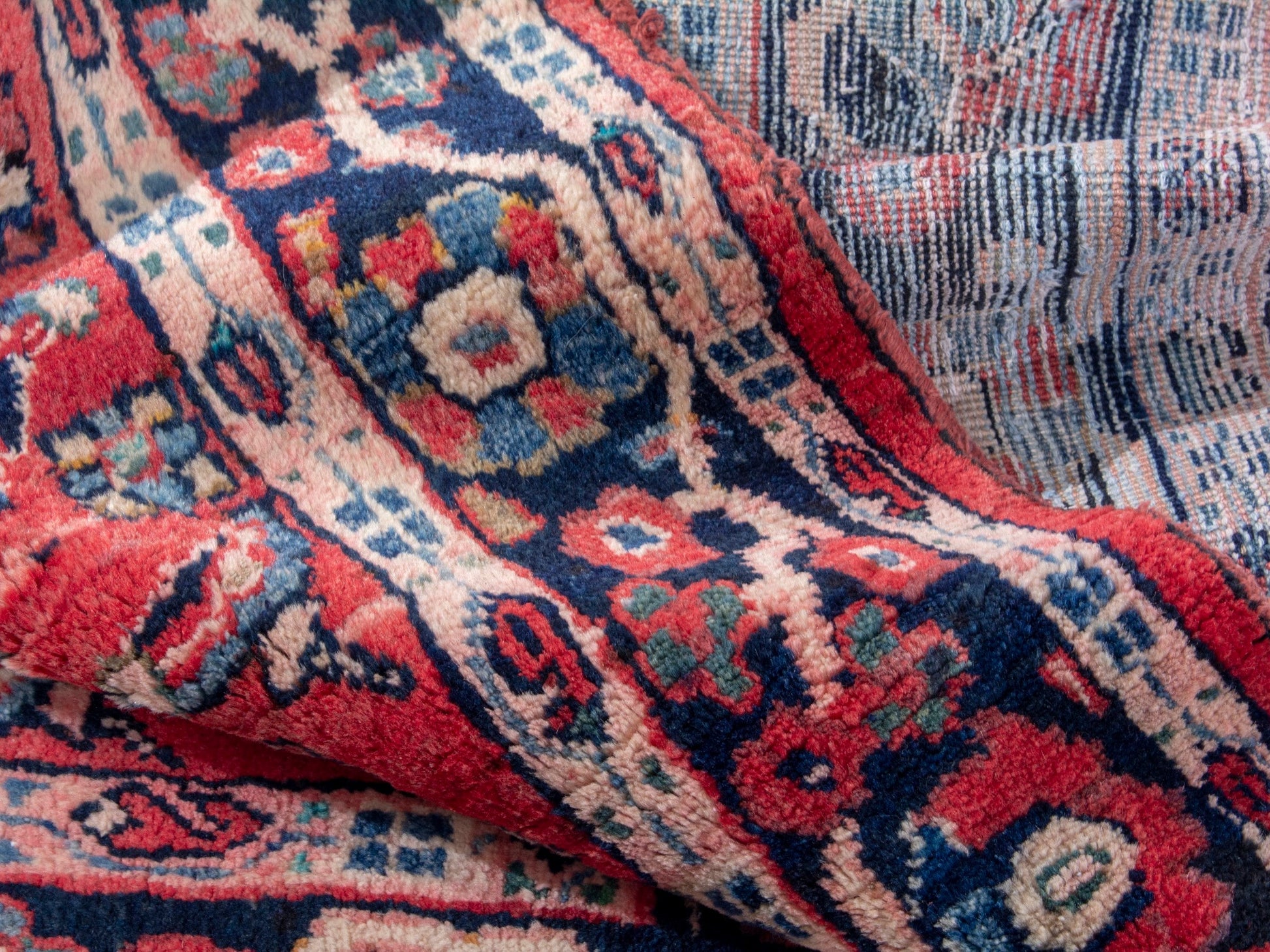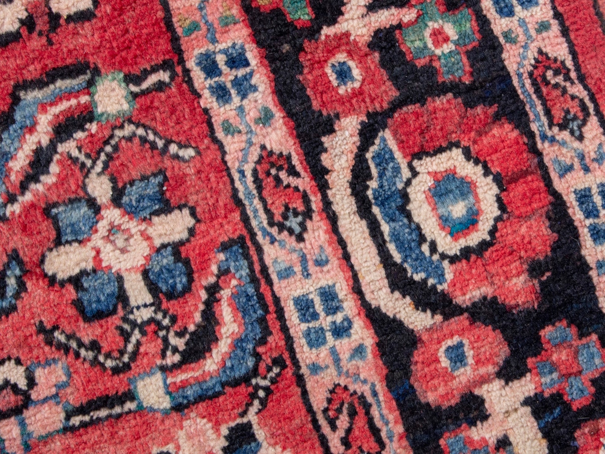 All the rugs we sell are professionally washed and cleaned; age-related wear and natural inconsistencies are inherent in these unique, handcrafted vintage rugs.