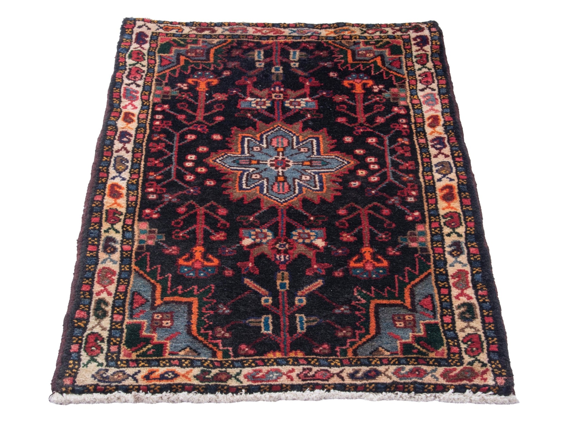 All the rugs we sell are professionally washed and cleaned; age-related wear and natural inconsistencies are inherent in these unique, handcrafted vintage rugs.