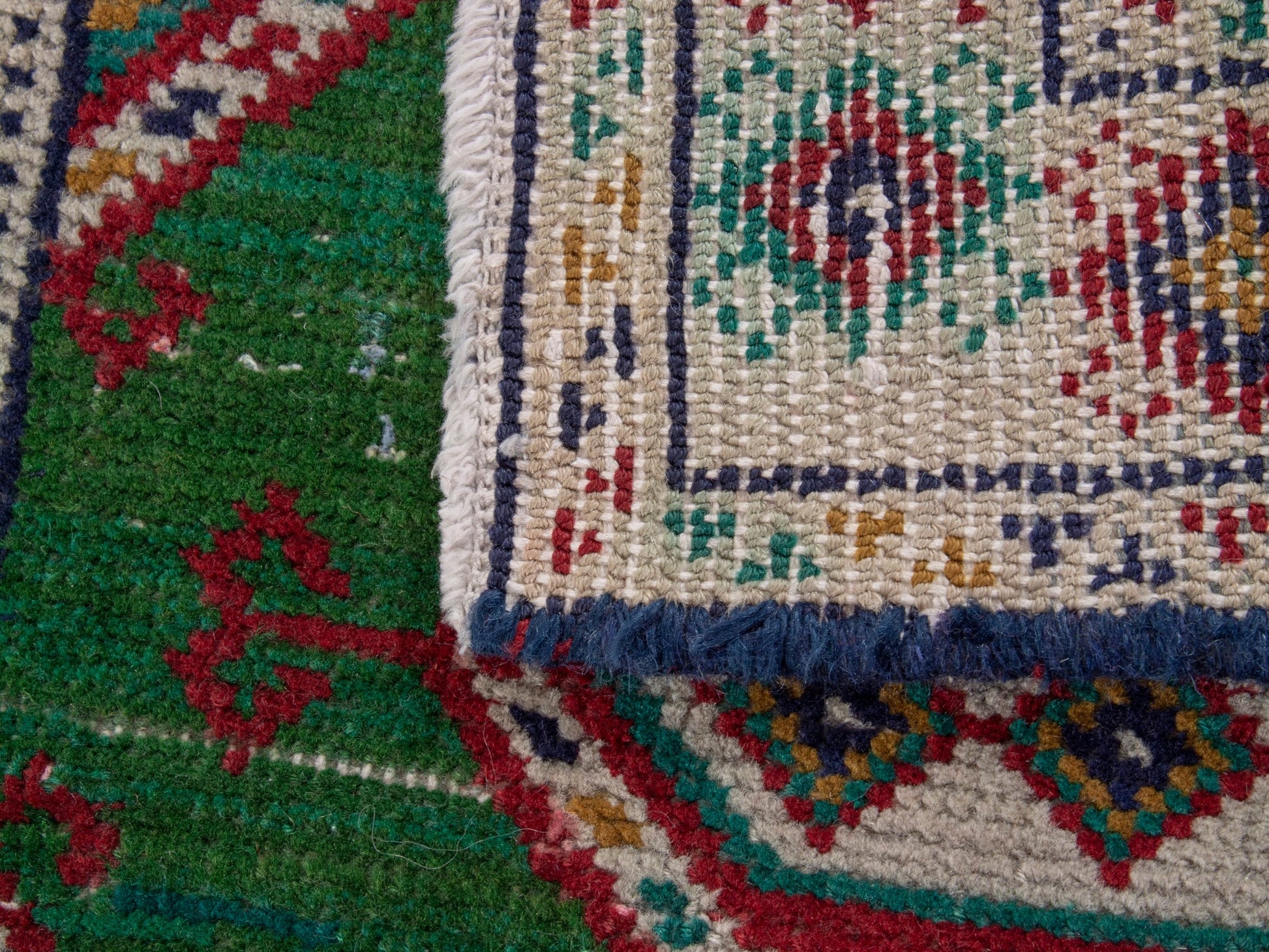 All the rugs we sell are professionally washed and cleaned; age-related wear and natural inconsistencies are inherent in these unique, handcrafted vintage rugs.