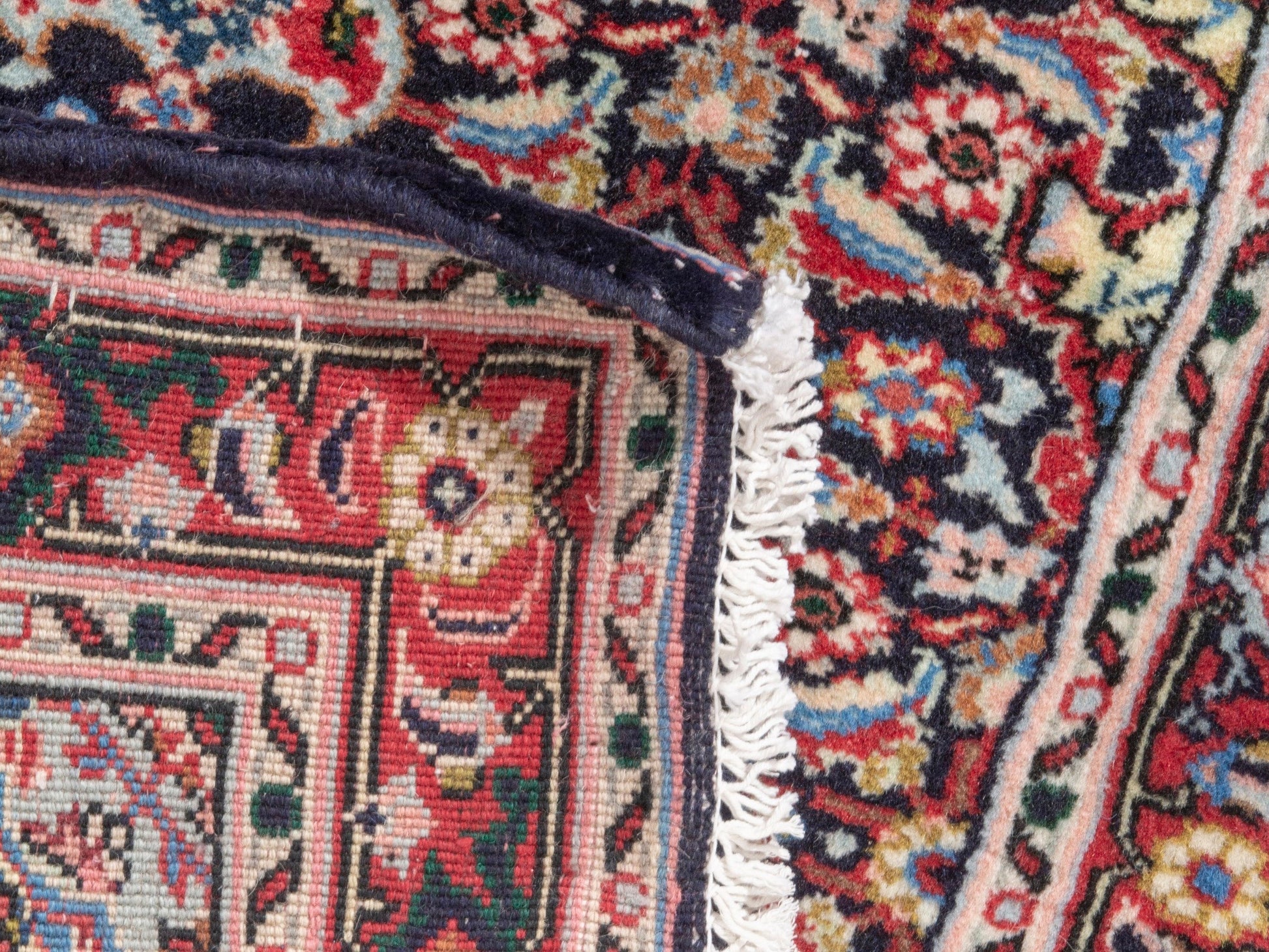 This rug is a hand-knotted rug, and edges are hand sewn.