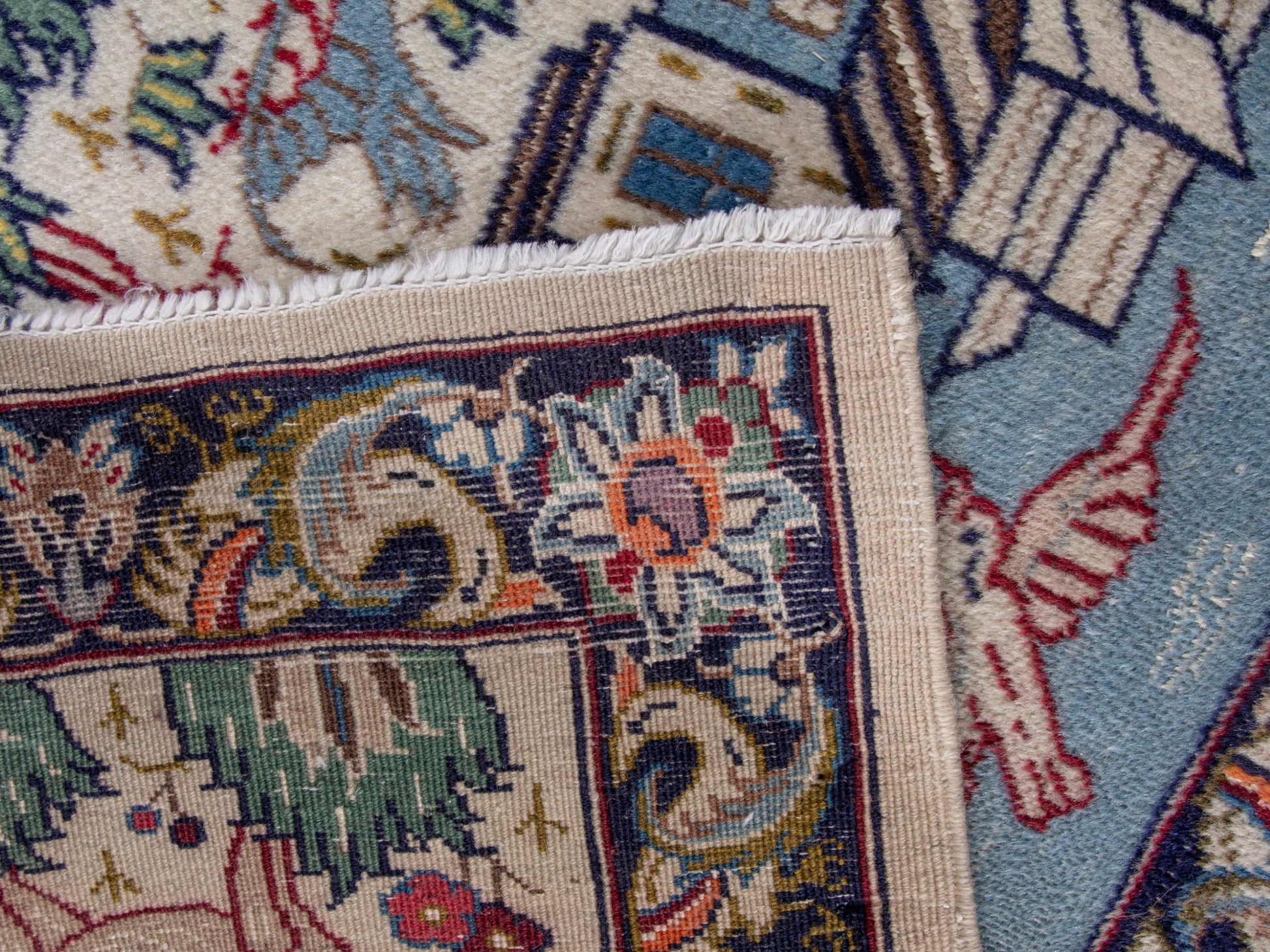 This rug is a hand-knotted rug, and edges are hand sewn.