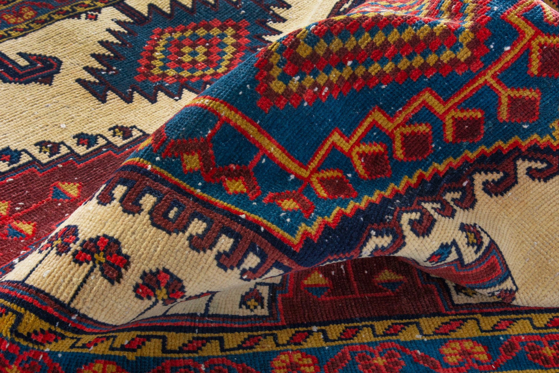 Expose your rug to direct sunlight once a year for a few hours on each side. This natural sun-bleaching sanitizes and deodorizes the wool. Rotate your rug periodically to promote even wear. Flipping it over for short periods can also help, as many handwoven rugs have beautiful undersides.