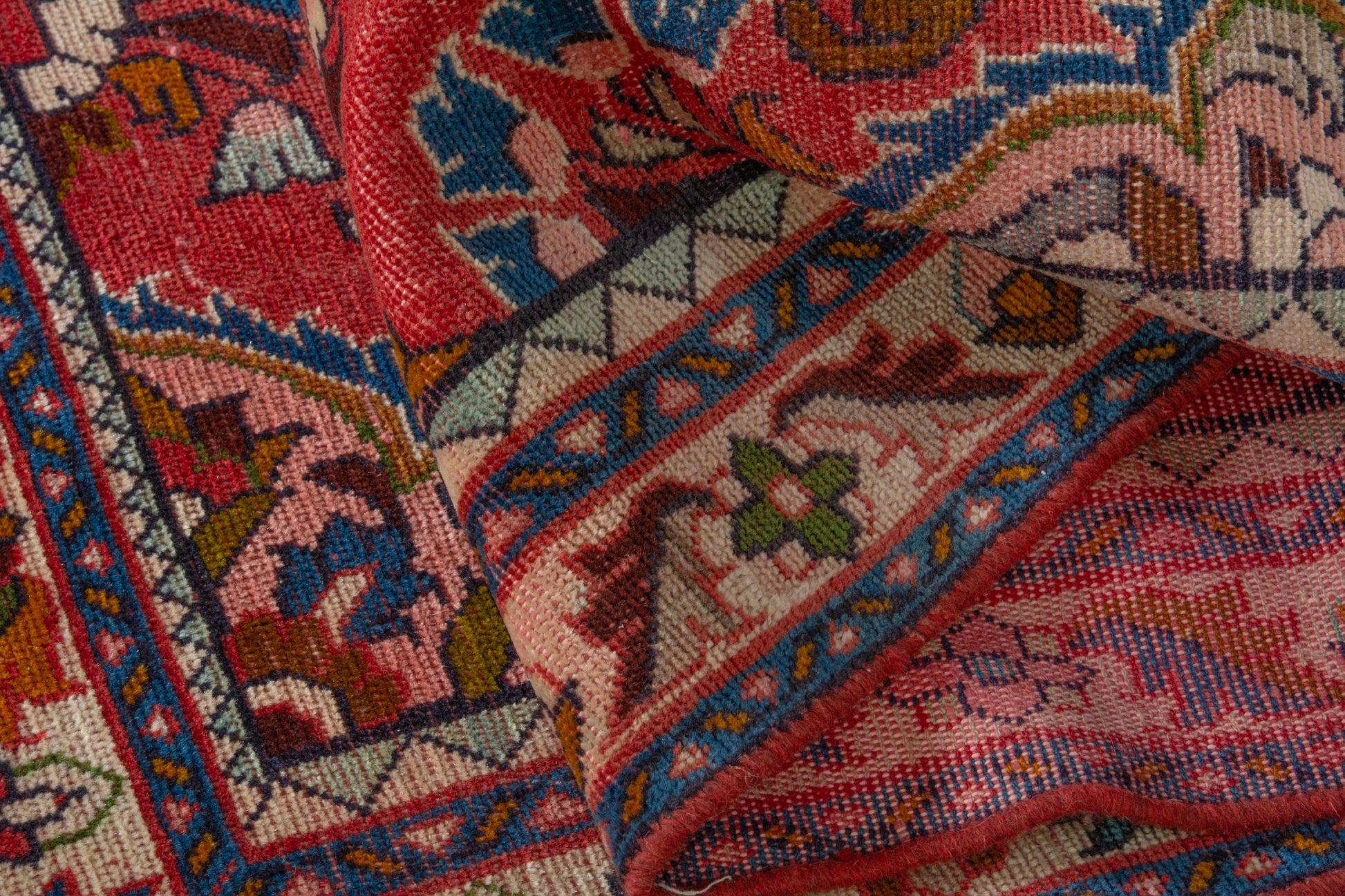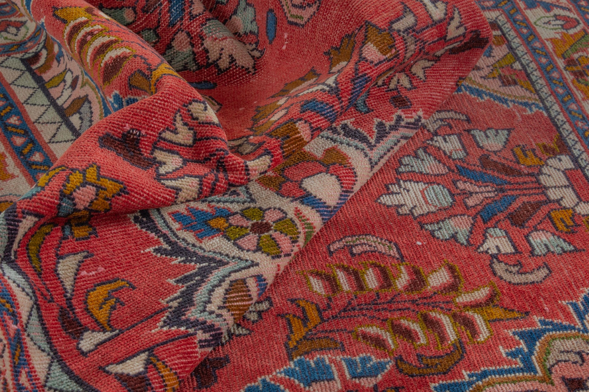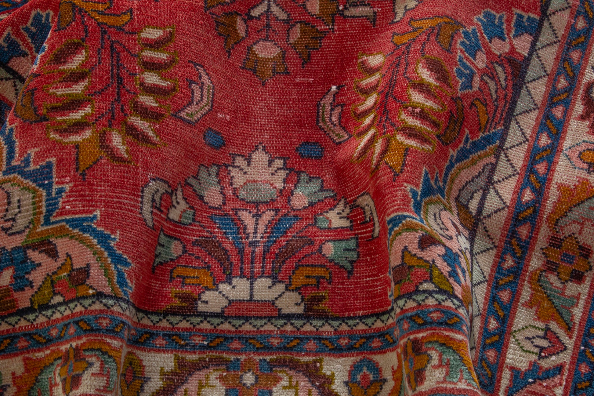 All the rugs we sell are professionally washed and cleaned; age-related wear and natural inconsistencies are inherent in these unique, handcrafted vintage rugs.