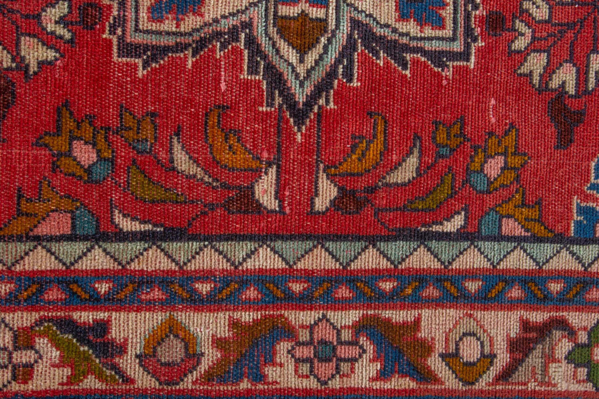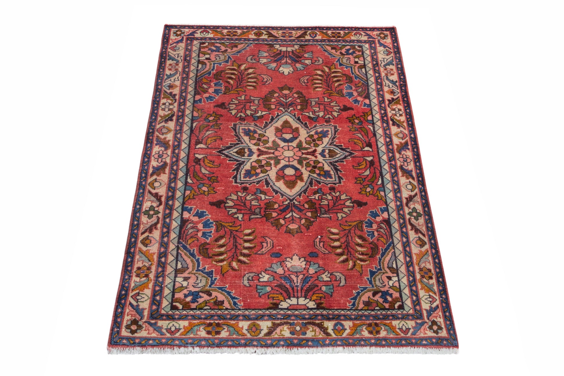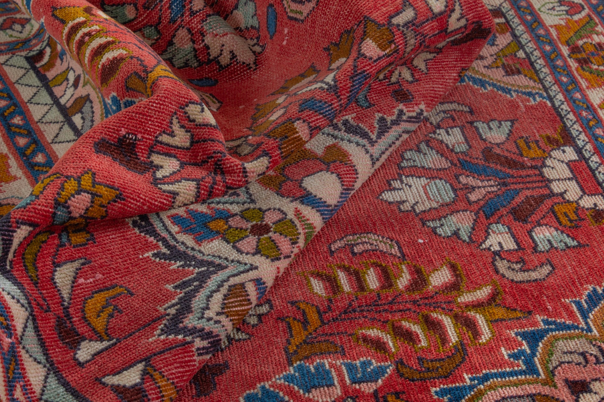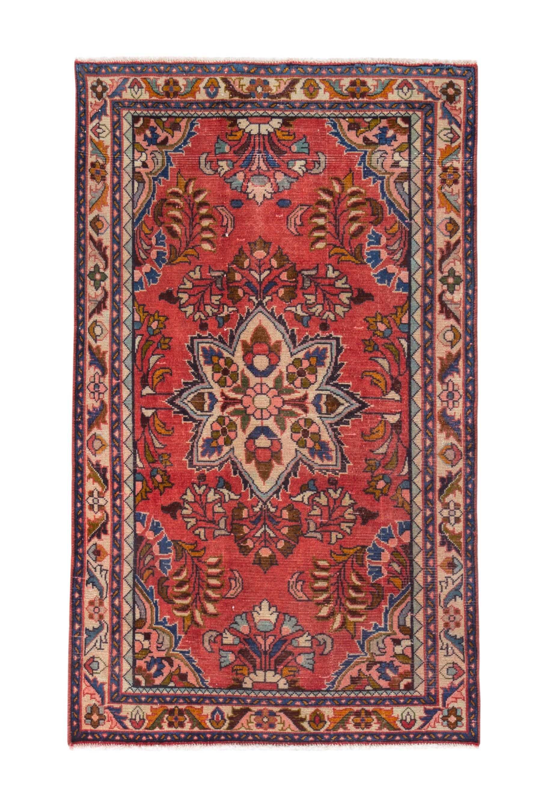 All the rugs we sell are professionally washed and cleaned; age-related wear and natural inconsistencies are inherent in these unique, handcrafted vintage rugs.