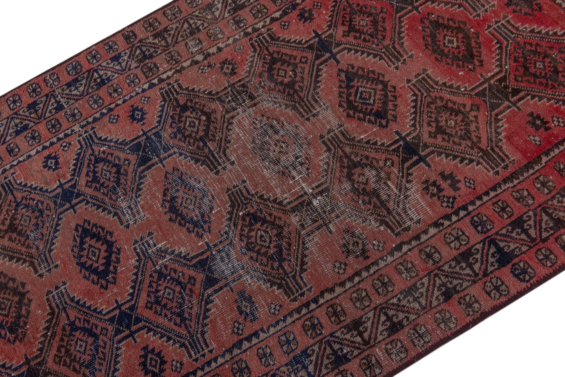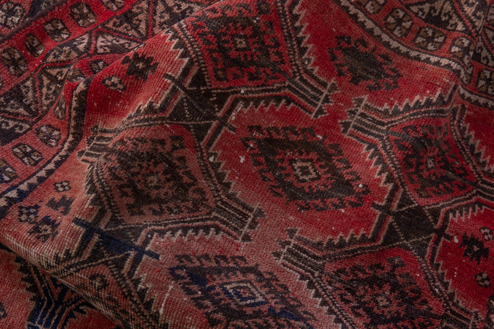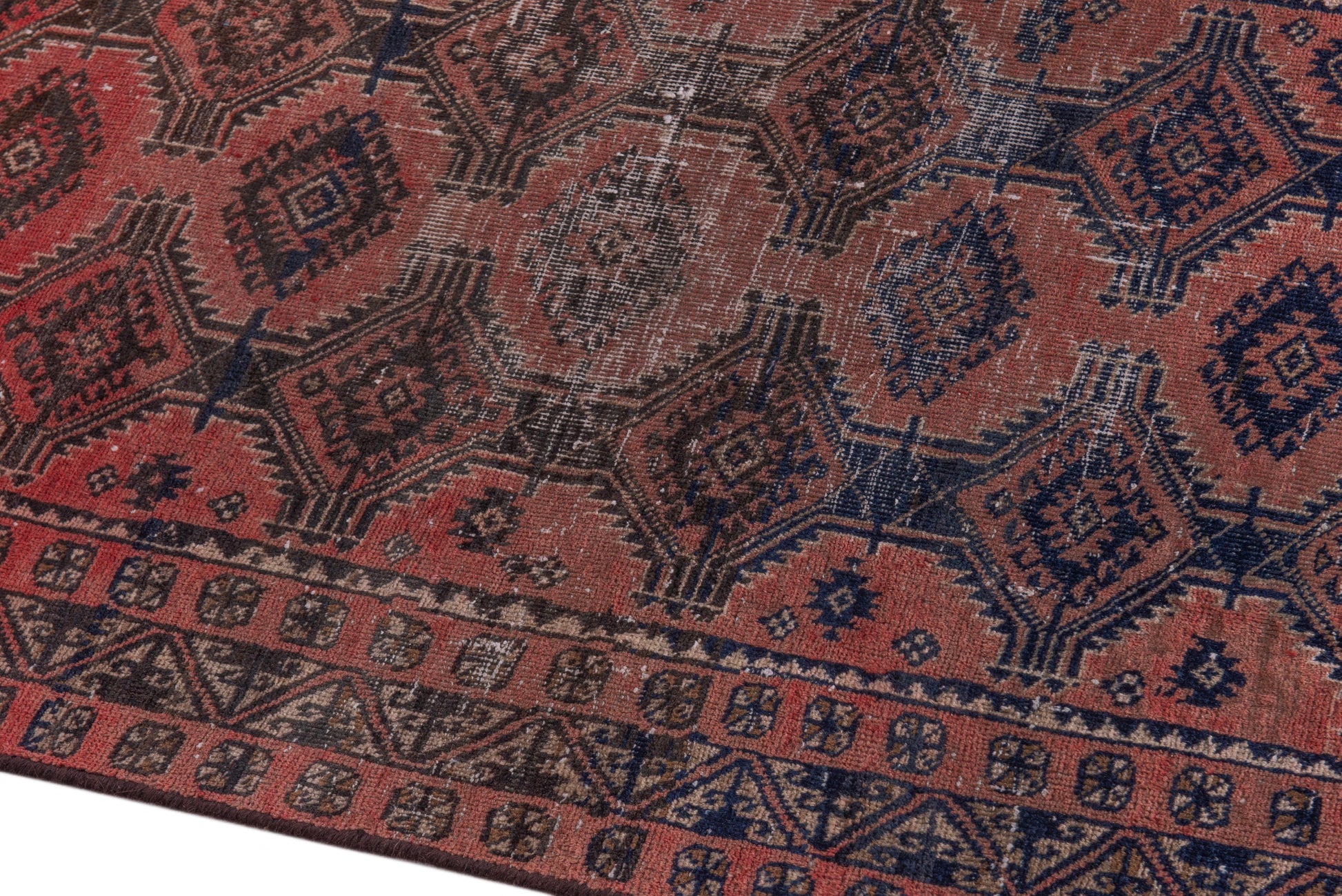All the rugs we sell are professionally washed and cleaned; age-related wear and natural inconsistencies are inherent in these unique, handcrafted vintage rugs.