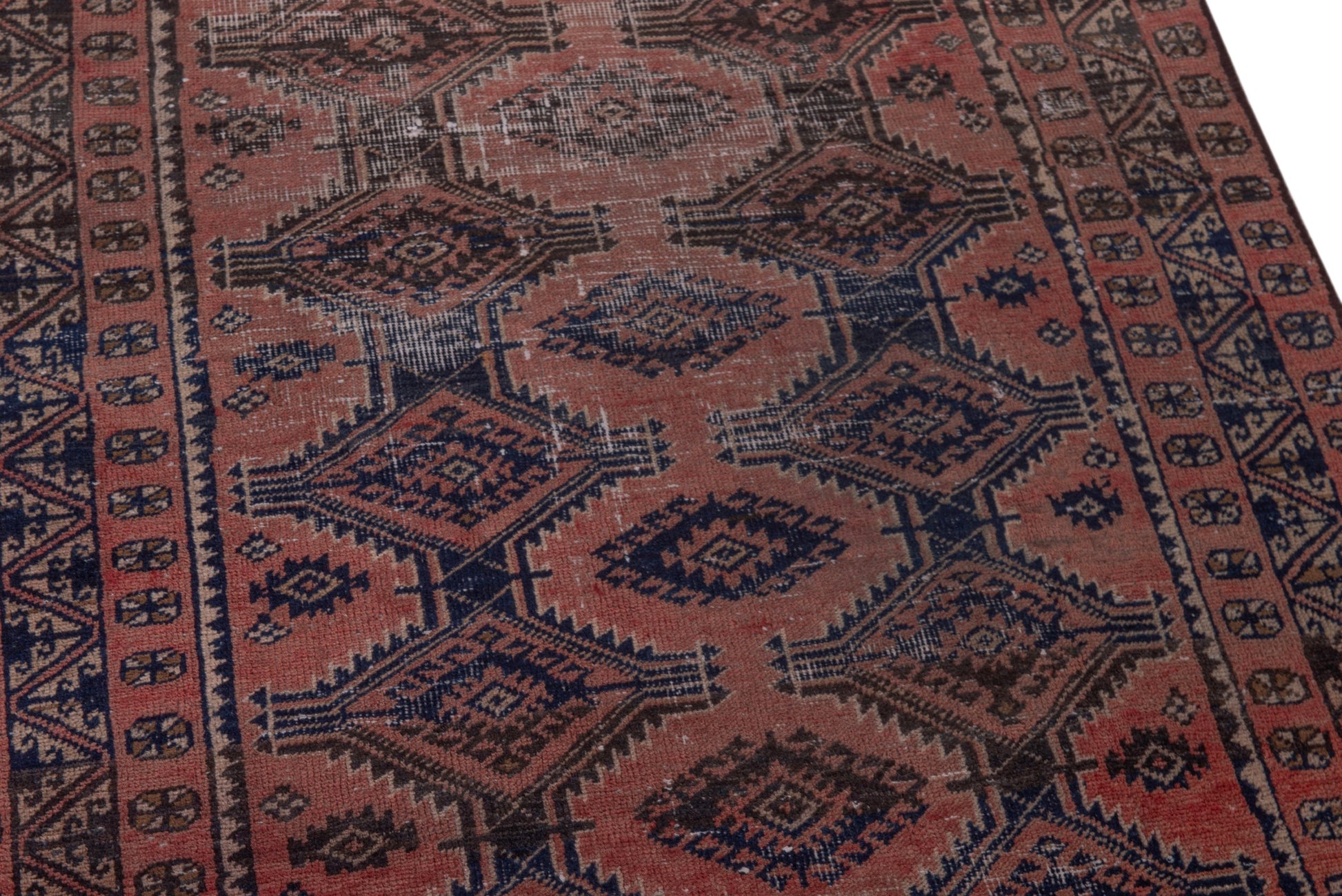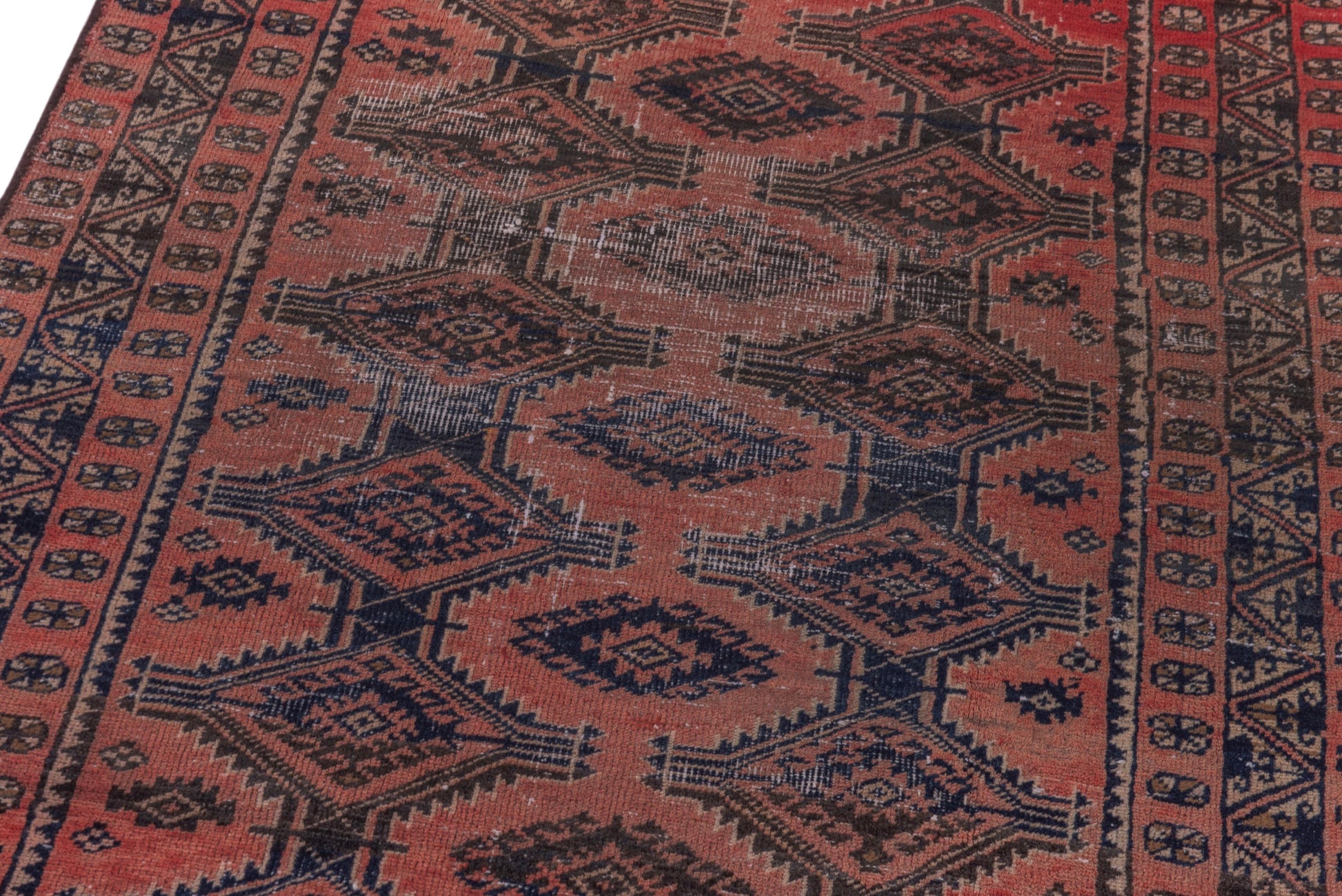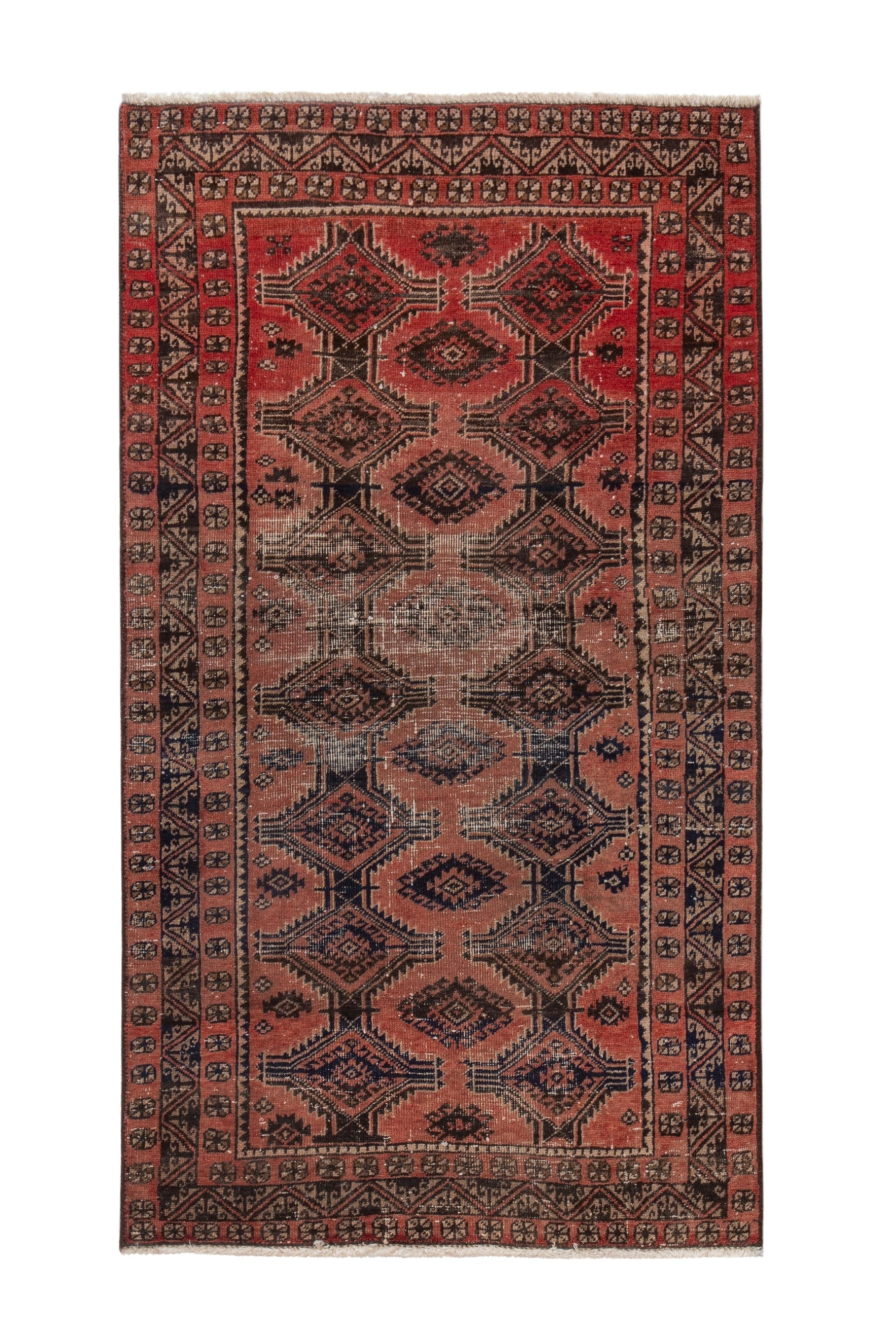 All the rugs we sell are professionally washed and cleaned; age-related wear and natural inconsistencies are inherent in these unique, handcrafted vintage rugs.
