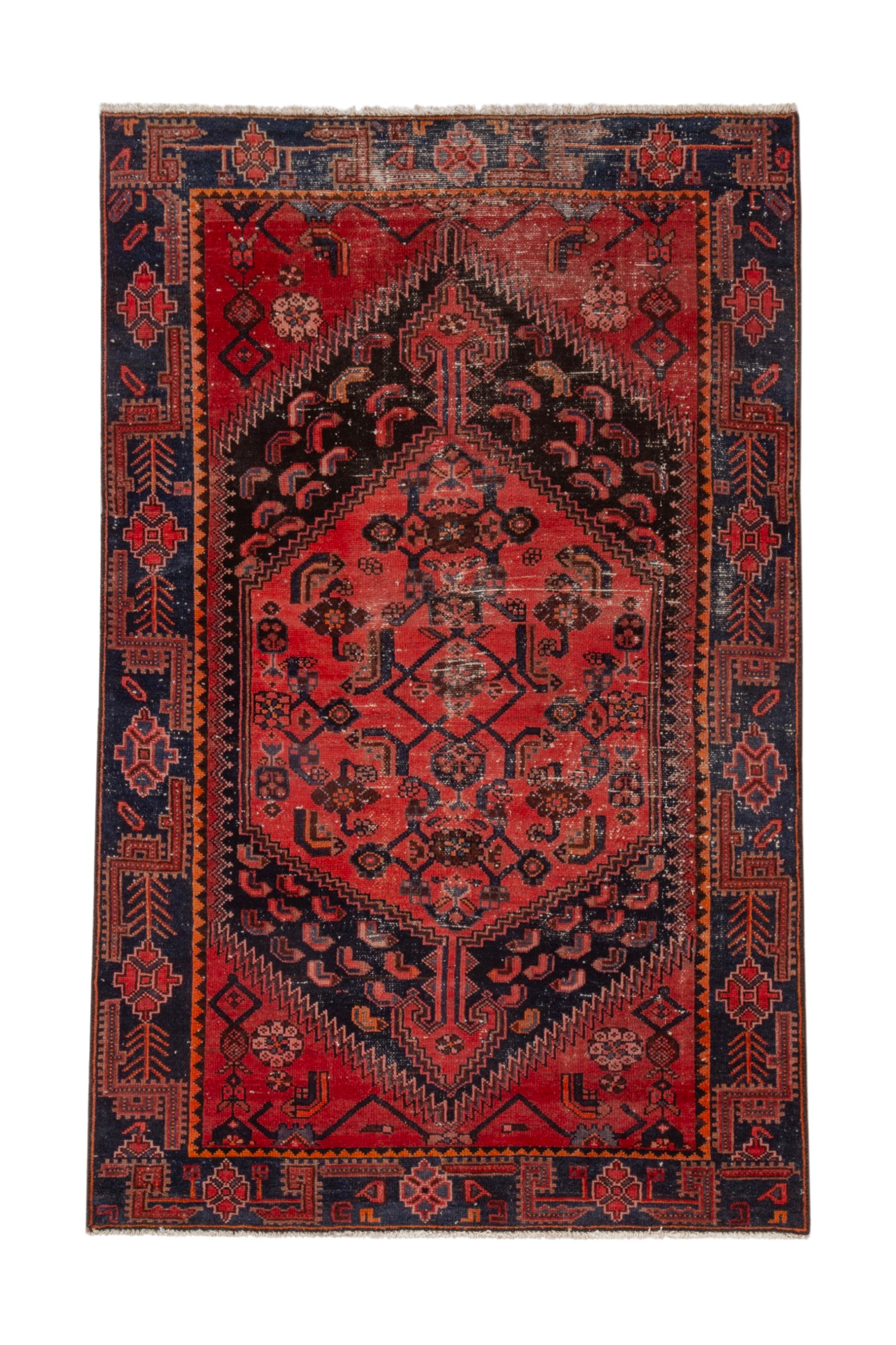 All the rugs we sell are professionally washed and cleaned; age-related wear and natural inconsistencies are inherent in these unique, handcrafted vintage rugs.