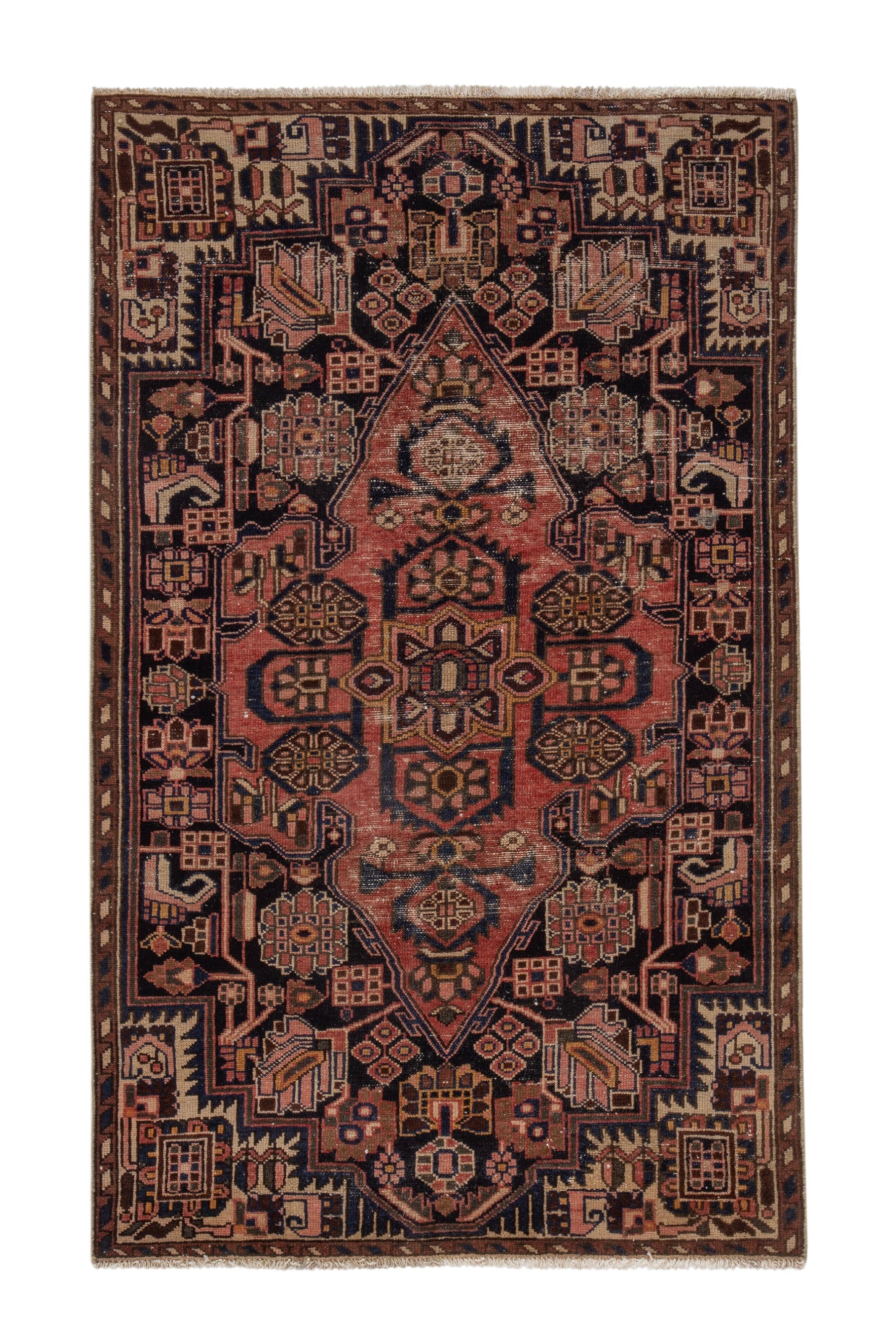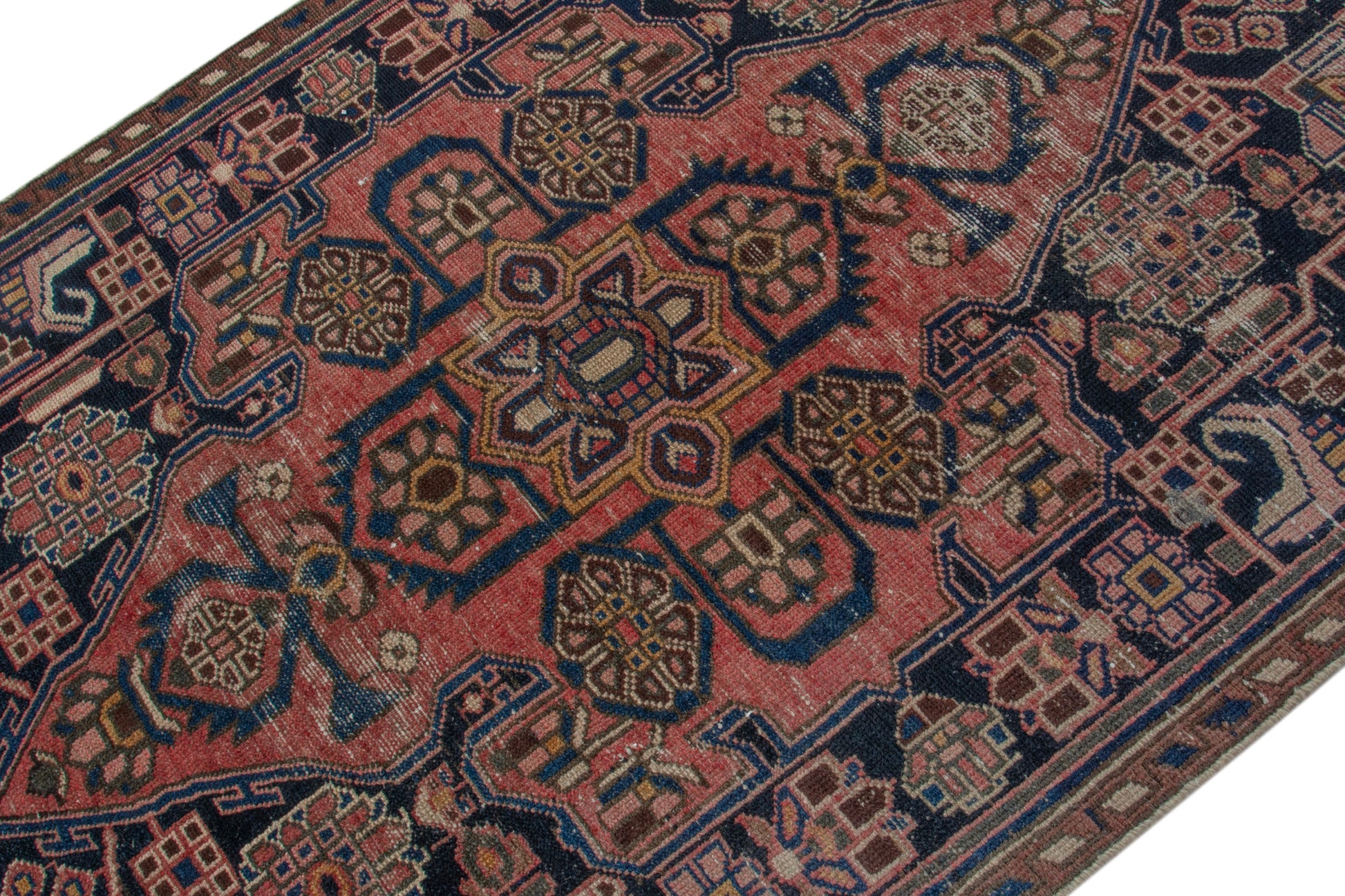 All the rugs we sell are professionally washed and cleaned; age-related wear and natural inconsistencies are inherent in these unique, handcrafted vintage rugs.