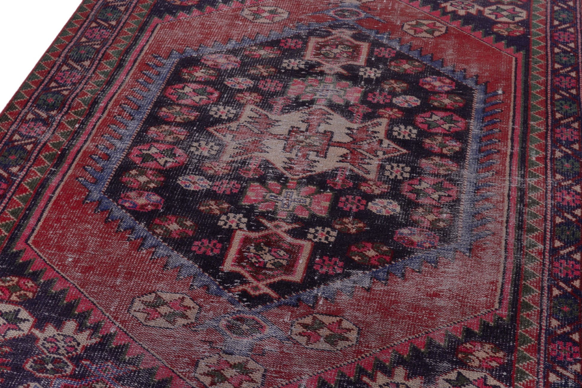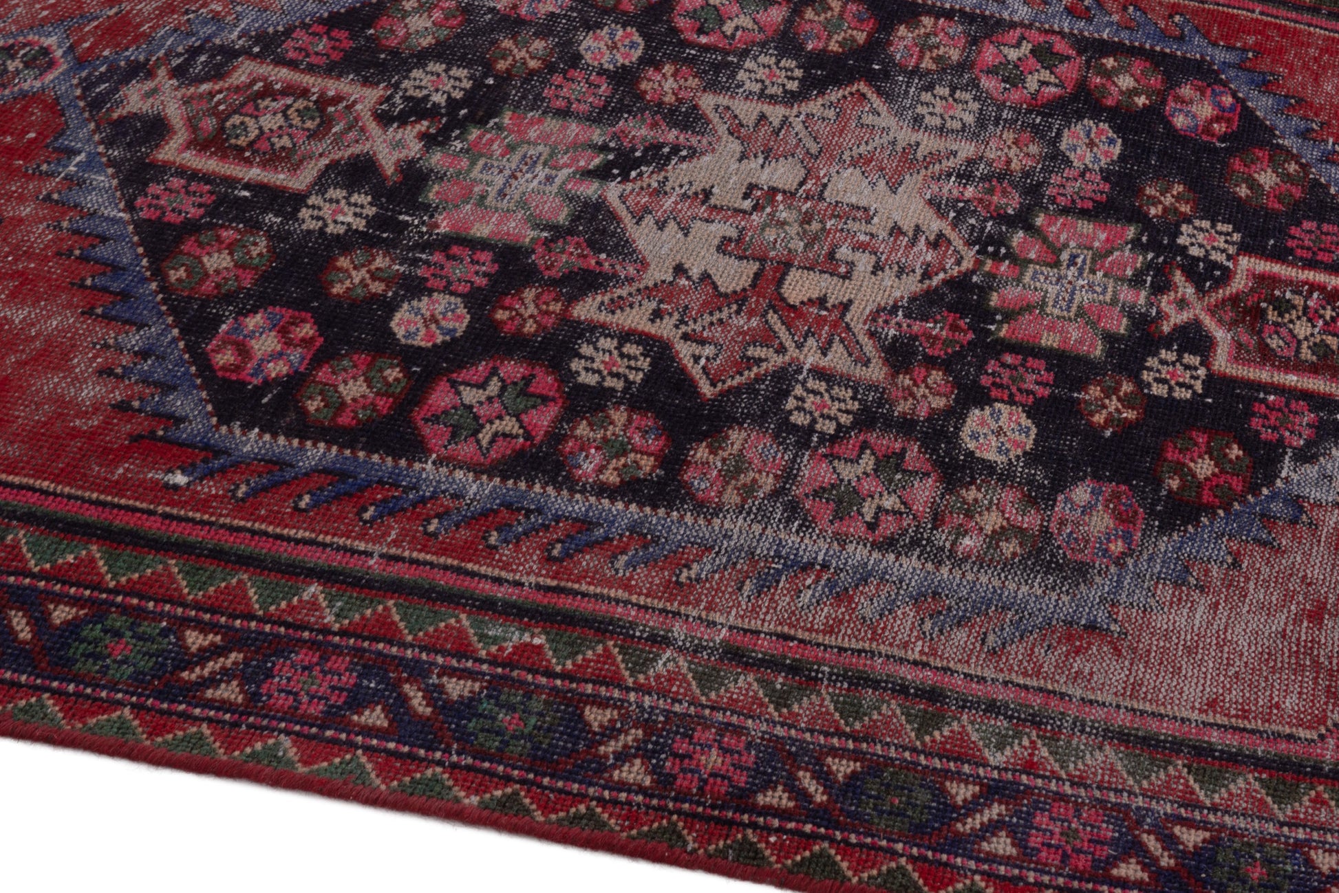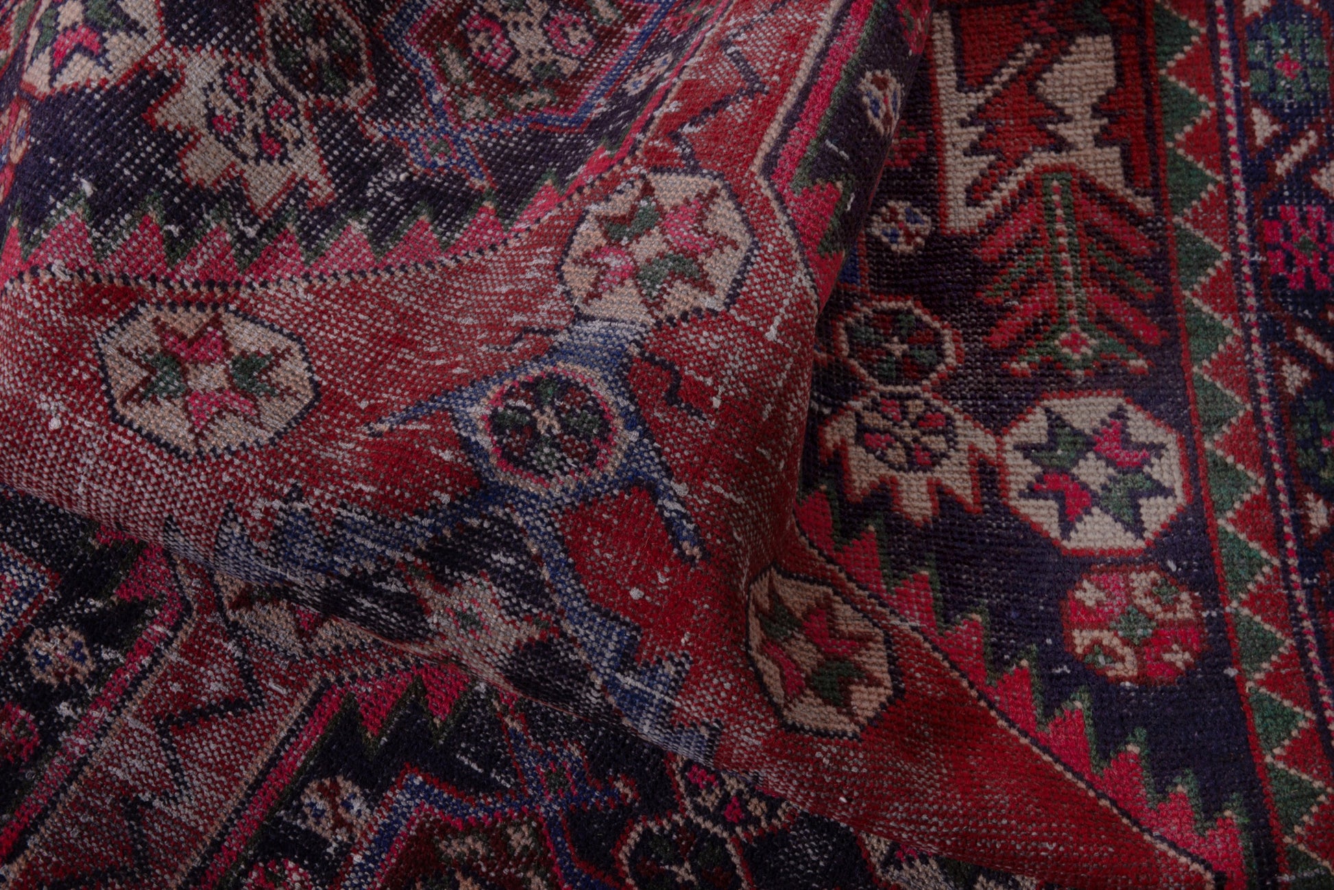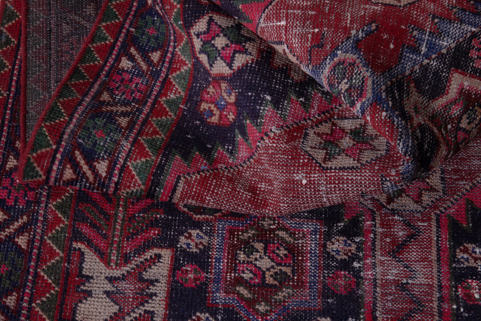 All the rugs we sell are professionally washed and cleaned; age-related wear and natural inconsistencies are inherent in these unique, handcrafted vintage rugs.