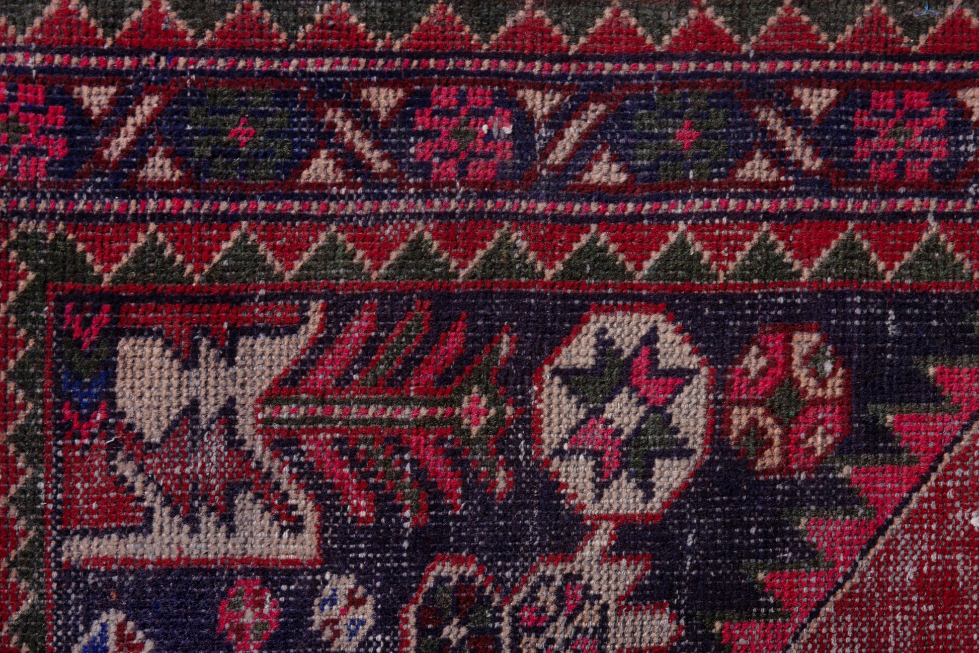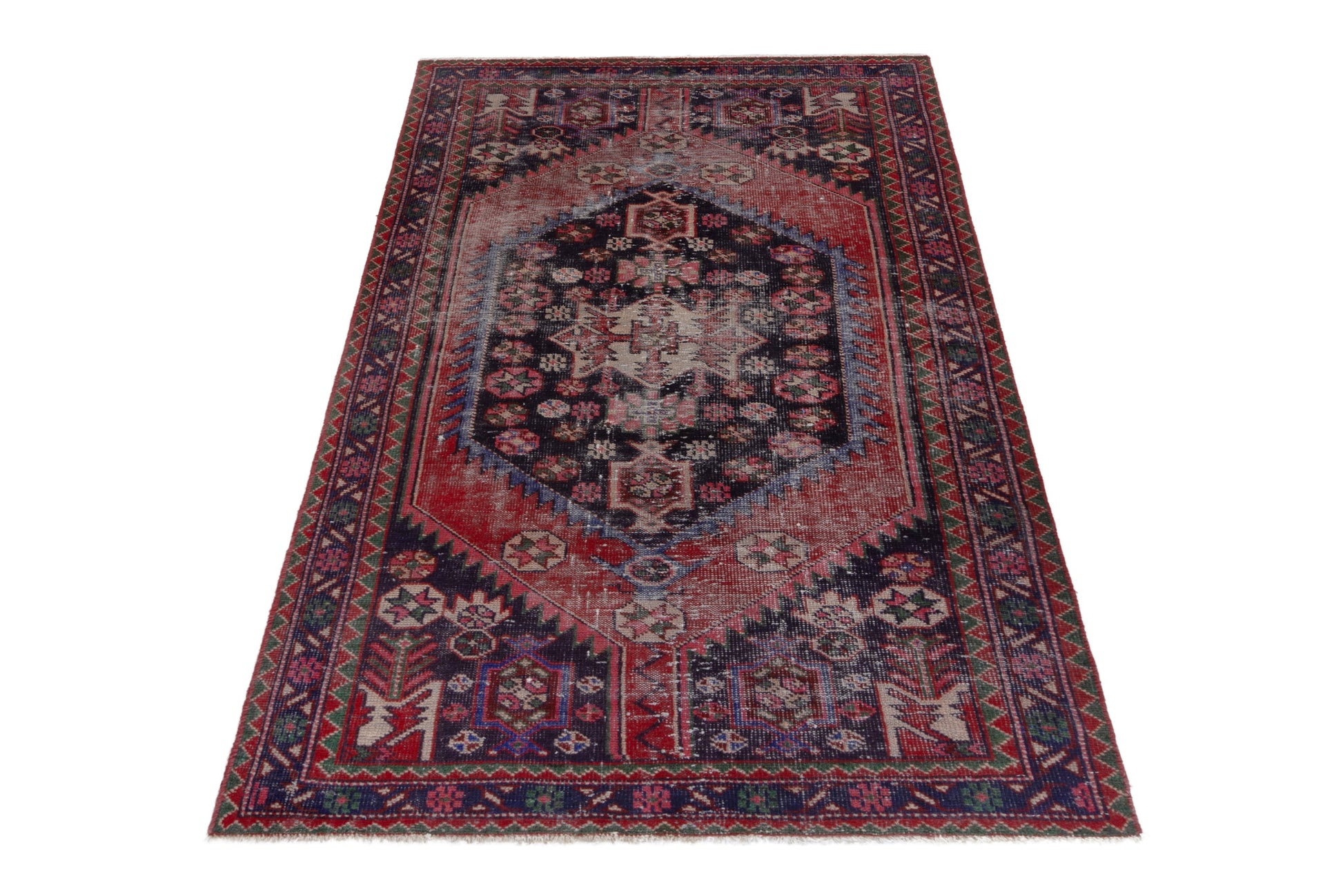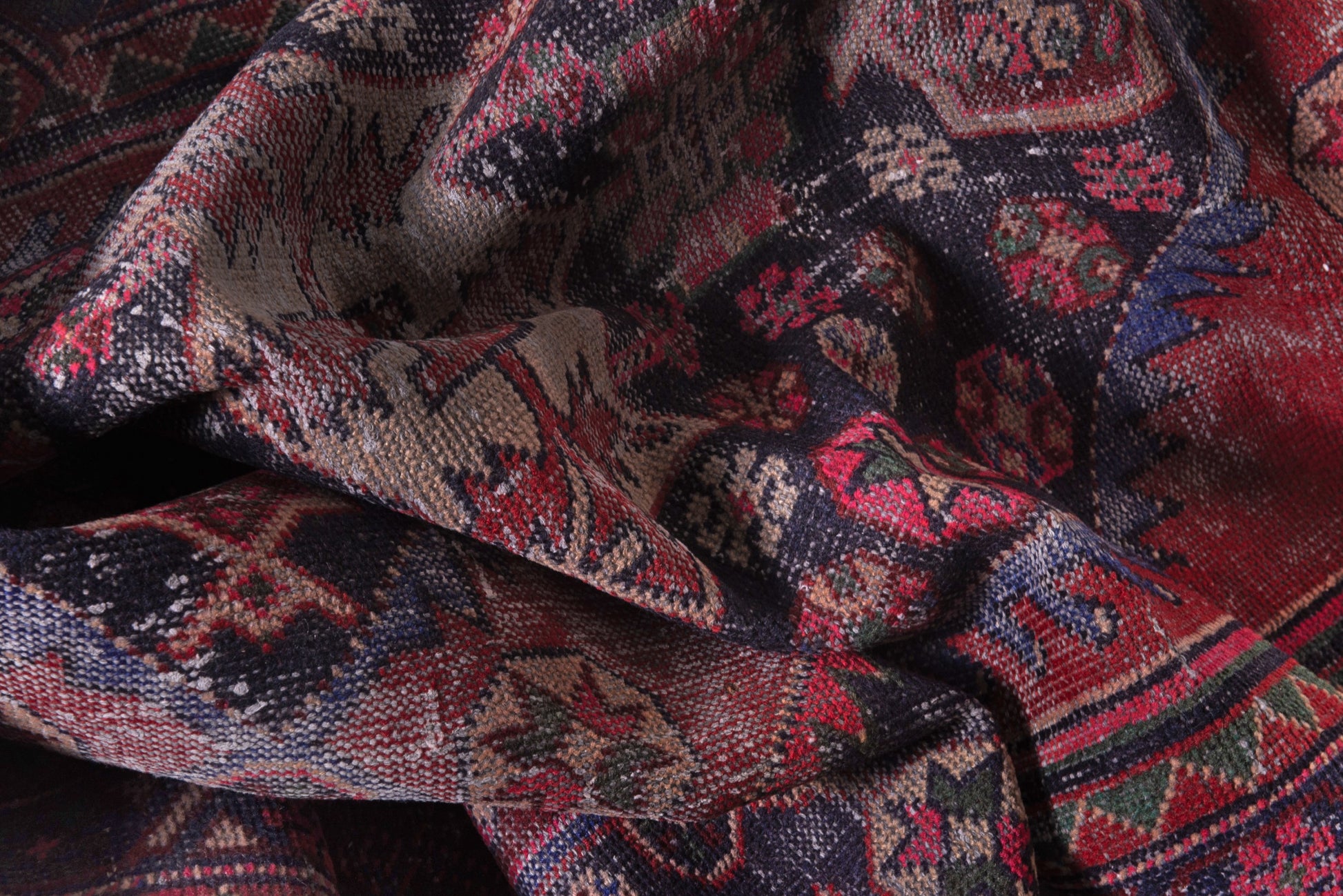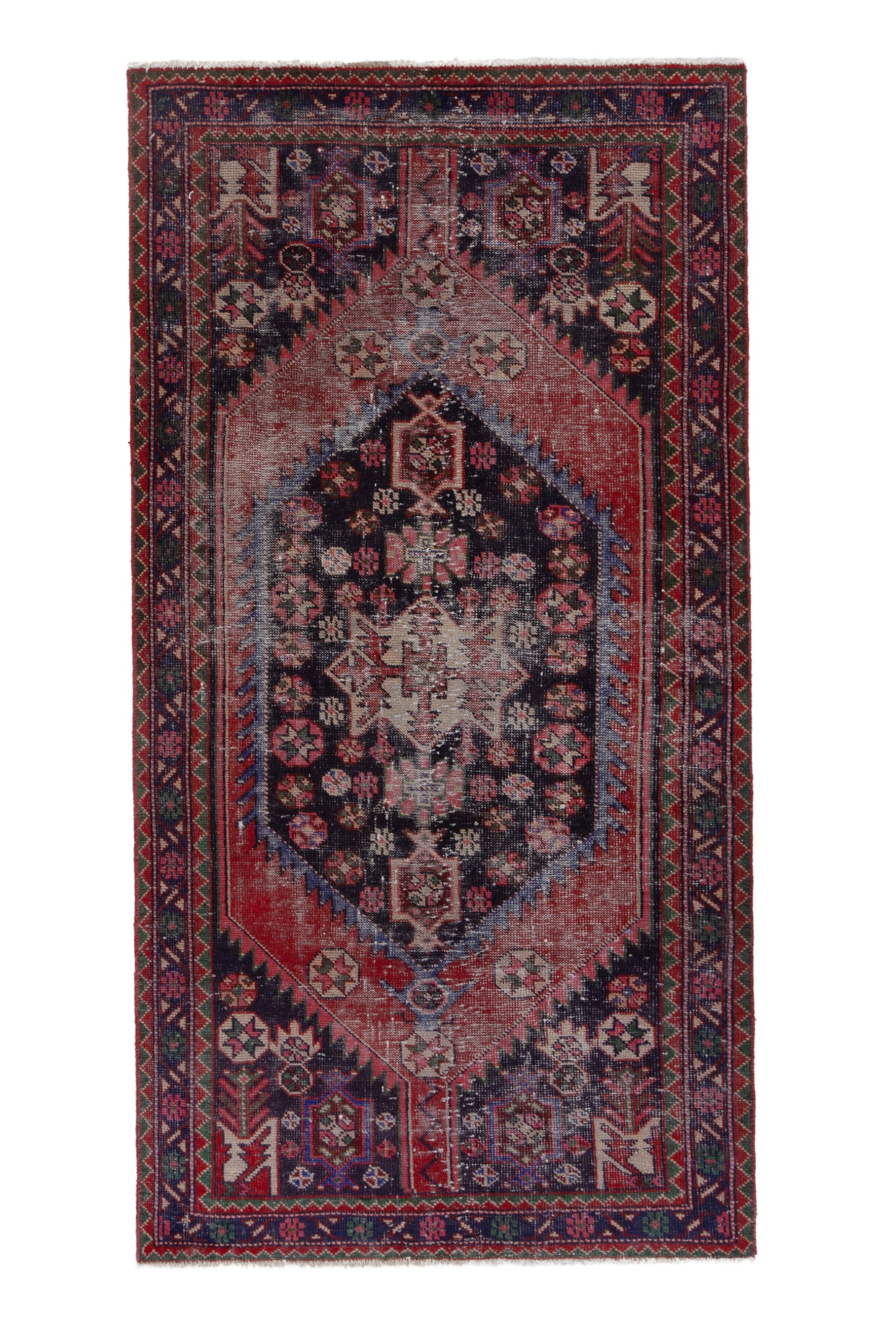 All the rugs we sell are professionally washed and cleaned; age-related wear and natural inconsistencies are inherent in these unique, handcrafted vintage rugs.