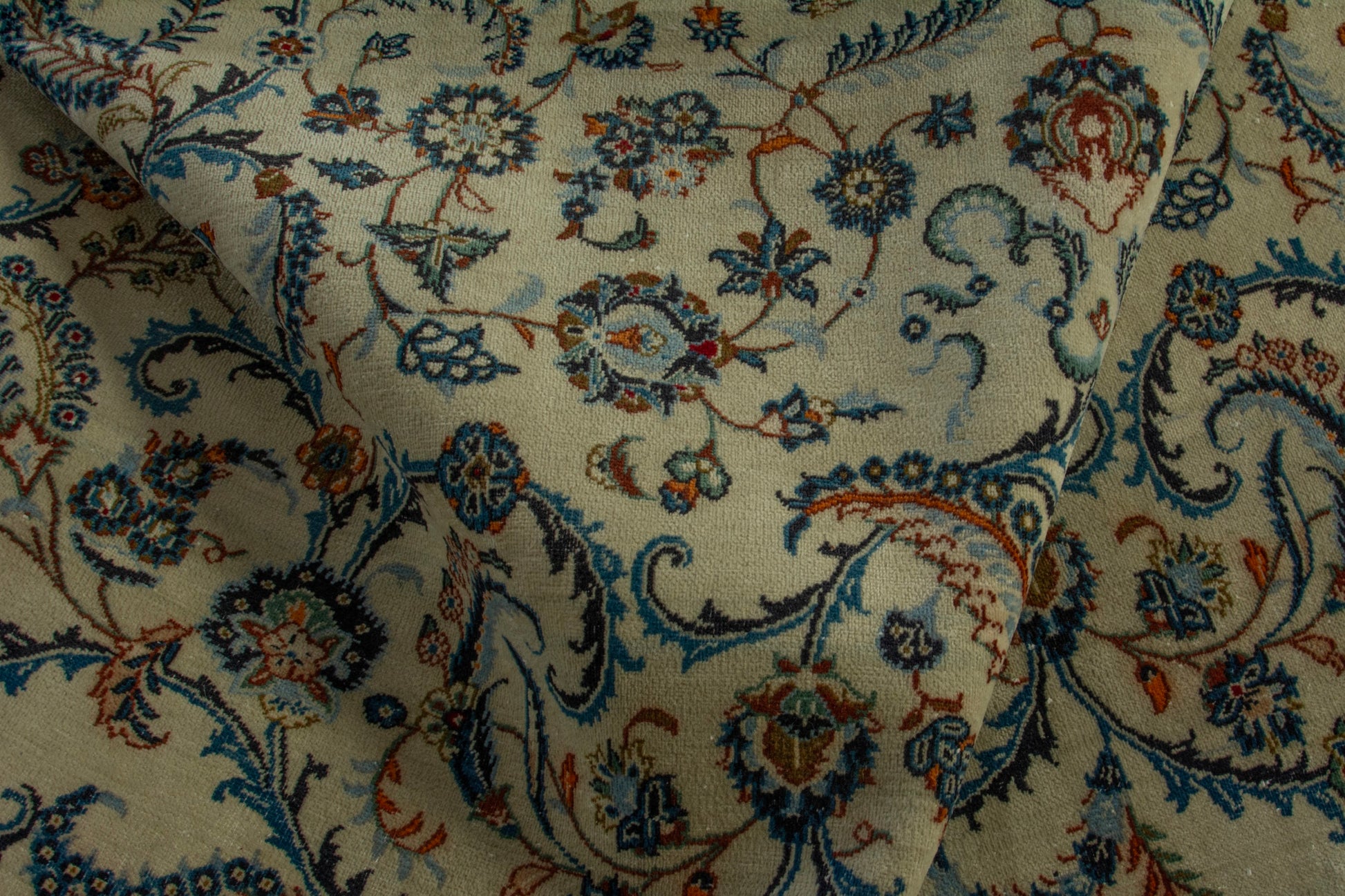 Origin: Woven in the 1970s in Kashan, Iran — a region celebrated for its elegant Persian craftsmanship.