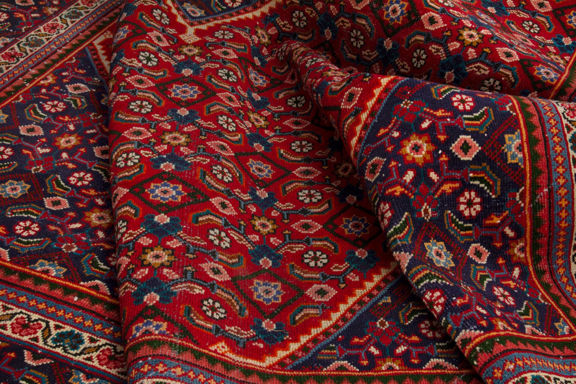 All the rugs we sell are professionally washed and cleaned; age-related wear and natural inconsistencies are inherent in these unique, handcrafted vintage rugs.
