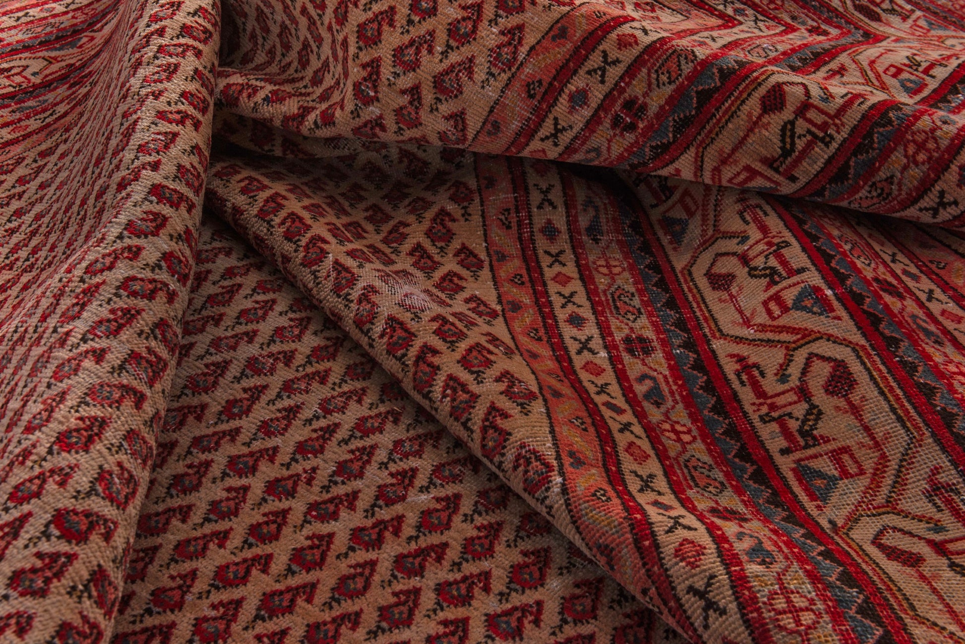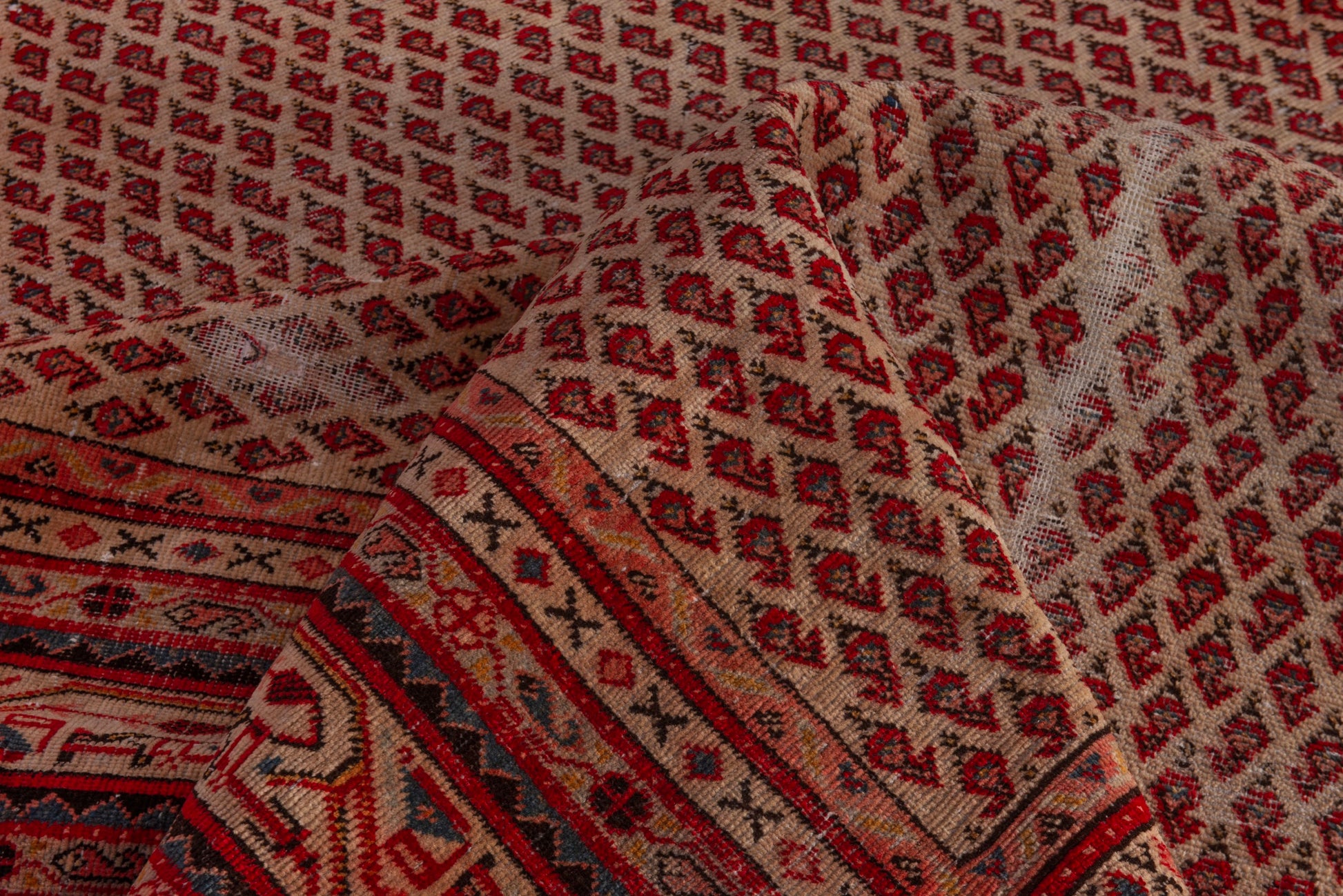 All the rugs we sell are professionally washed and cleaned; age-related wear and natural inconsistencies are inherent in these unique, handcrafted vintage rugs.