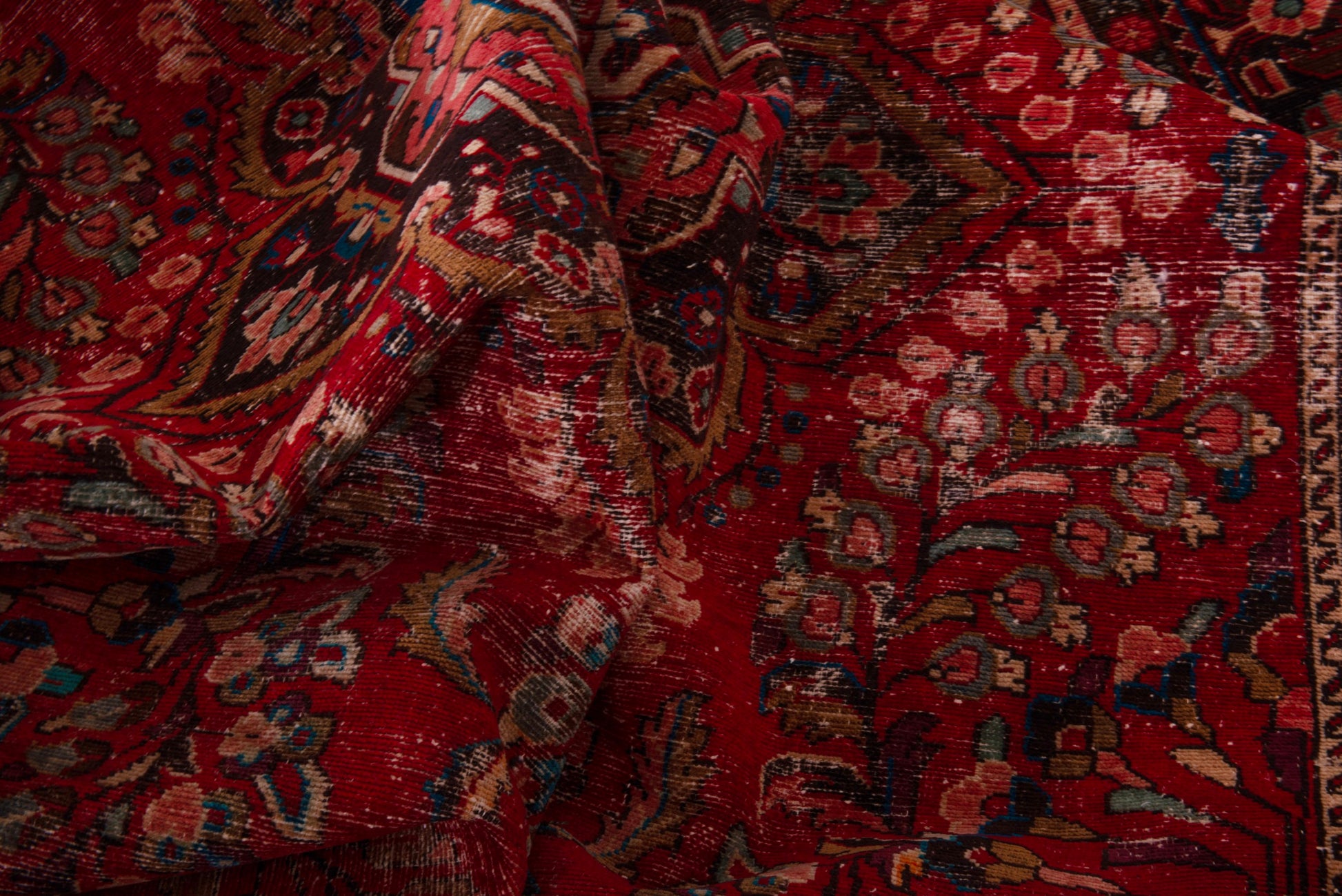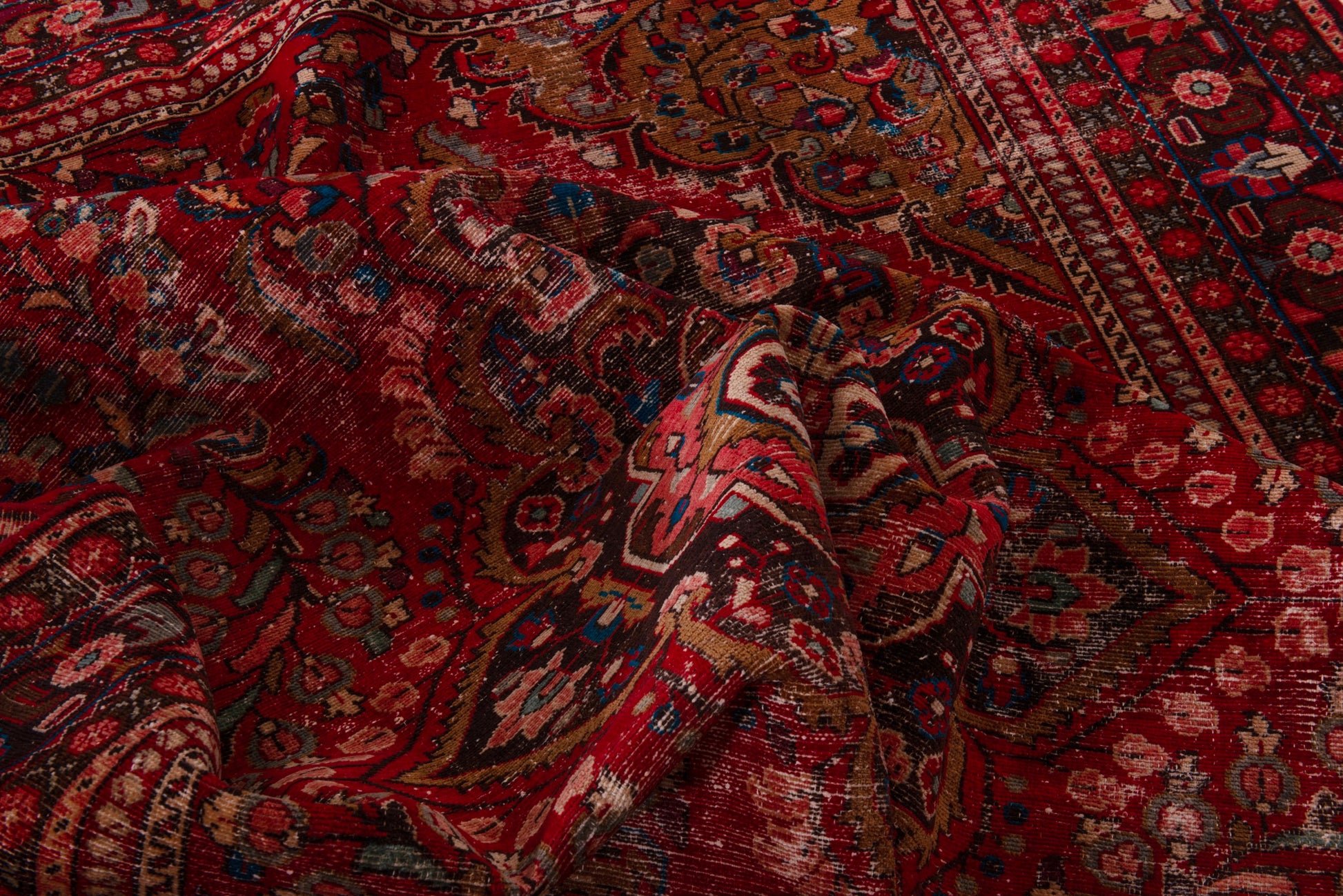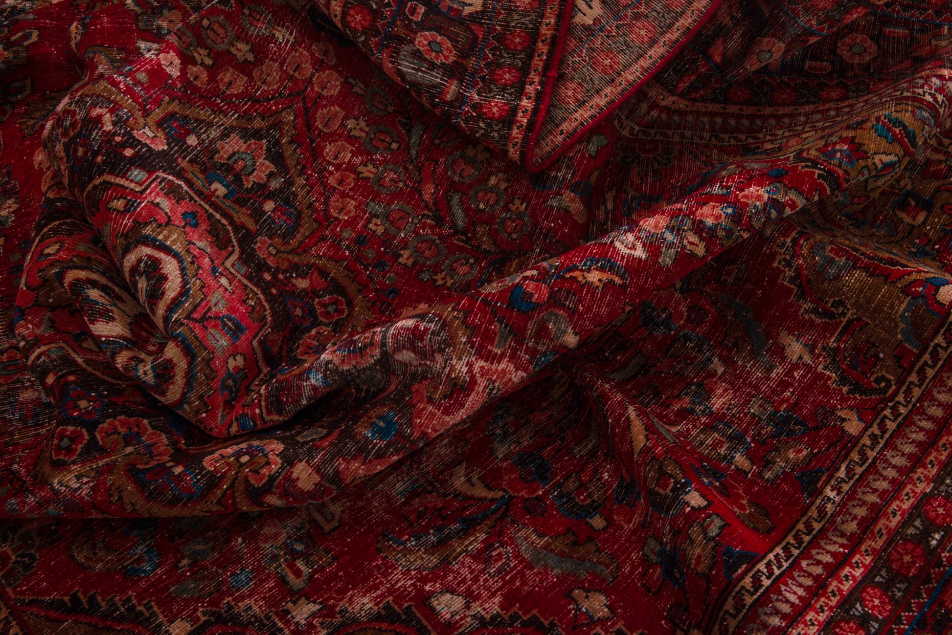 All the rugs we sell are professionally washed and cleaned; age-related wear and natural inconsistencies are inherent in these unique, handcrafted vintage rugs.