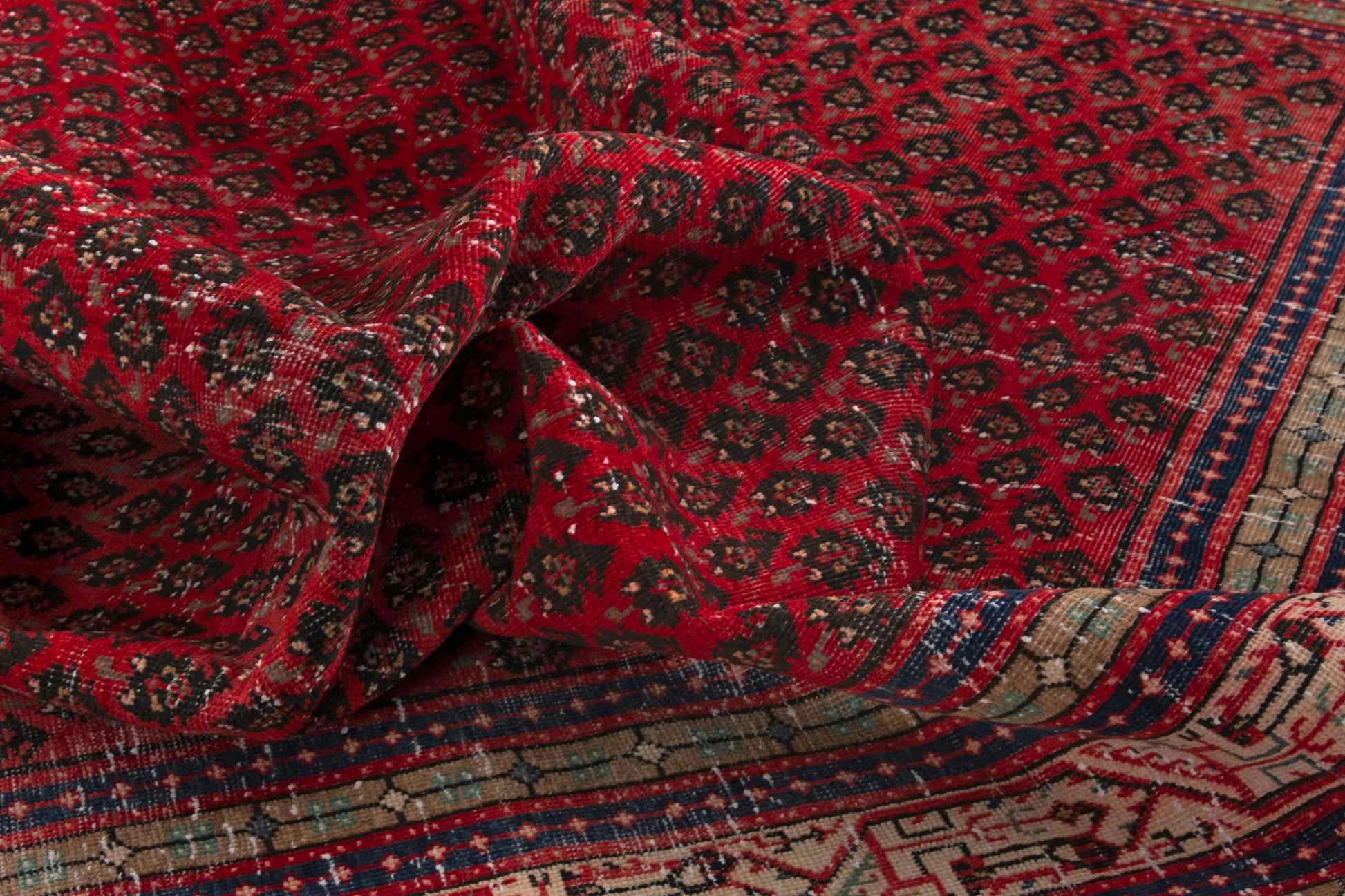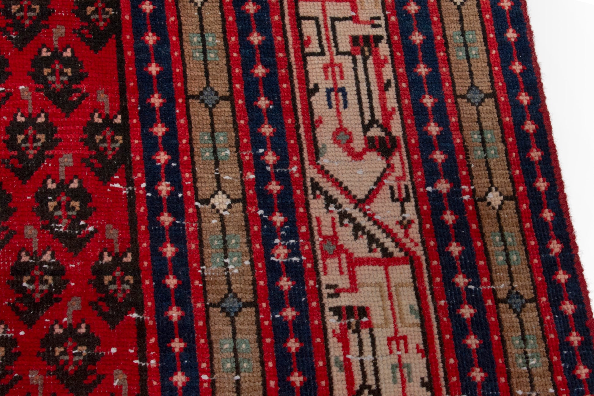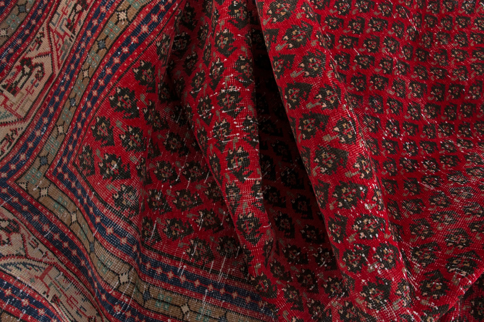 All the rugs we sell are professionally washed and cleaned; age-related wear and natural inconsistencies are inherent in these unique, handcrafted vintage rugs.