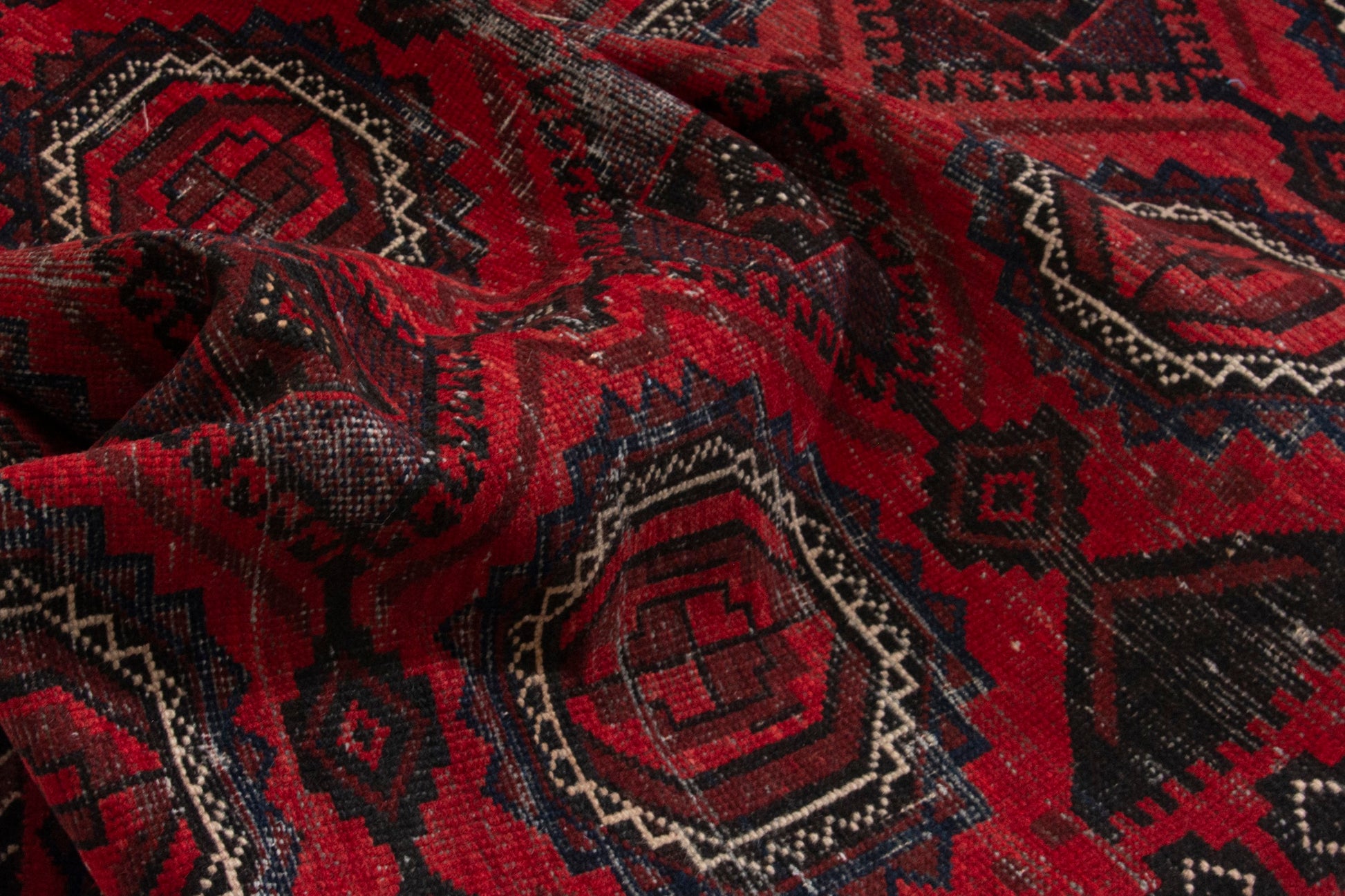 All the rugs we sell are professionally washed and cleaned; age-related wear and natural inconsistencies are inherent in these unique, handcrafted vintage rugs.