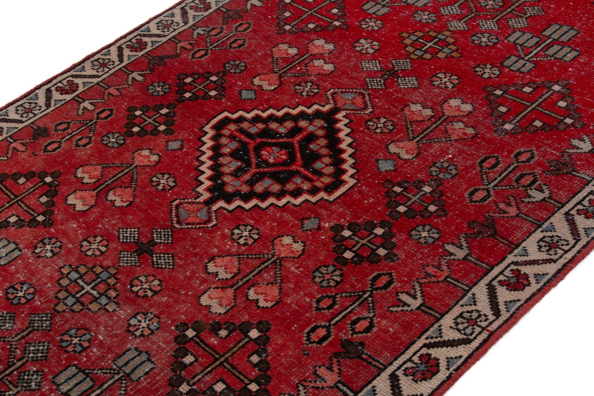 All the rugs we sell are professionally washed and cleaned; age-related wear and natural inconsistencies are inherent in these unique, handcrafted vintage rugs.