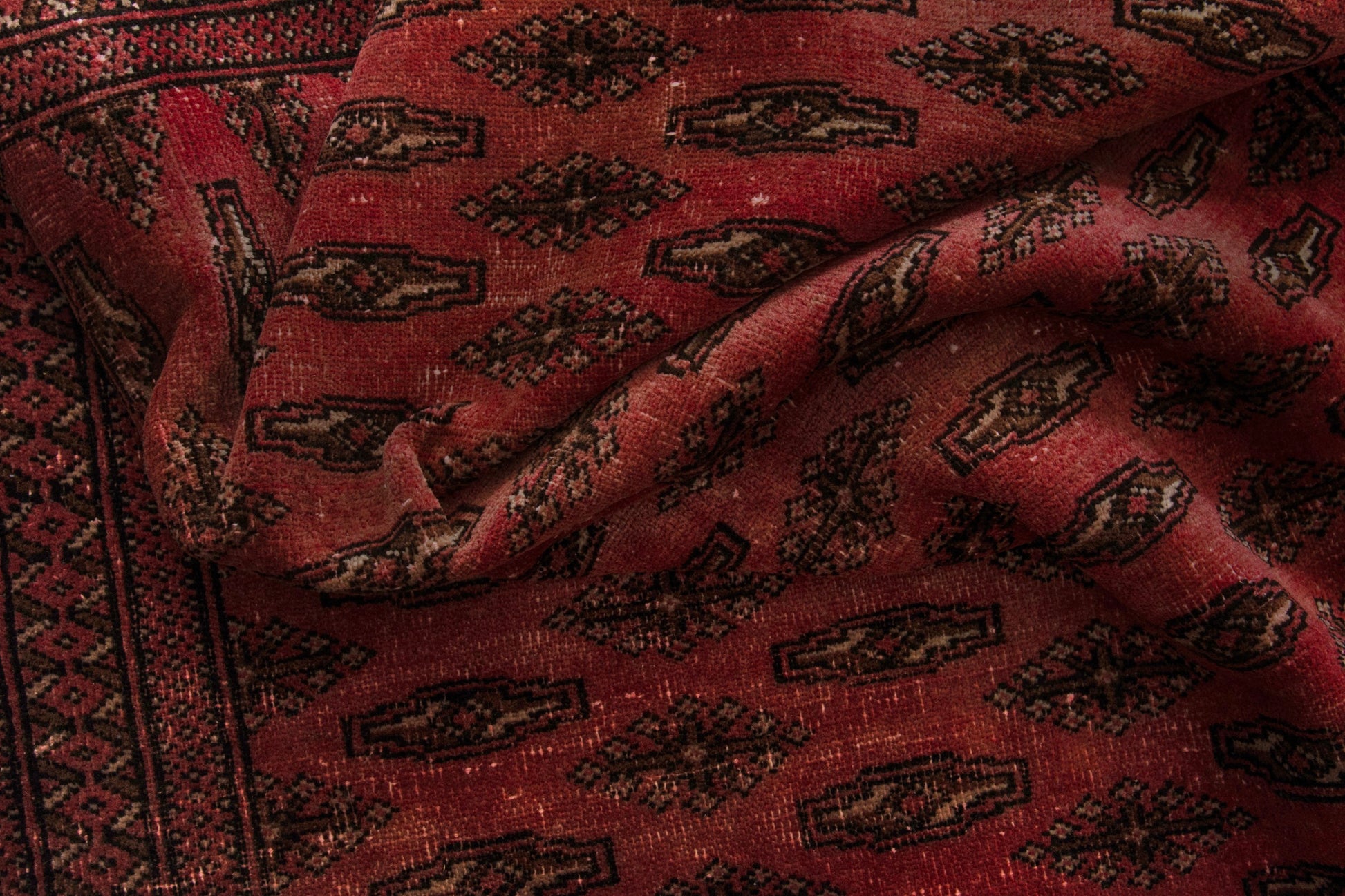 All the rugs we sell are professionally washed and cleaned; age-related wear and natural inconsistencies are inherent in these unique, handcrafted vintage rugs.