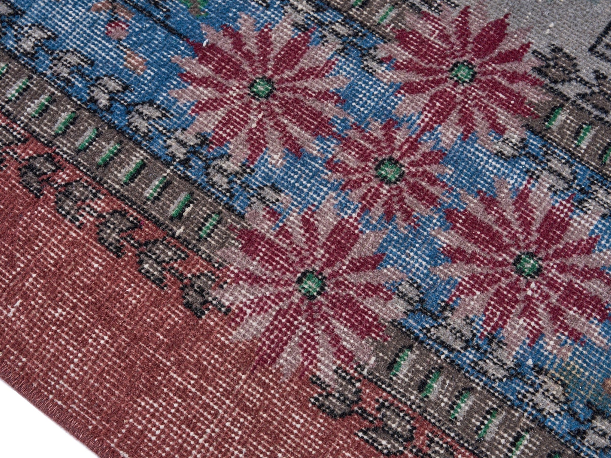 All the rugs we sell are professionally washed and cleaned; age-related wear and natural inconsistencies are inherent in these unique, handcrafted vintage rugs.