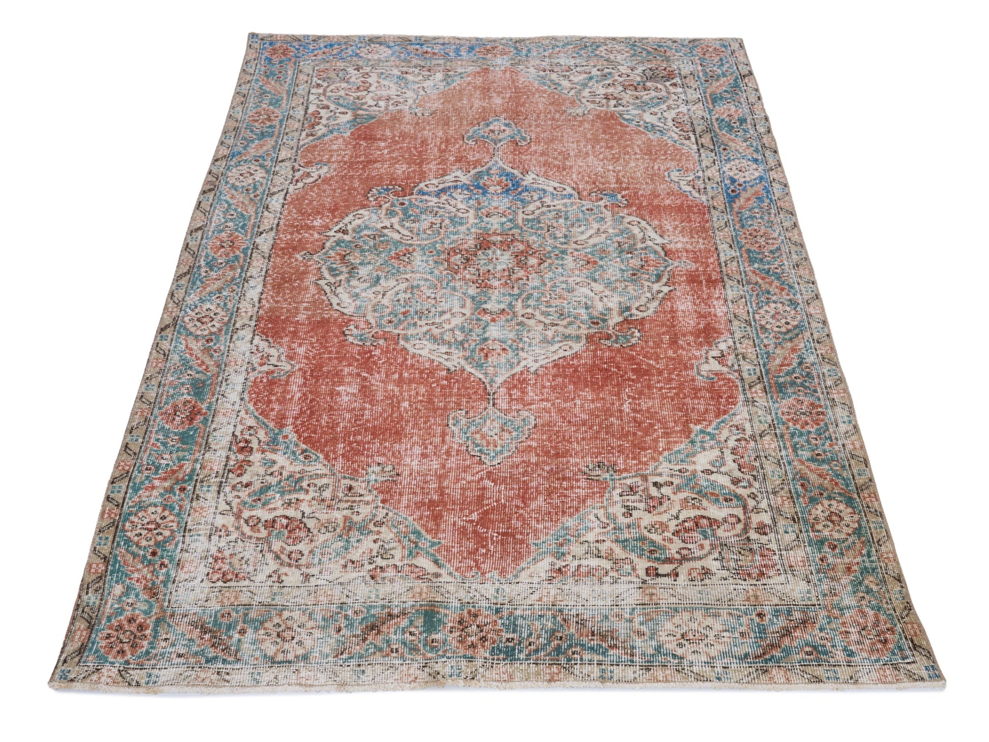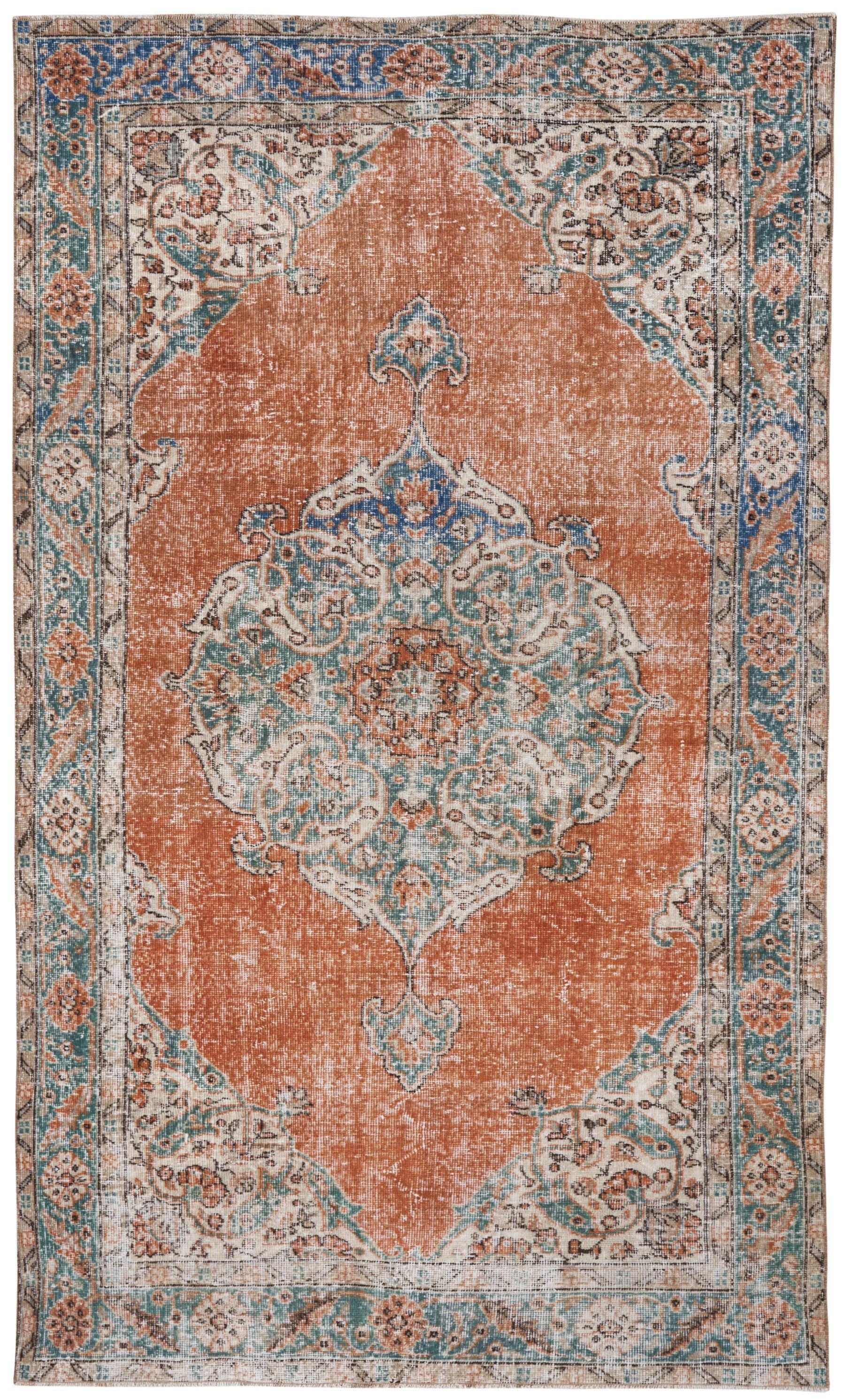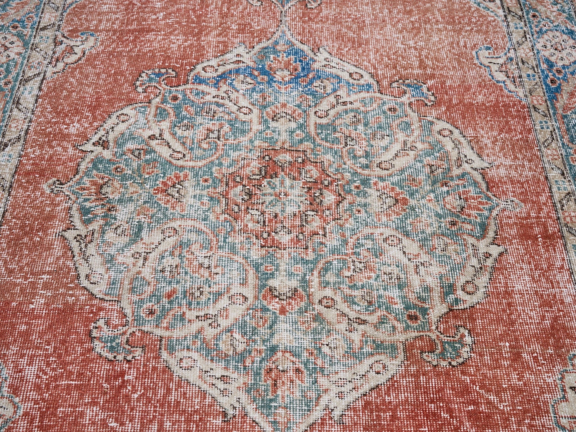 All the rugs we sell are professionally washed and cleaned; age-related wear and natural inconsistencies are inherent in these unique, handcrafted vintage rugs.