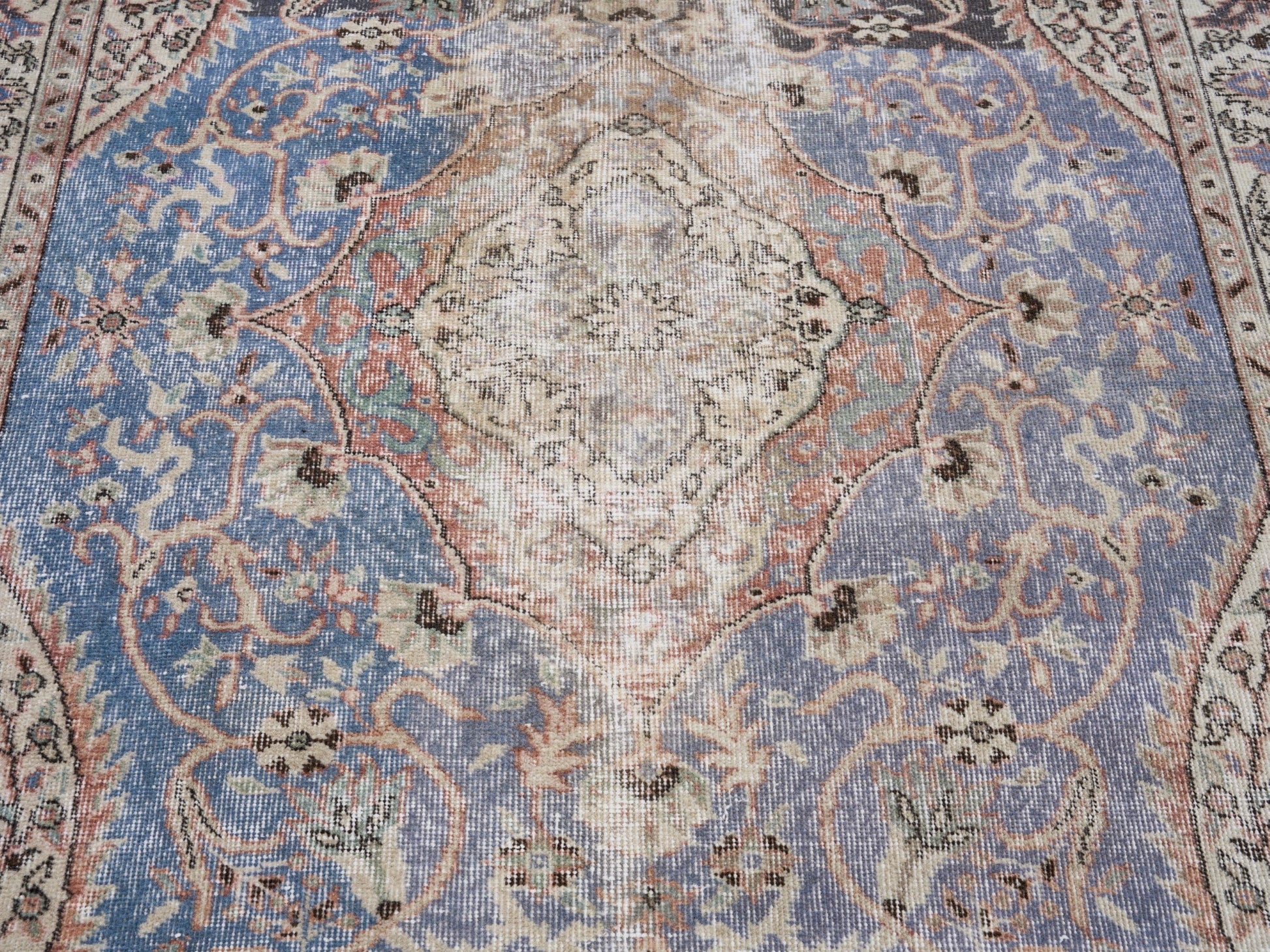 All the rugs we sell are professionally washed and cleaned; age-related wear and natural inconsistencies are inherent in these unique, handcrafted vintage rugs.