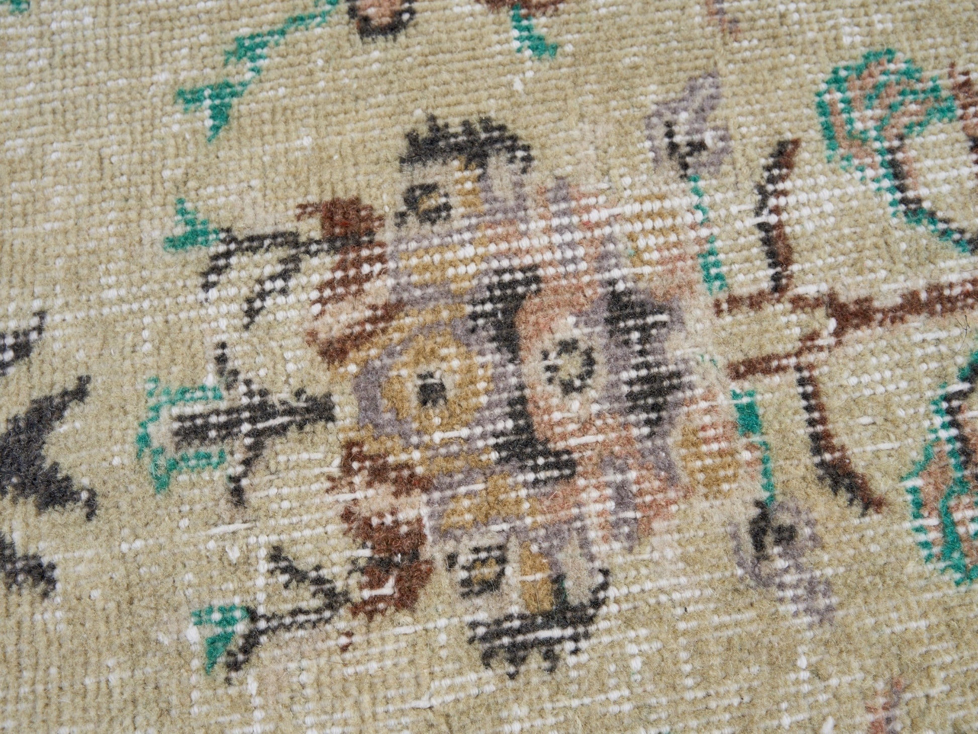 All the rugs we sell are professionally washed and cleaned; age-related wear and natural inconsistencies are inherent in these unique, handcrafted vintage rugs.