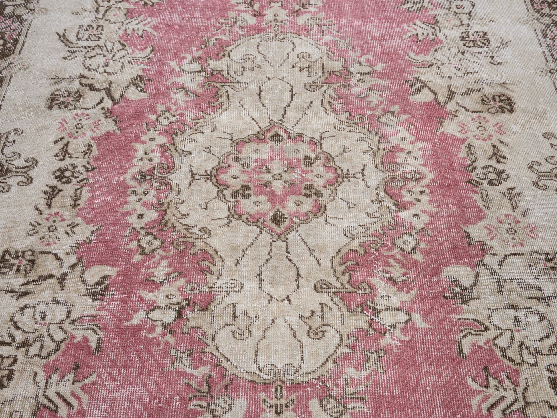 All the rugs we sell are professionally washed and cleaned; age-related wear and natural inconsistencies are inherent in these unique, handcrafted vintage rugs.