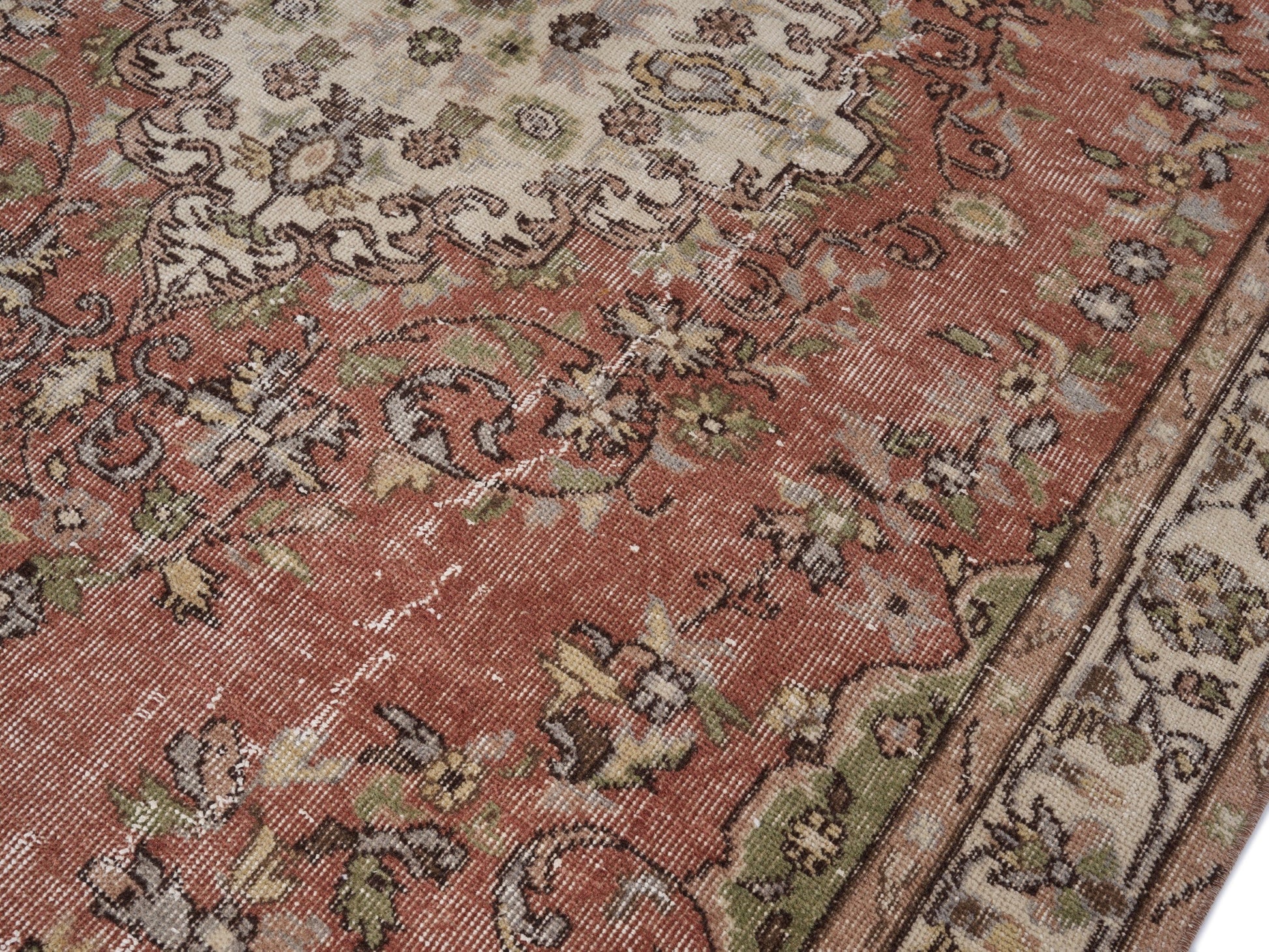 All the rugs we sell are professionally washed and cleaned; age-related wear and natural inconsistencies are inherent in these unique, handcrafted vintage rugs.