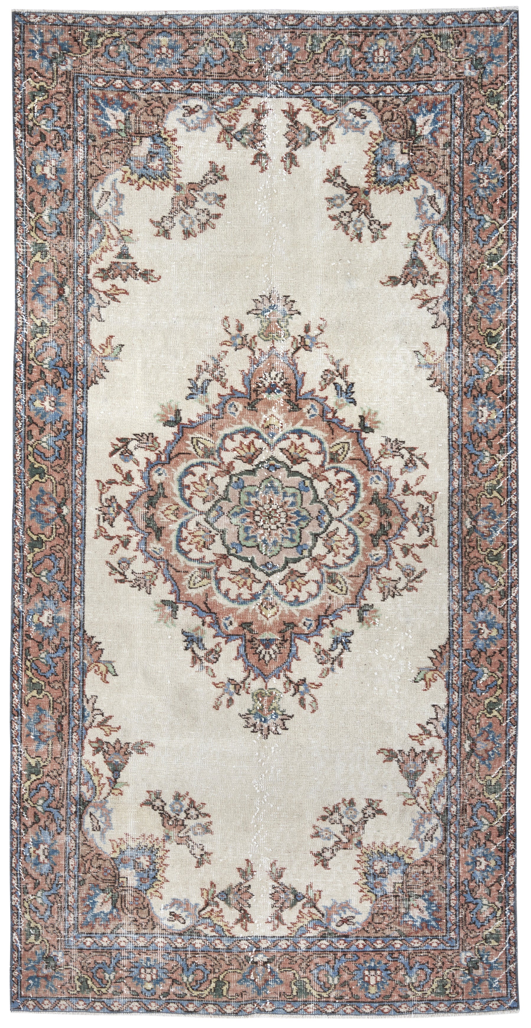 All the rugs we sell are professionally washed and cleaned; age-related wear and natural inconsistencies are inherent in these unique, handcrafted vintage rugs.