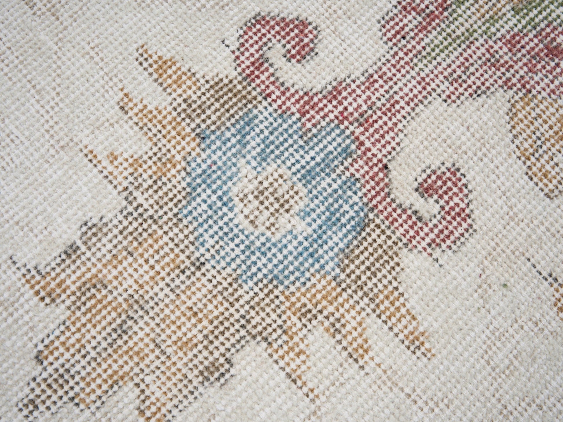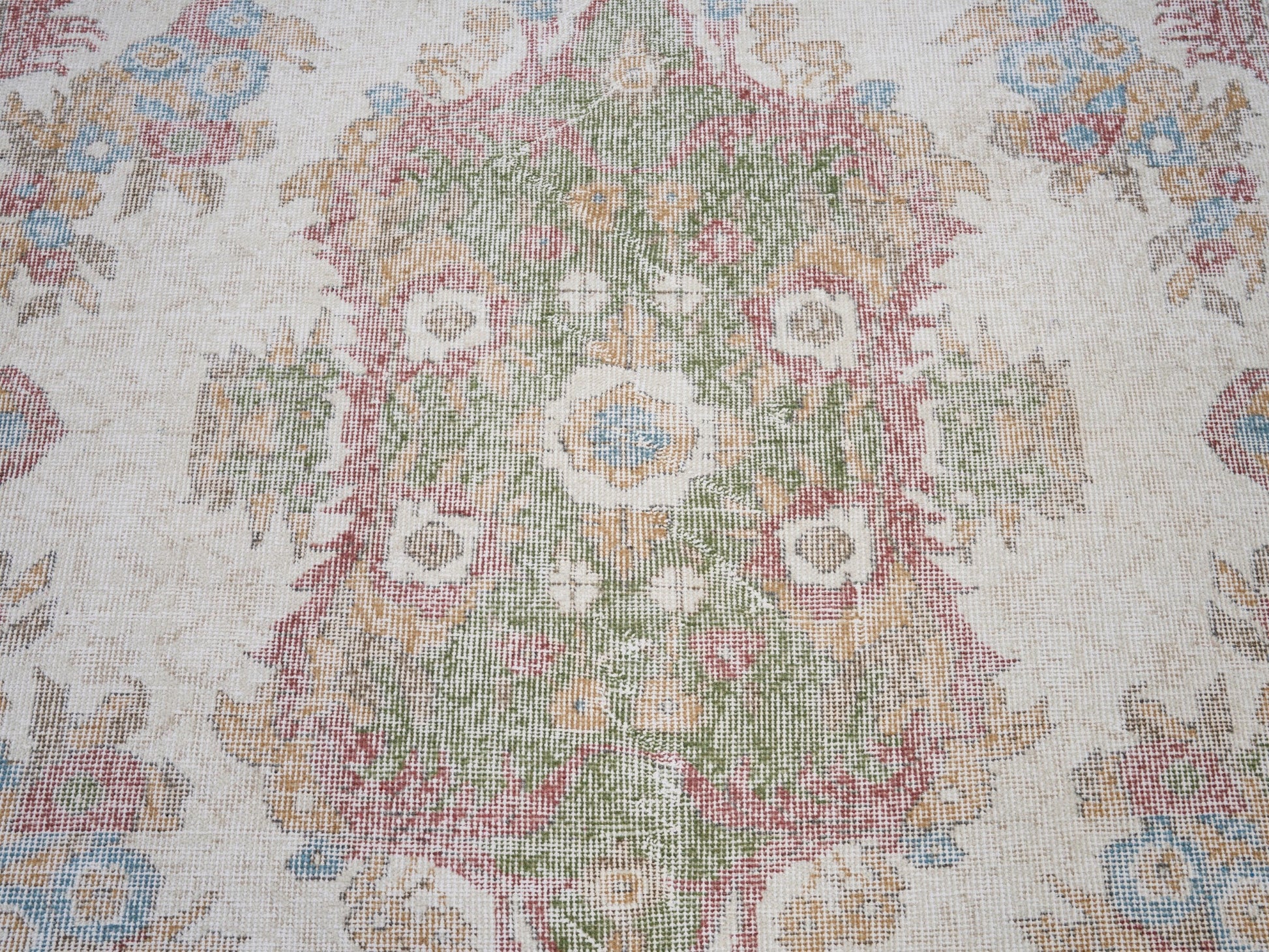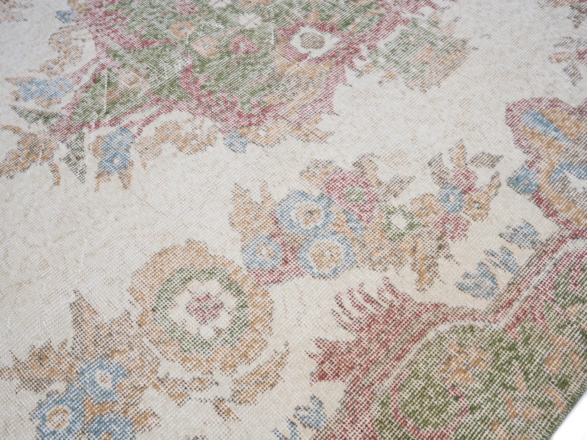 All the rugs we sell are professionally washed and cleaned; age-related wear and natural inconsistencies are inherent in these unique, handcrafted vintage rugs.